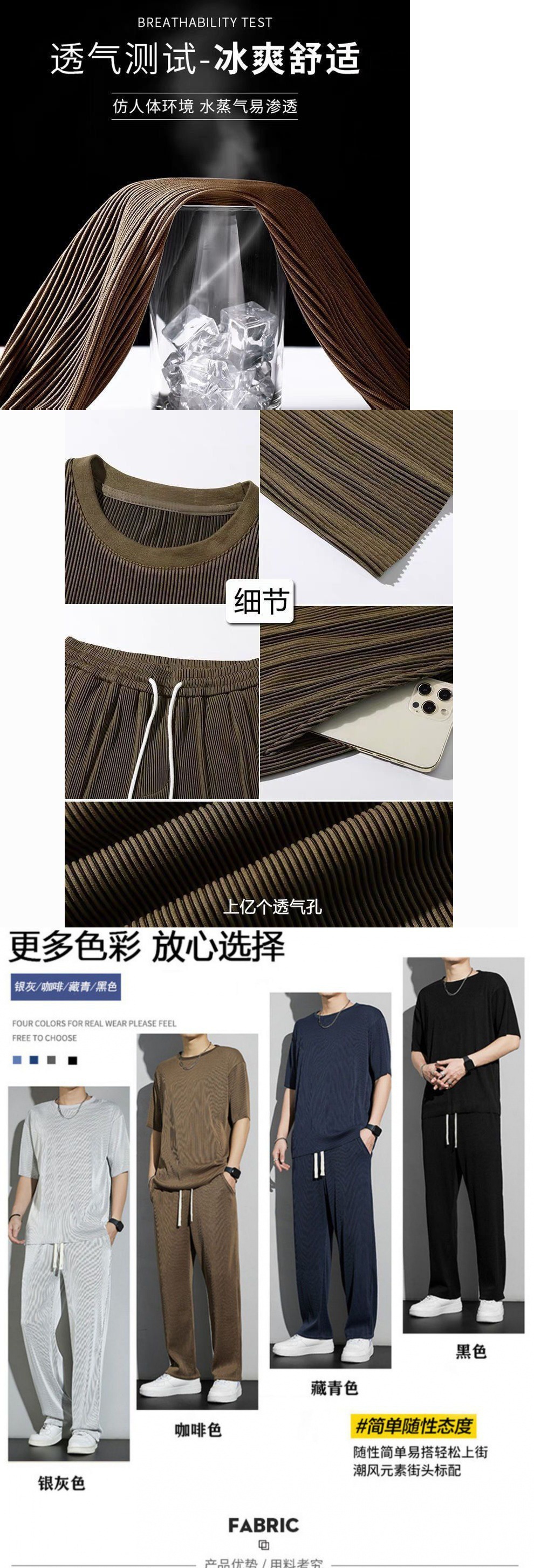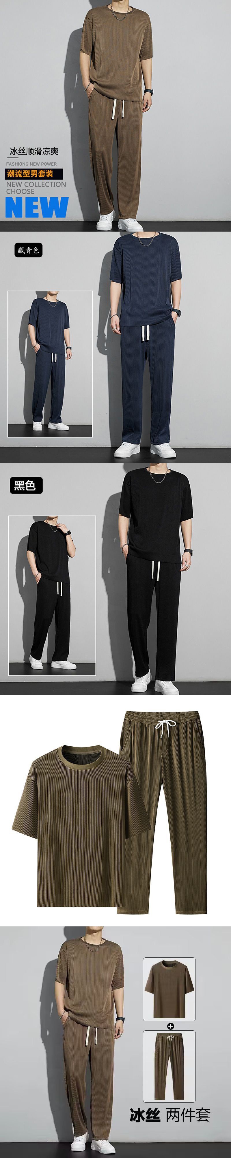 소년 여름 캐주얼 패션 스트레이트 스포티 느슨한 스트레이트 바지 솔리드 컬러 탑 짧은 소매 얇은 올 매치스토어 가기