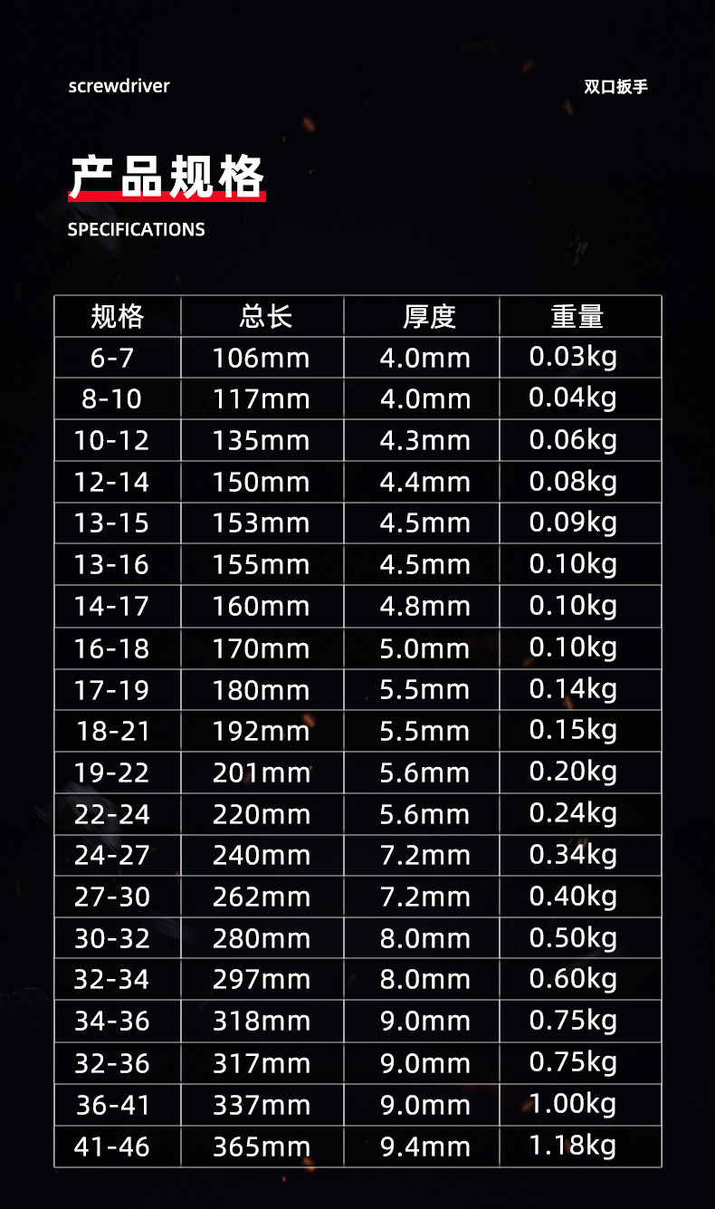 오픈 엔드 렌치 하드웨어 도구 포크 데드 입 대형 더블 엔드 렌치 6-7-8-10-12-13-14-17-19-21