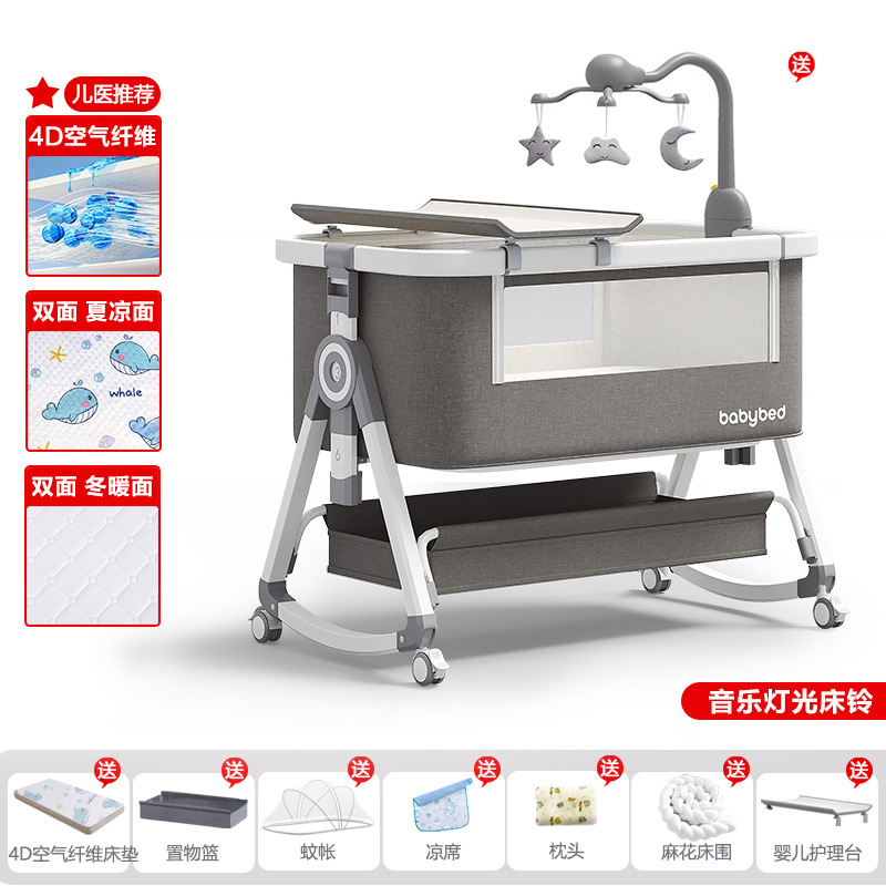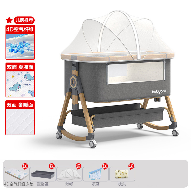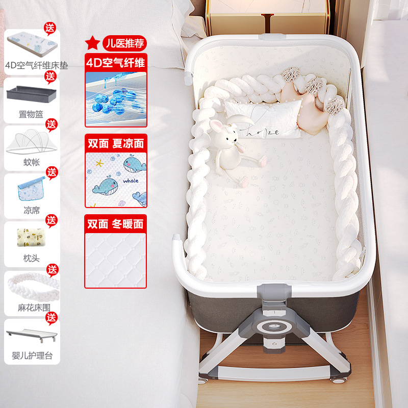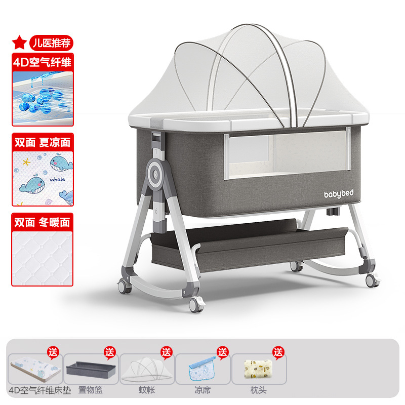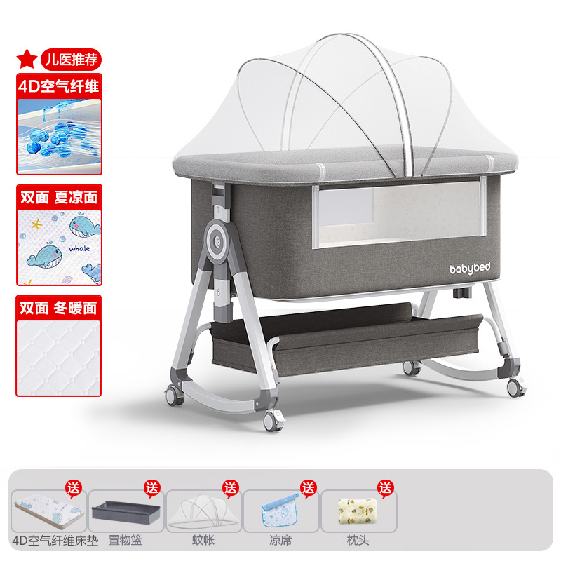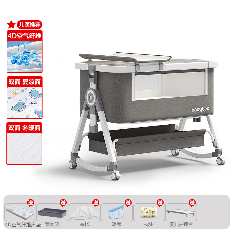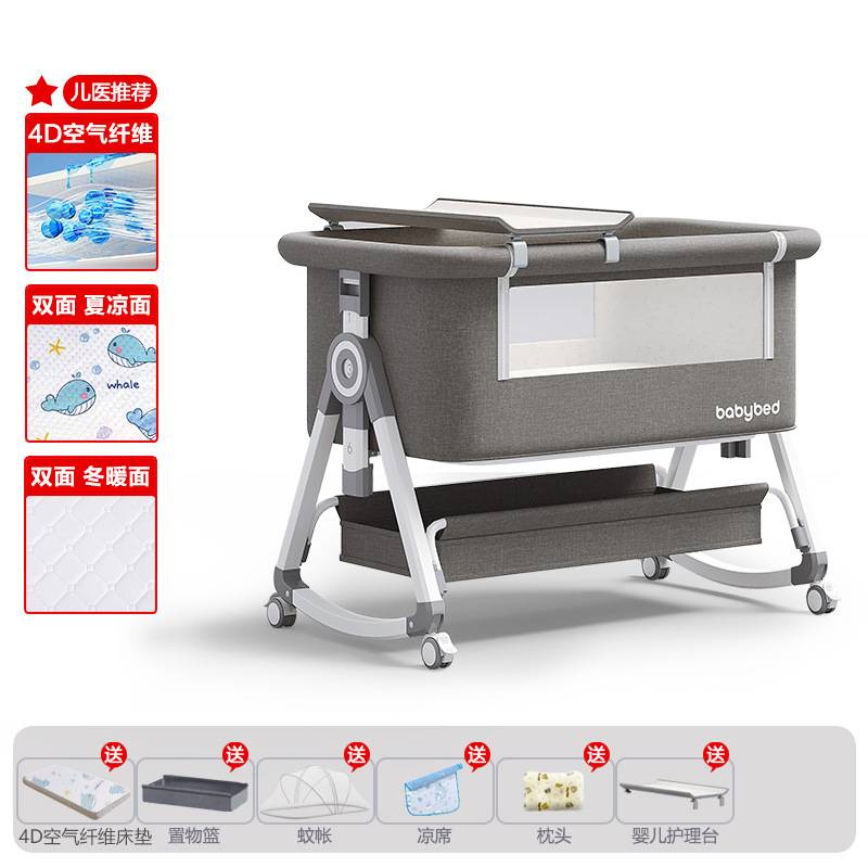 • 고탄소강-무유윤그레이丨전용모델 [사계절 양면 4D 에어파이버 매트리스] 수납바구니 + 모기장 + 매트 + 베개 + 기저귀교환대 (CS-6)