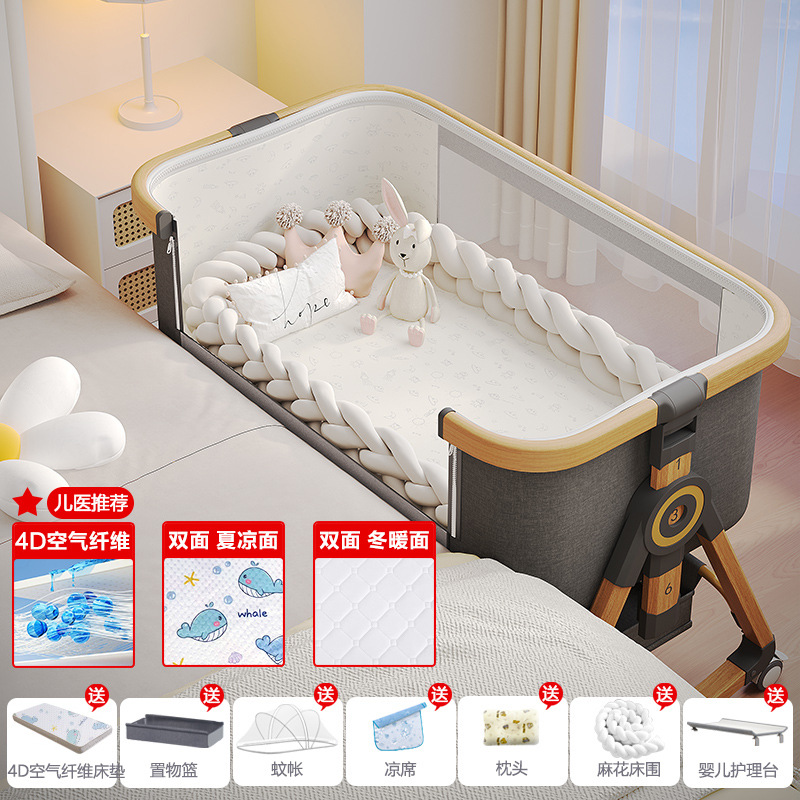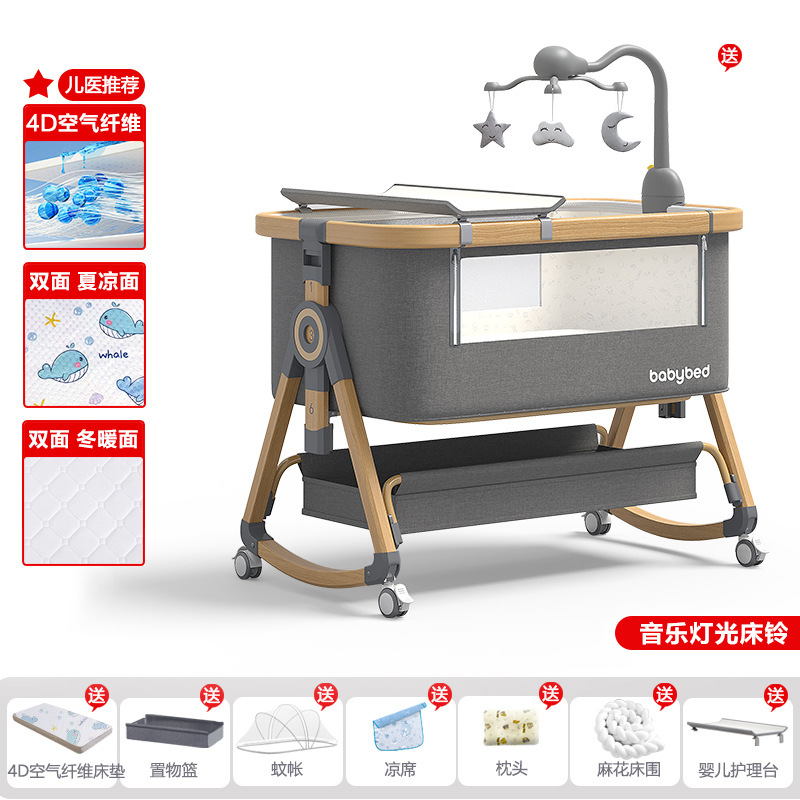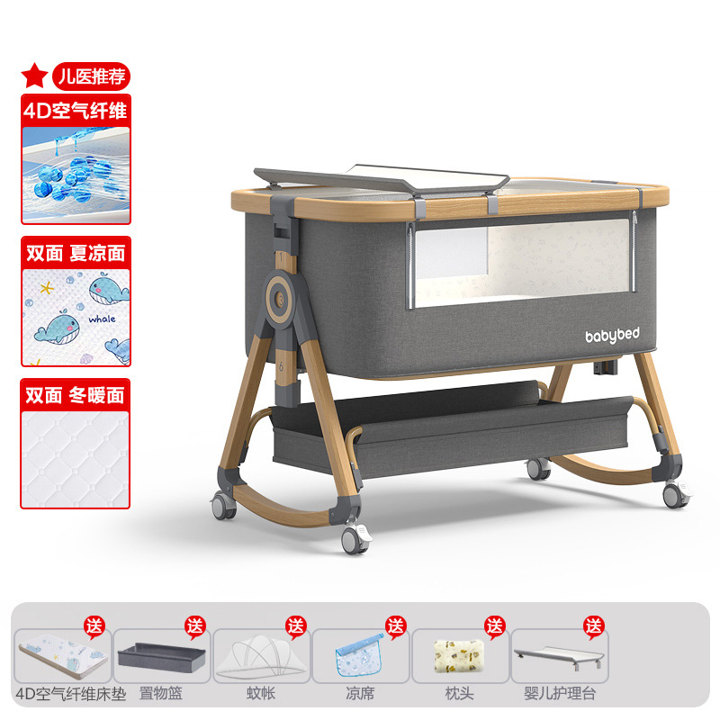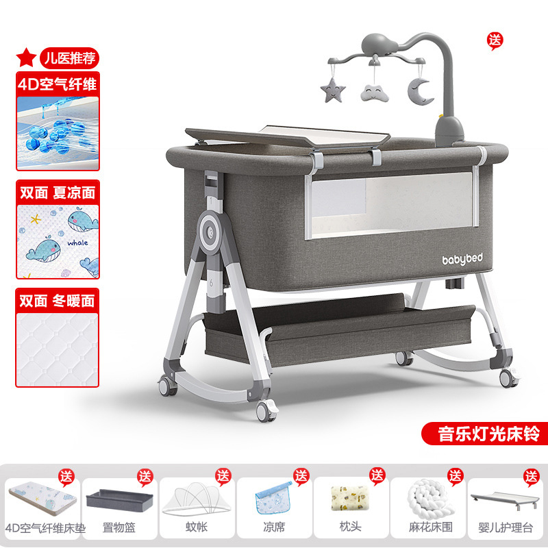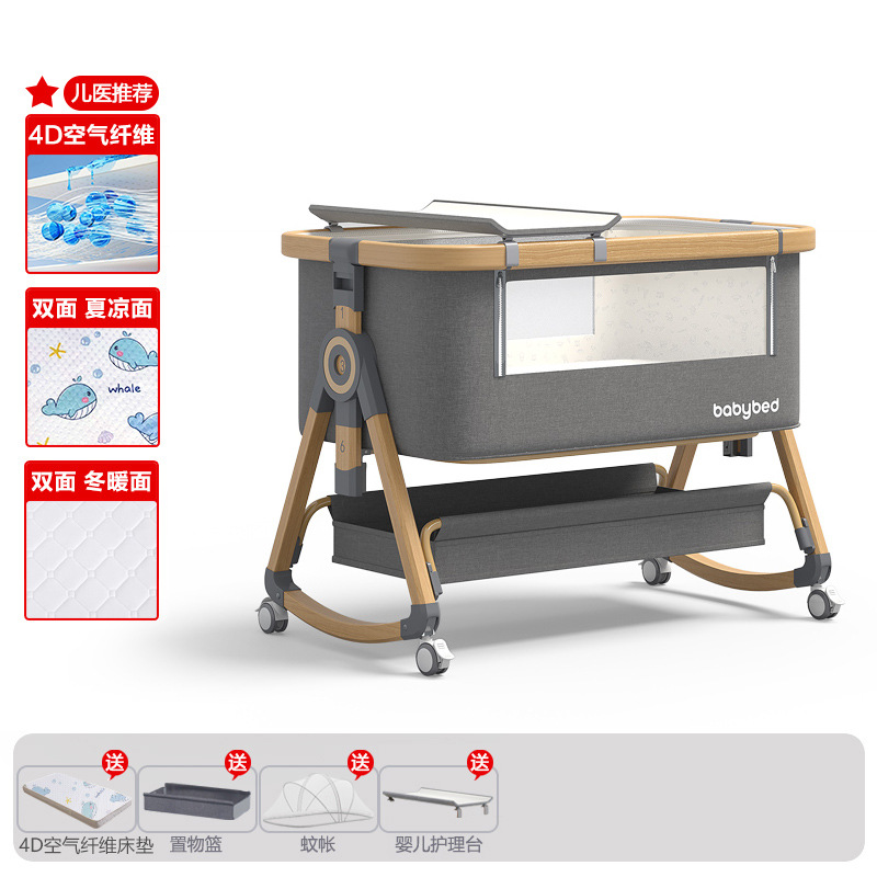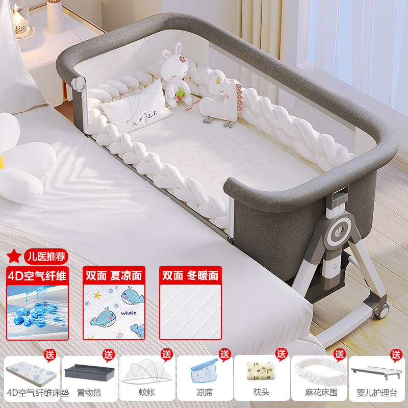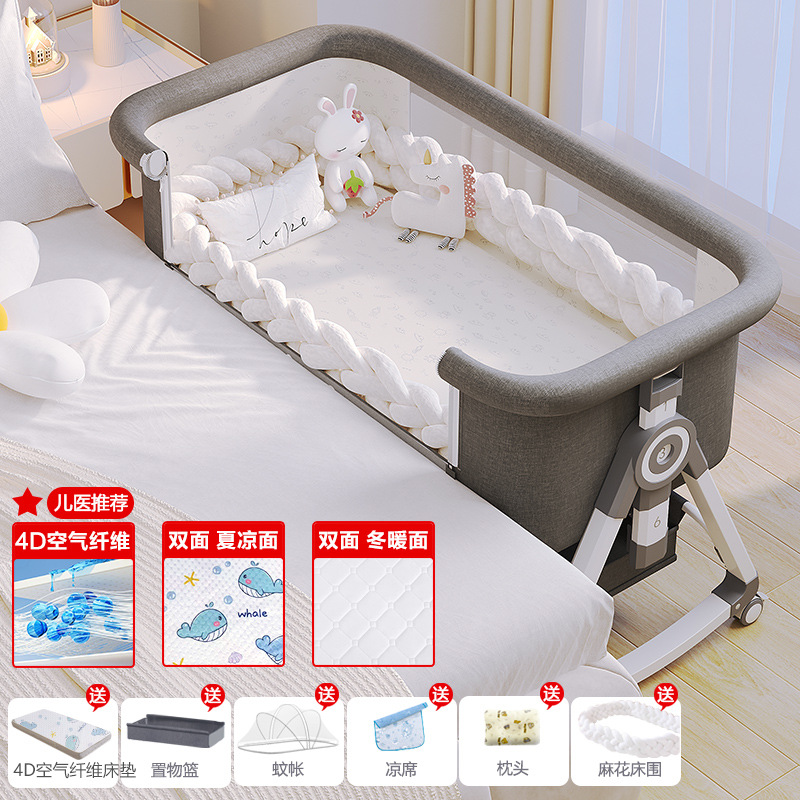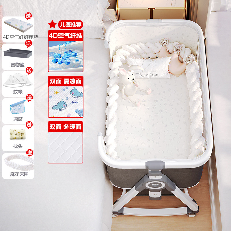 • 고탄소강-무유윤그레이丨전용모델 [사계절 양면 4D 에어파이버 매트리스] 수납바구니 + 모기장 + 매트 + 베개 + 기저귀교환대 (CS-6)