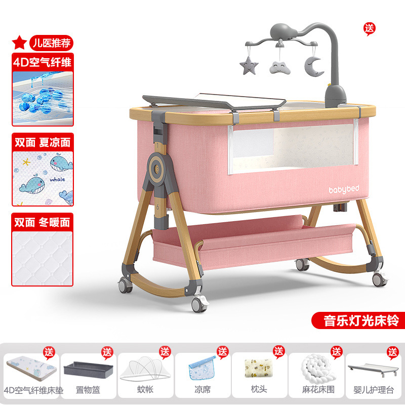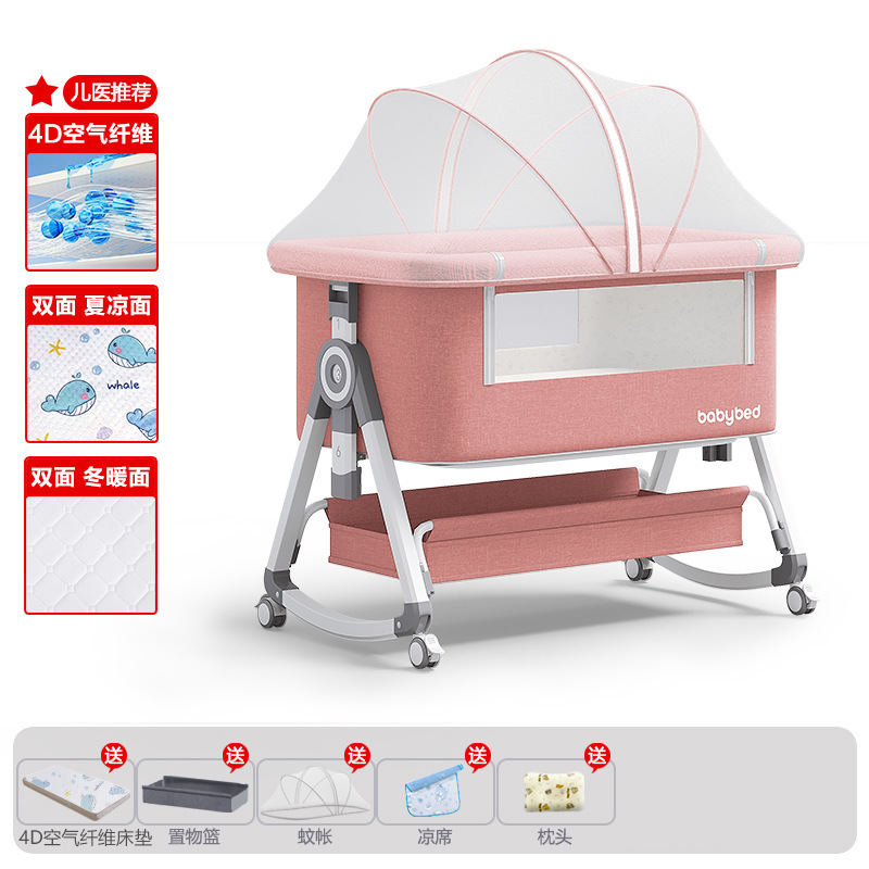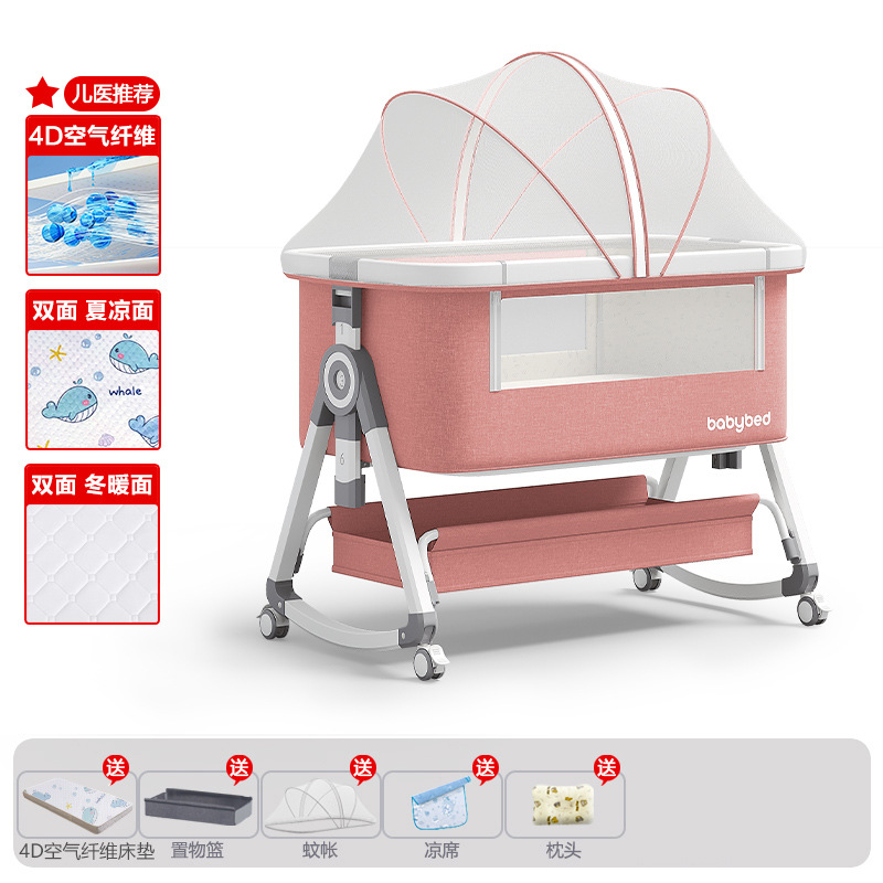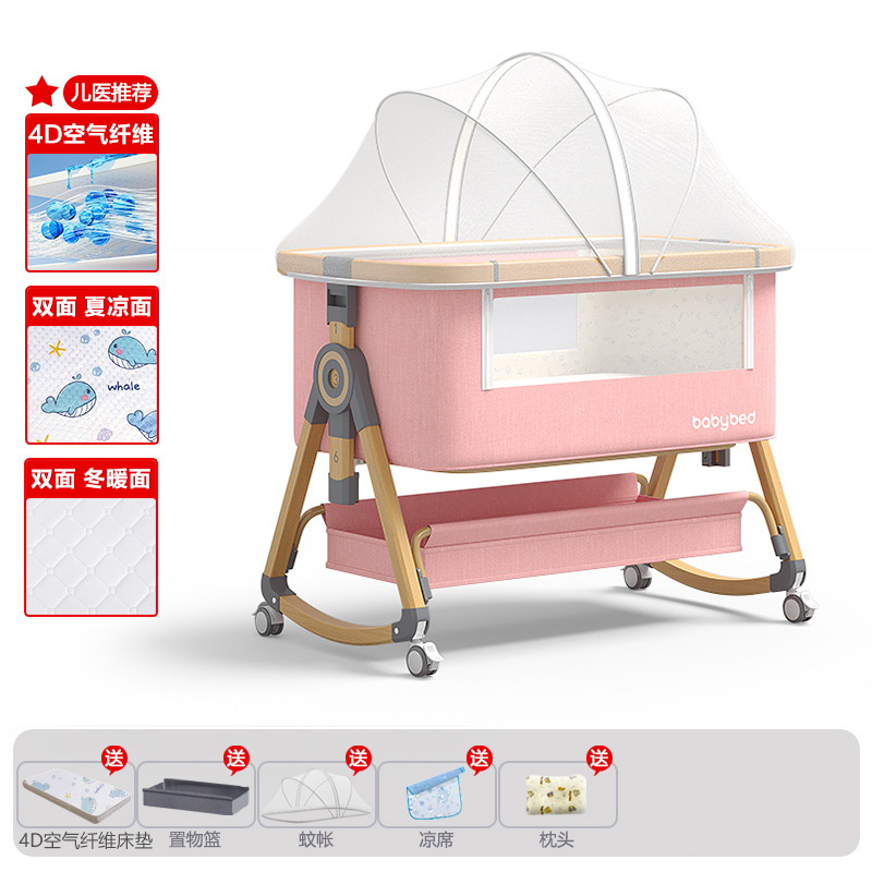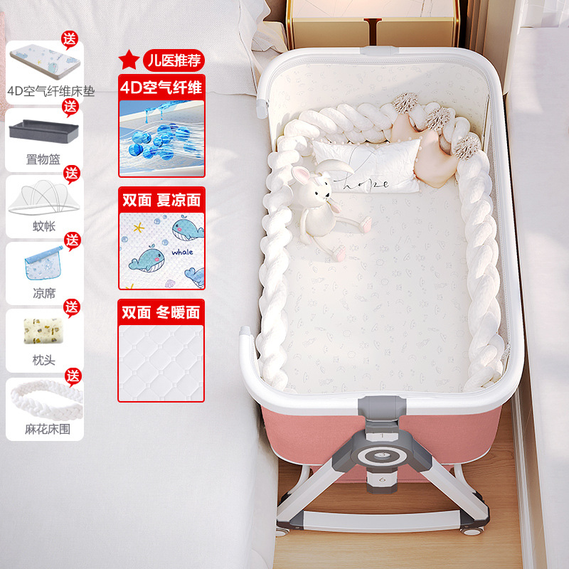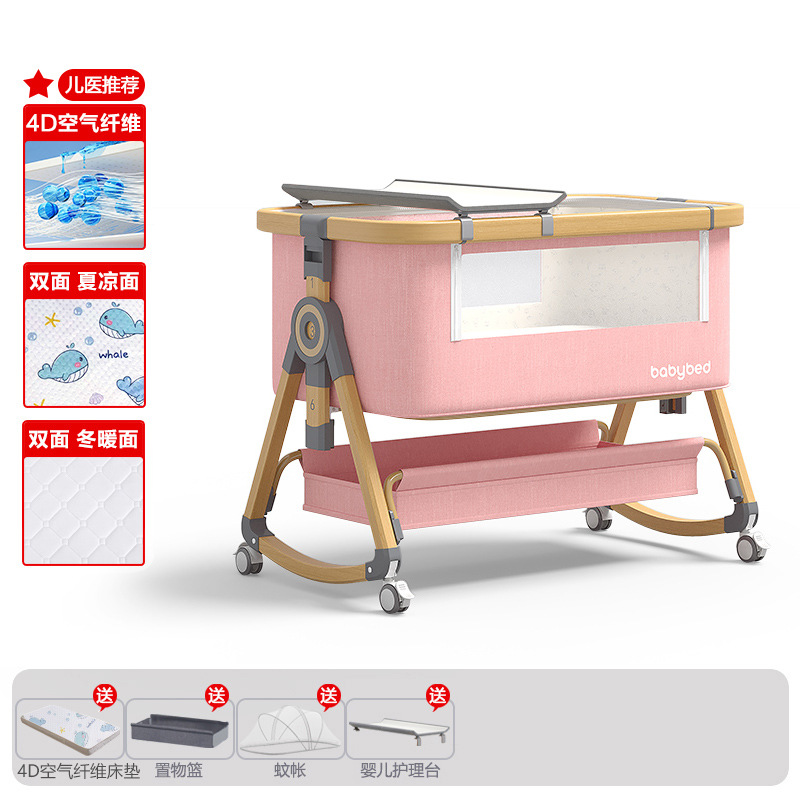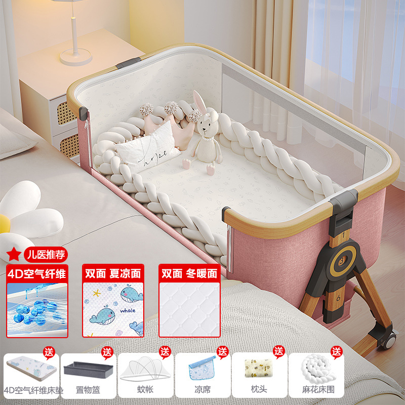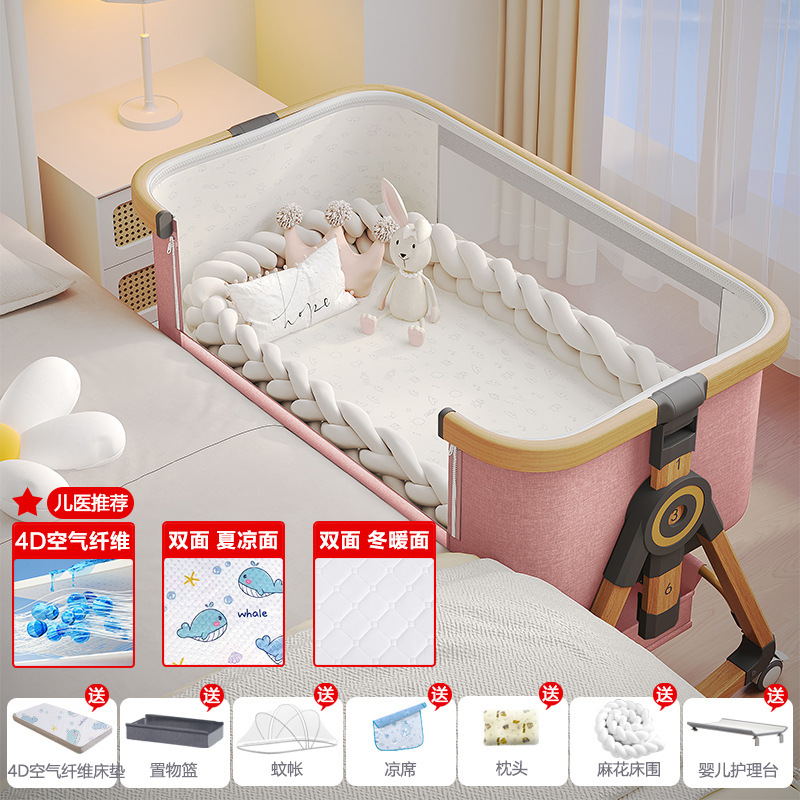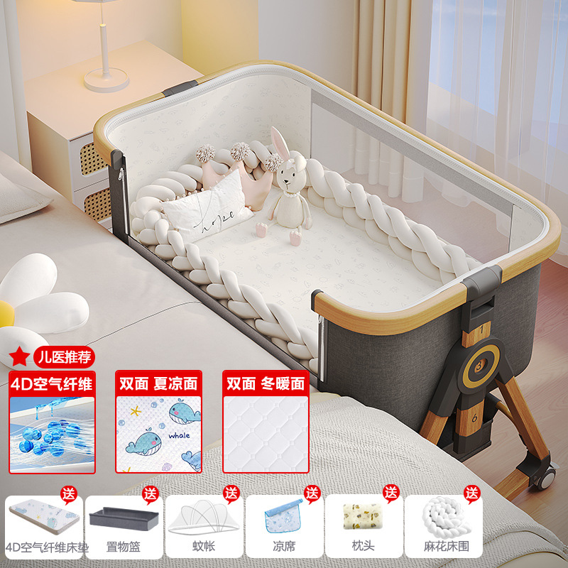 • 나뭇결 알루미늄 - 바람 빗 연기 가루丨드림 모델 [사계절 양면 4D 에어 섬유 매트리스] 수납 바구니 + 모기장 + 매트 + 베개 + 기저귀 교환대 + 트위스트 침대 서라운더 CS8
