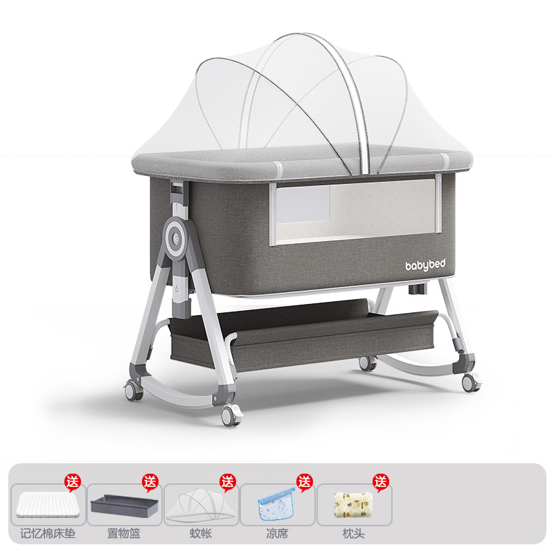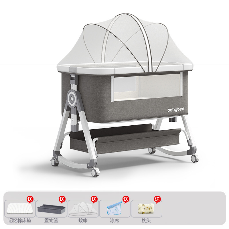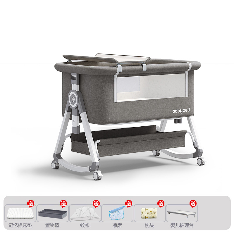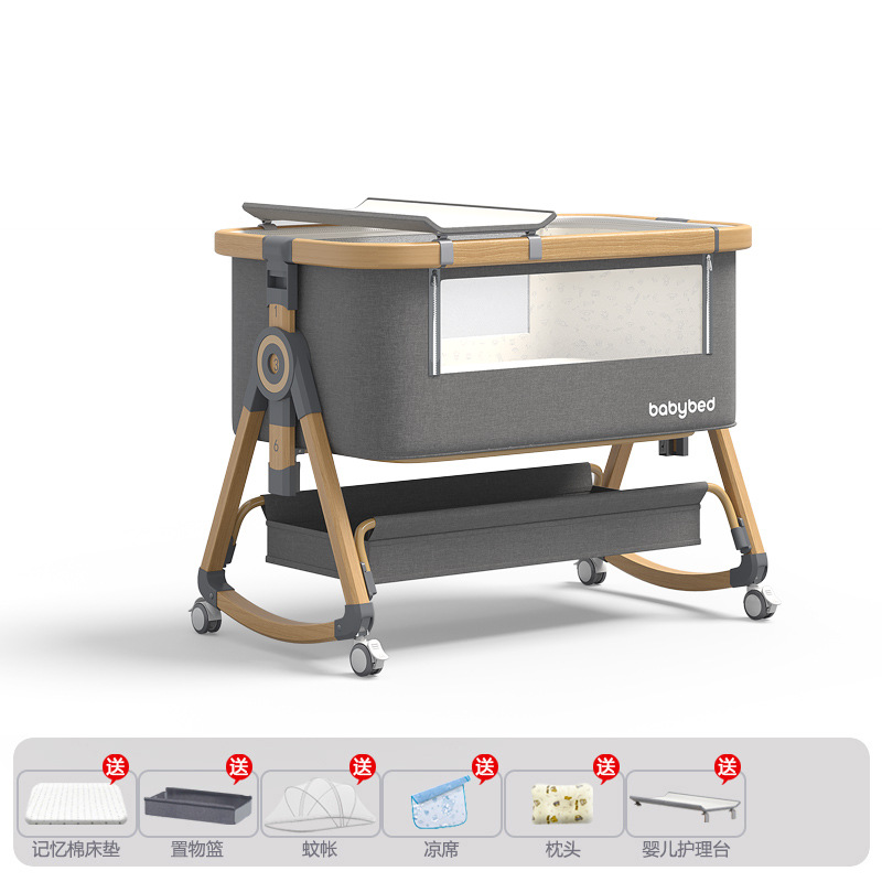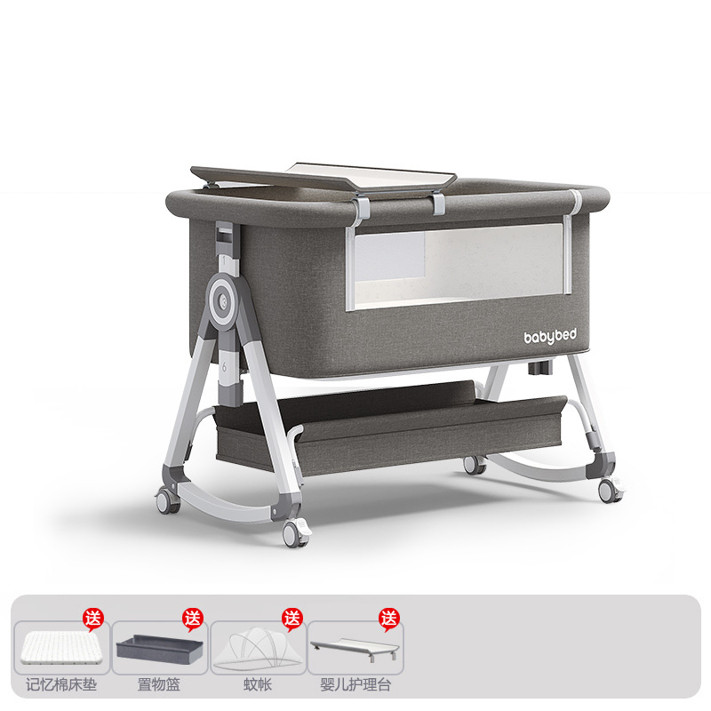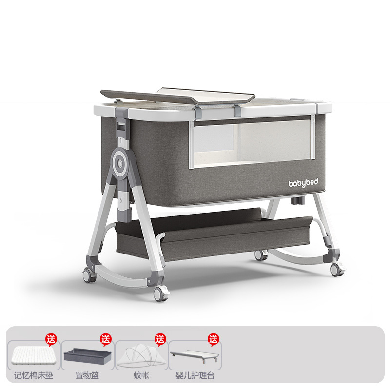 • 고탄소강-무유윤그레이丨드림빌딩모델 [메모리폼패드] 수납바구니 + 모기장 + 매트 + 베개 + 기저귀교환대 + 트위스트 침대사이드 (CS-6)