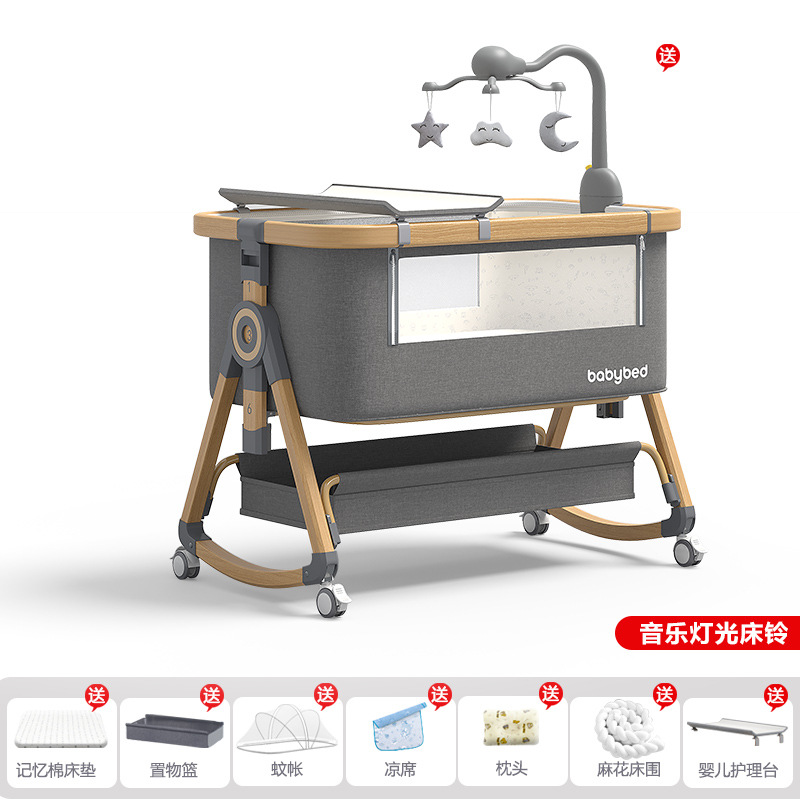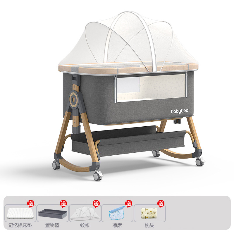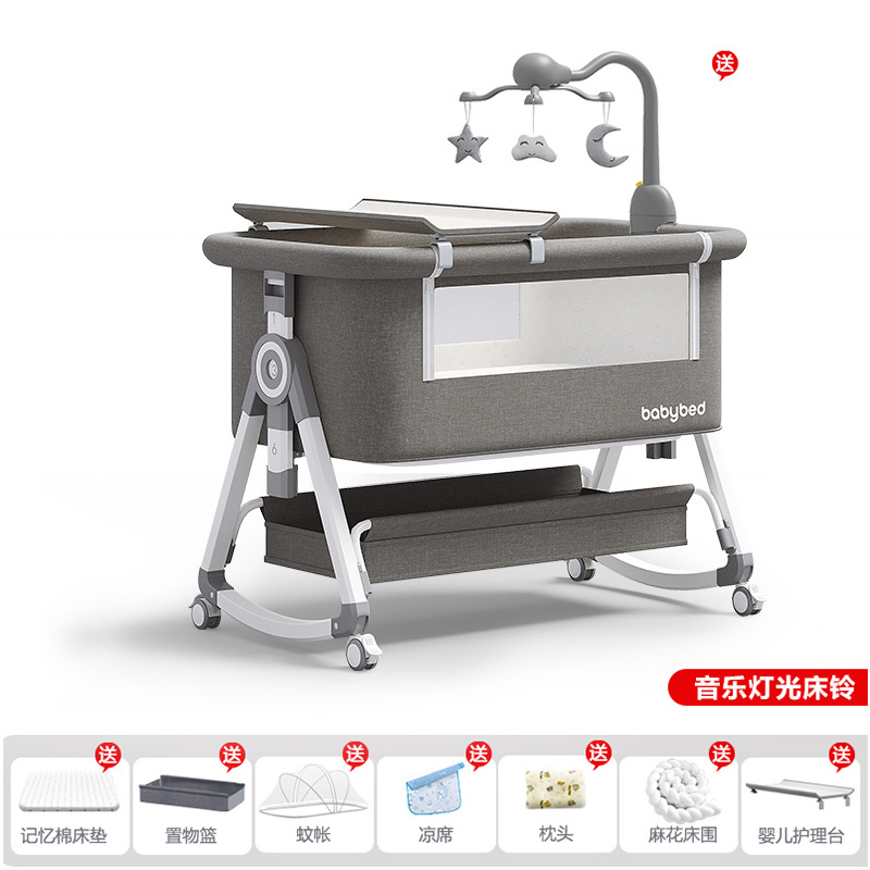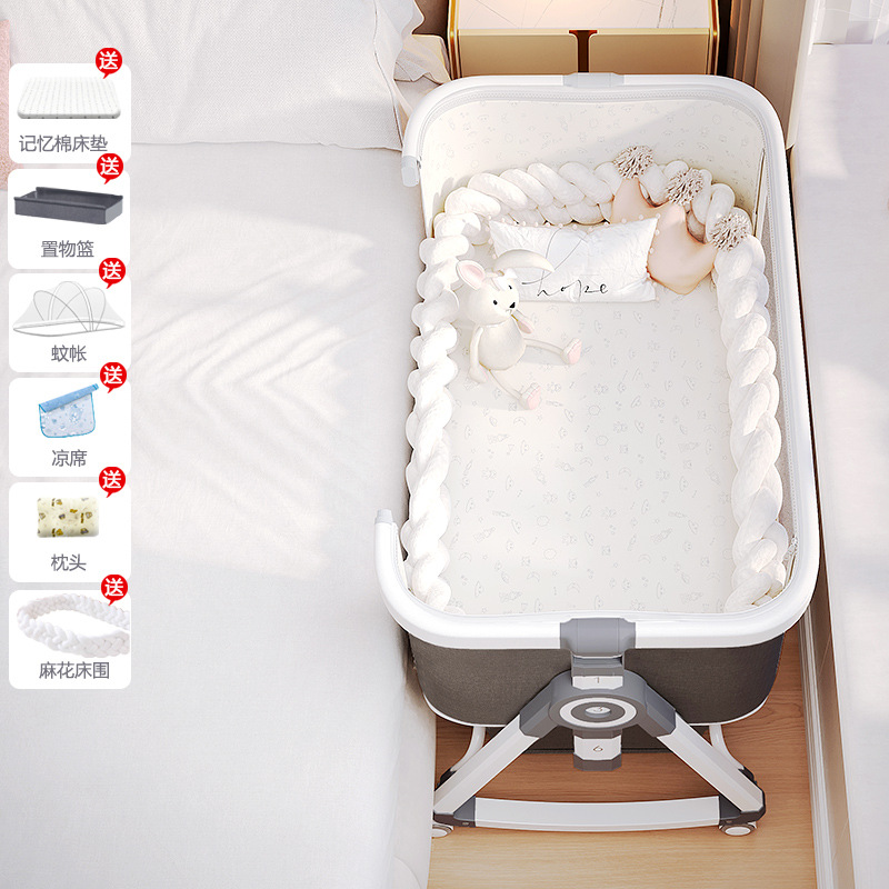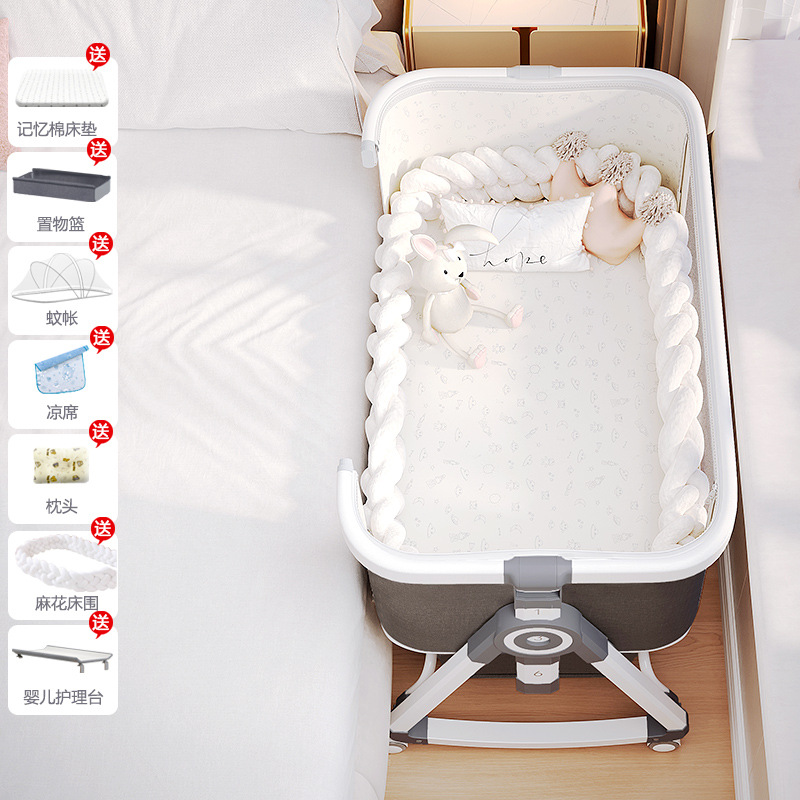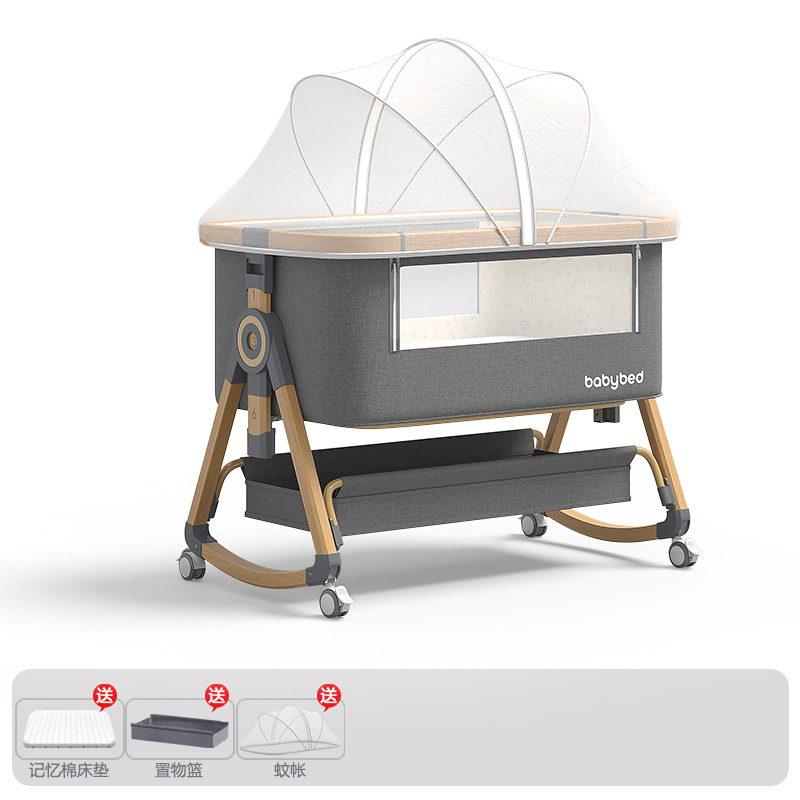 • 고탄소강-무유윤그레이丨드림빌딩모델 [메모리폼패드] 수납바구니 + 모기장 + 매트 + 베개 + 기저귀교환대 + 트위스트 침대사이드 (CS-6)