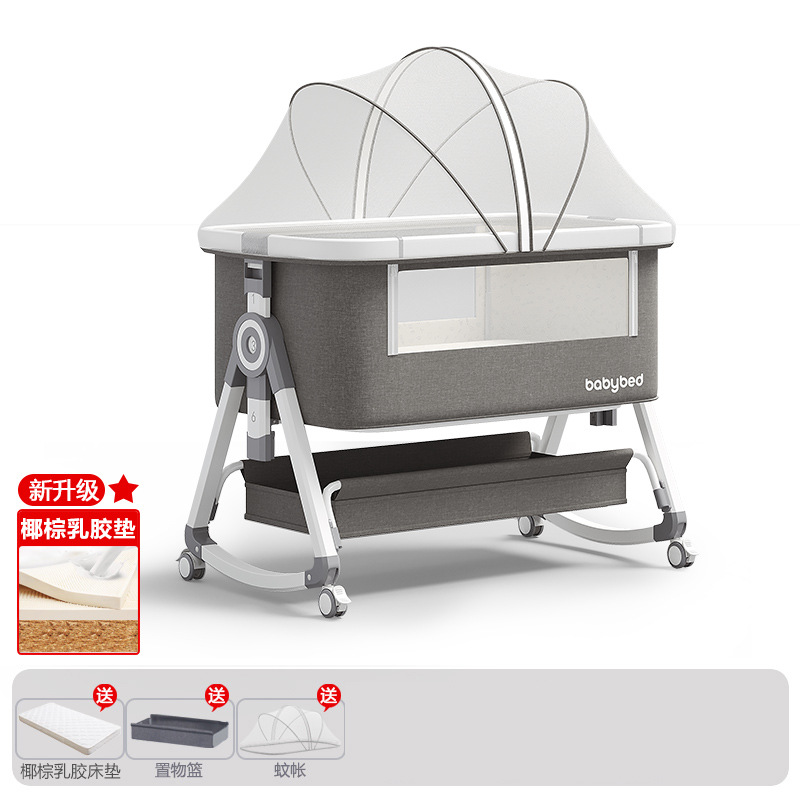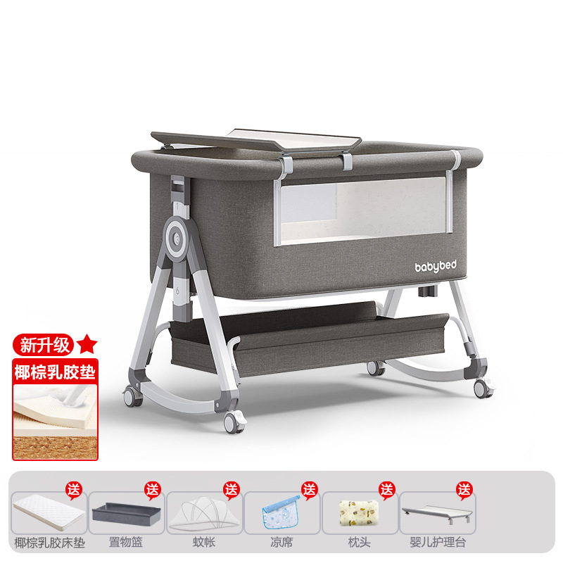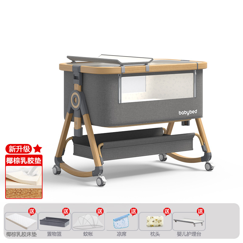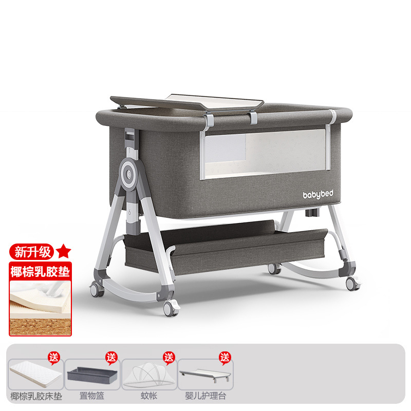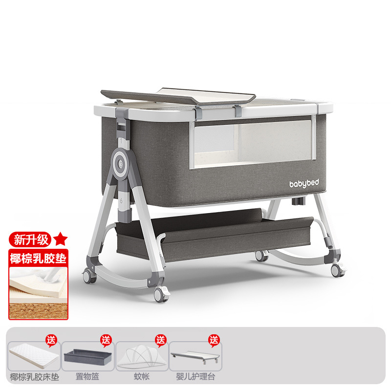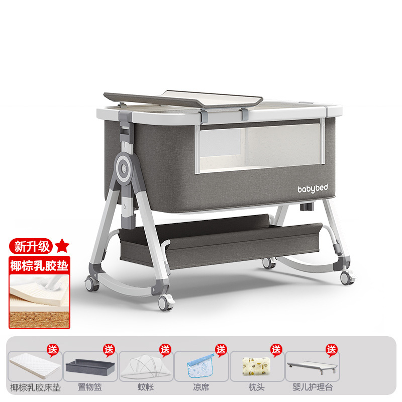 • 고탄소강-무유윤그레이丨드림빌딩모델 [코코넛팜 라텍스매트] 수납바구니 + 모기장 + 매트 + 베개 + 기저귀교환대 + 트위스트 침대사이드 (CS-6)