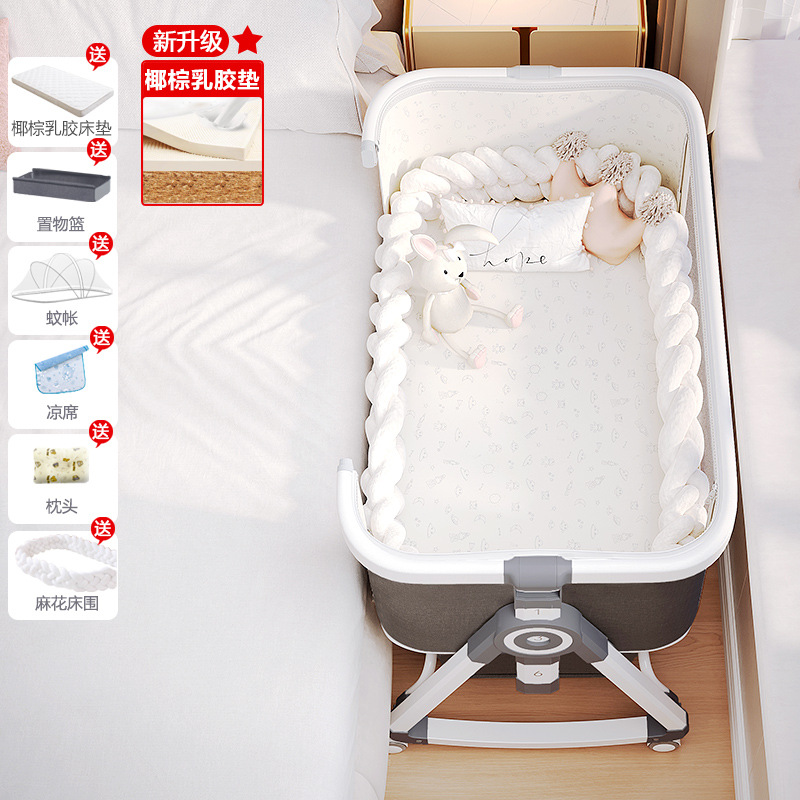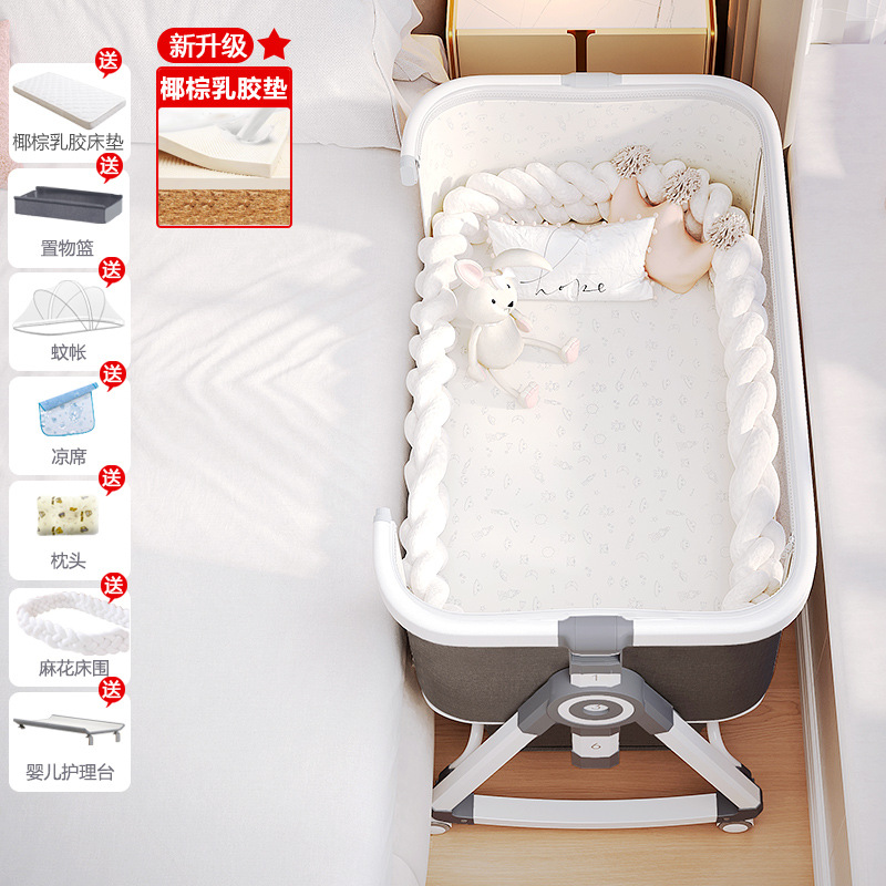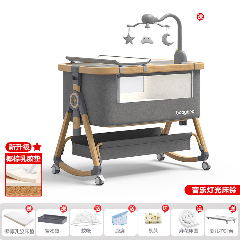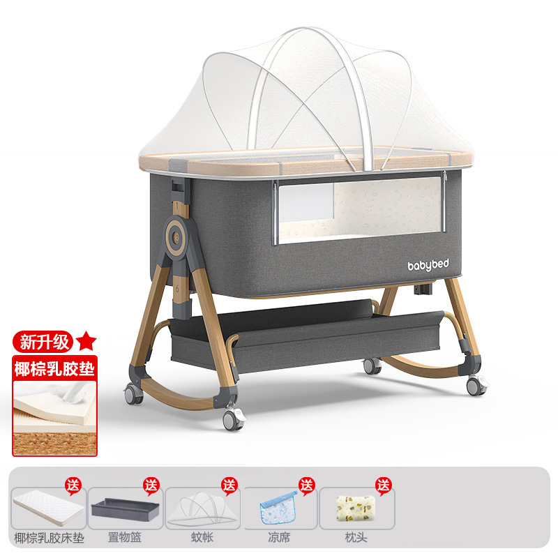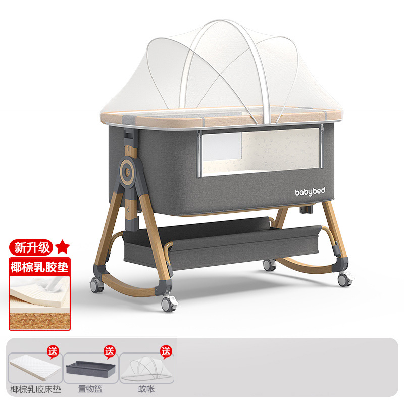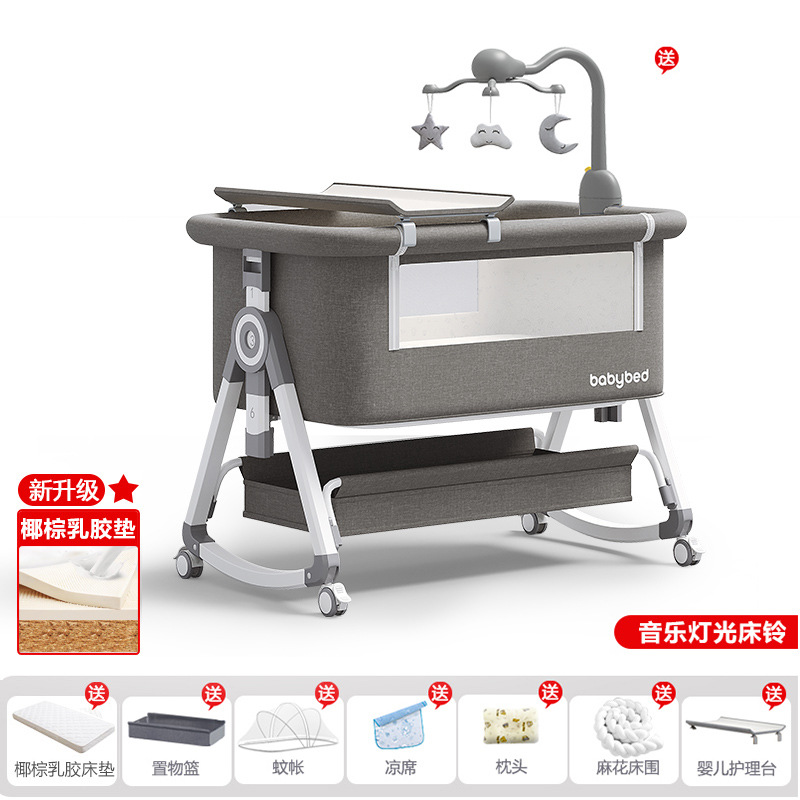 • 고탄소강-무유윤그레이丨드림빌딩모델 [코코넛팜 라텍스매트] 수납바구니 + 모기장 + 매트 + 베개 + 기저귀교환대 + 트위스트 침대사이드 (CS-6)
