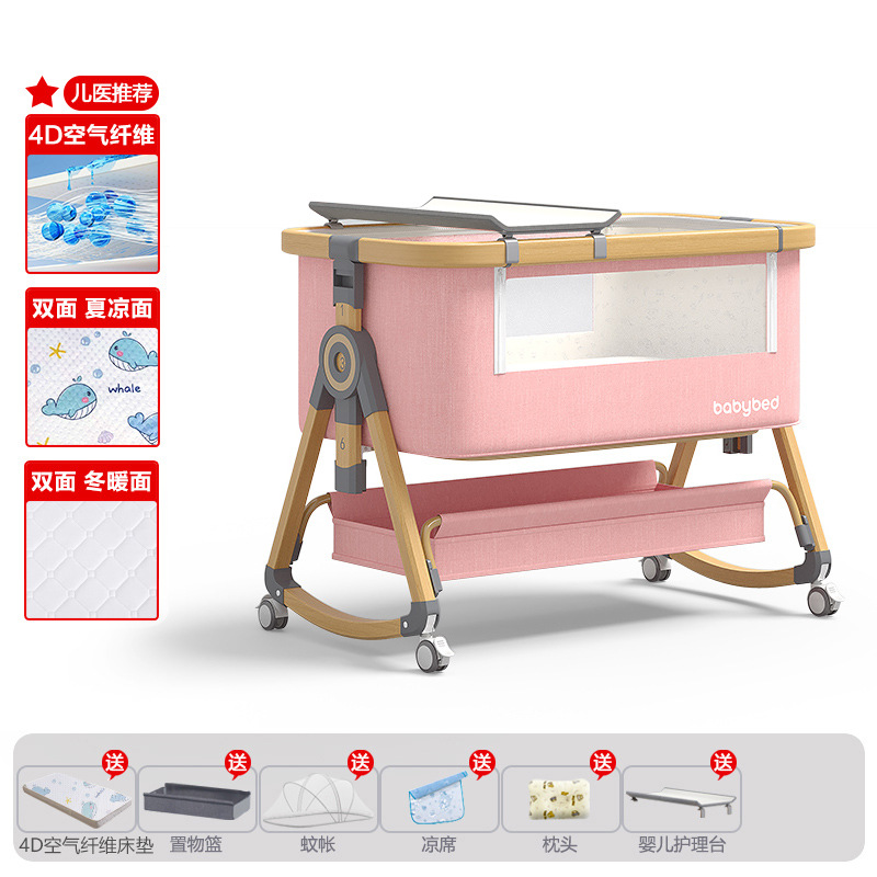 • 나뭇결 알루미늄풍빗 담배가루丨전용모델 [사계절 양면 4D 에어섬유 매트리스] 수납바구니 + 모기장 + 매트 + 베개 + 기저귀교환대 (CS-8)