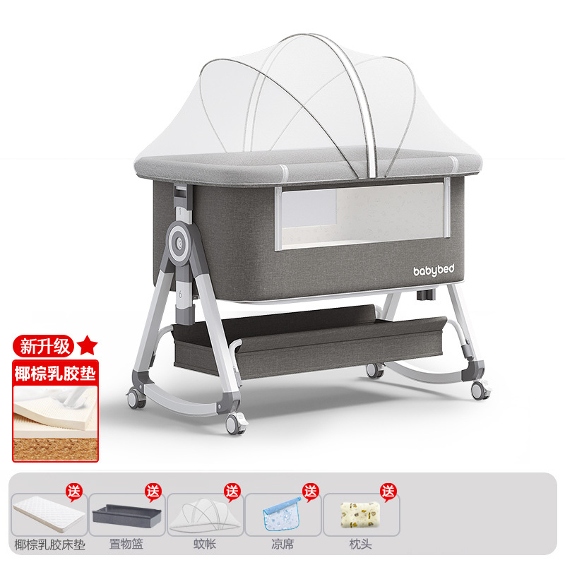 • 고탄소강-무유윤그레이丨전용모델 [코코넛팜 라텍스매트] 수납바구니 + 모기장 + 매트 + 베개 + 기저귀교환대 (CS-6)