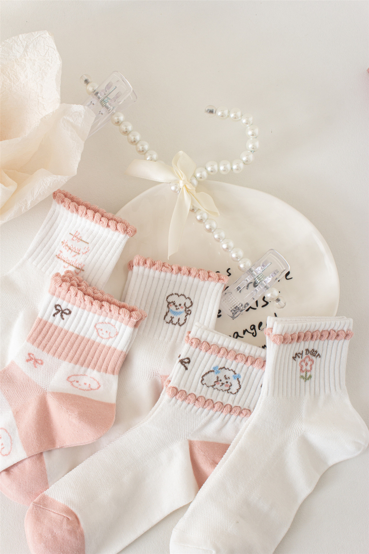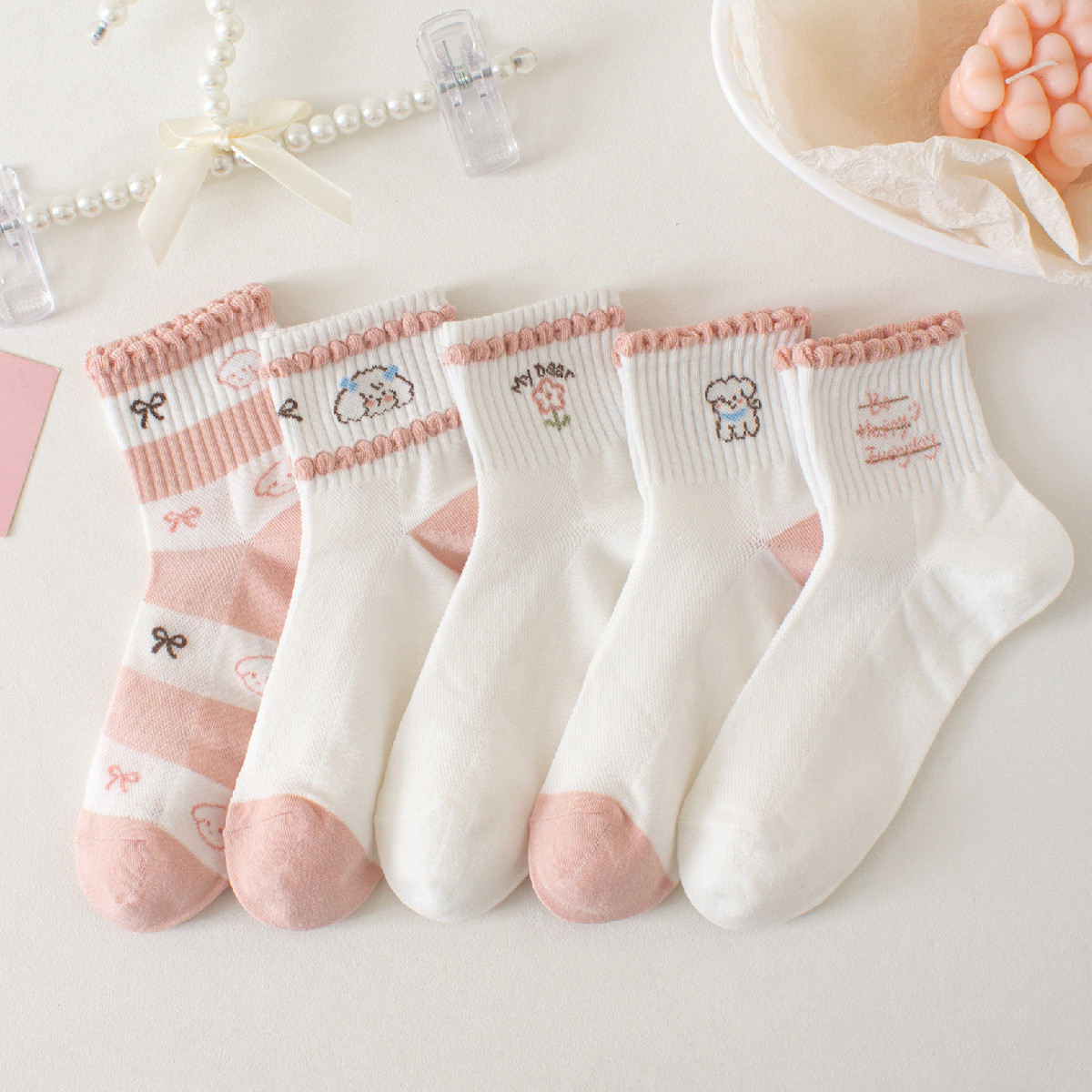 강아지 양말 여성 여름 메쉬 얇은 귀여운 일본면 양말 독일 훈련 신발 짧은 양말 한국 스타일 여름 흰색 양말