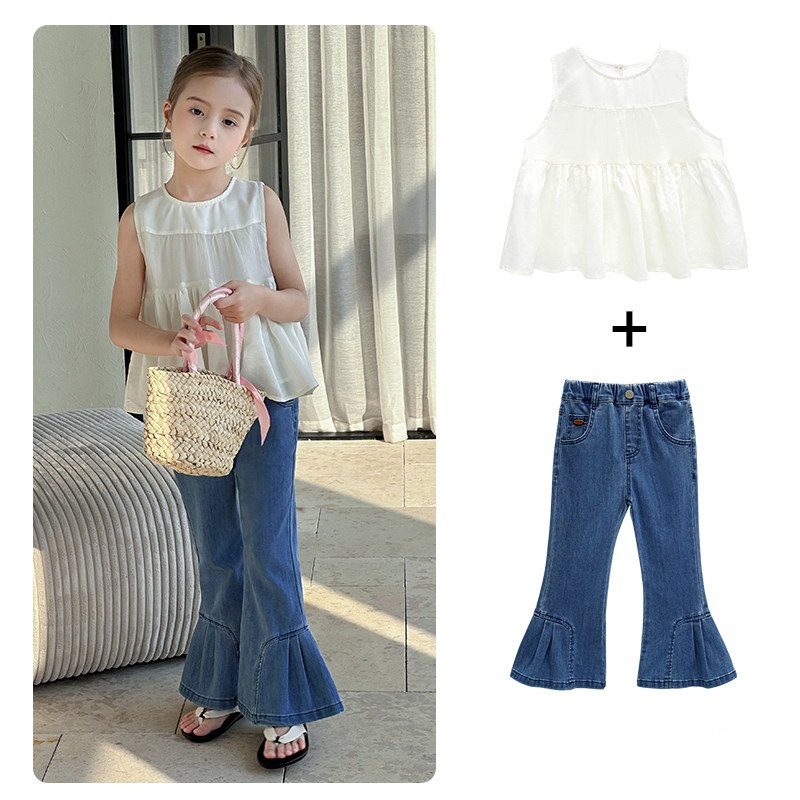 투투 리틀 엘리펀트 여아 청바지 2026 봄 한국 스타일 달콤한 부모-자녀 스타일 패셔너블한 피쉬테일 플레어 팬츠 캐주얼 팬츠스토어 가기