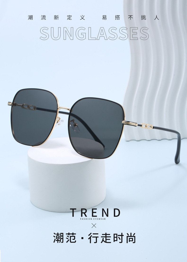 금속제 밝은색 투명 선글라스 여성용 큰 얼굴용 고급 대형 프레임 안경 자외선 차단 선글라스 근시용 안경 우아한 스타일스토어 가기