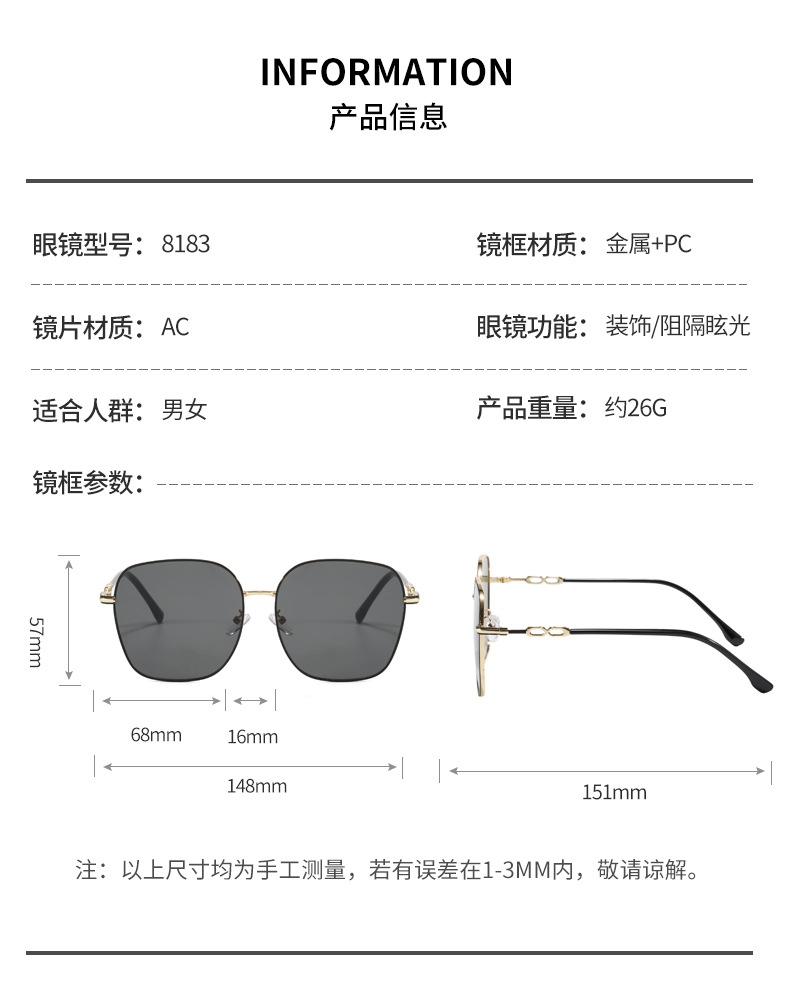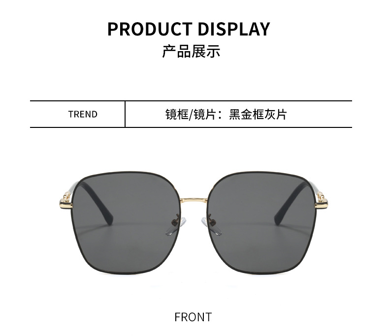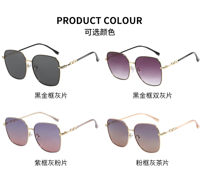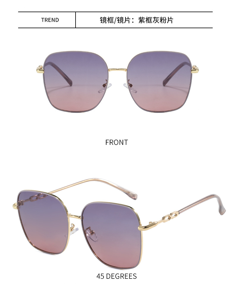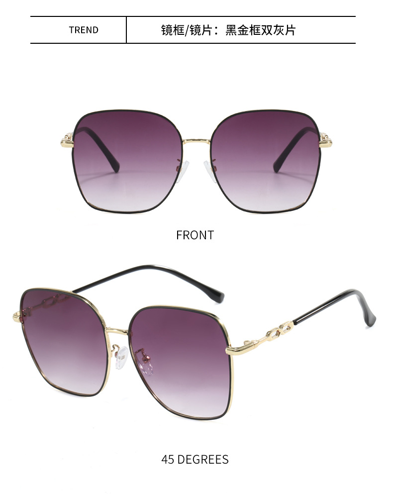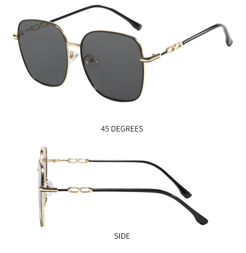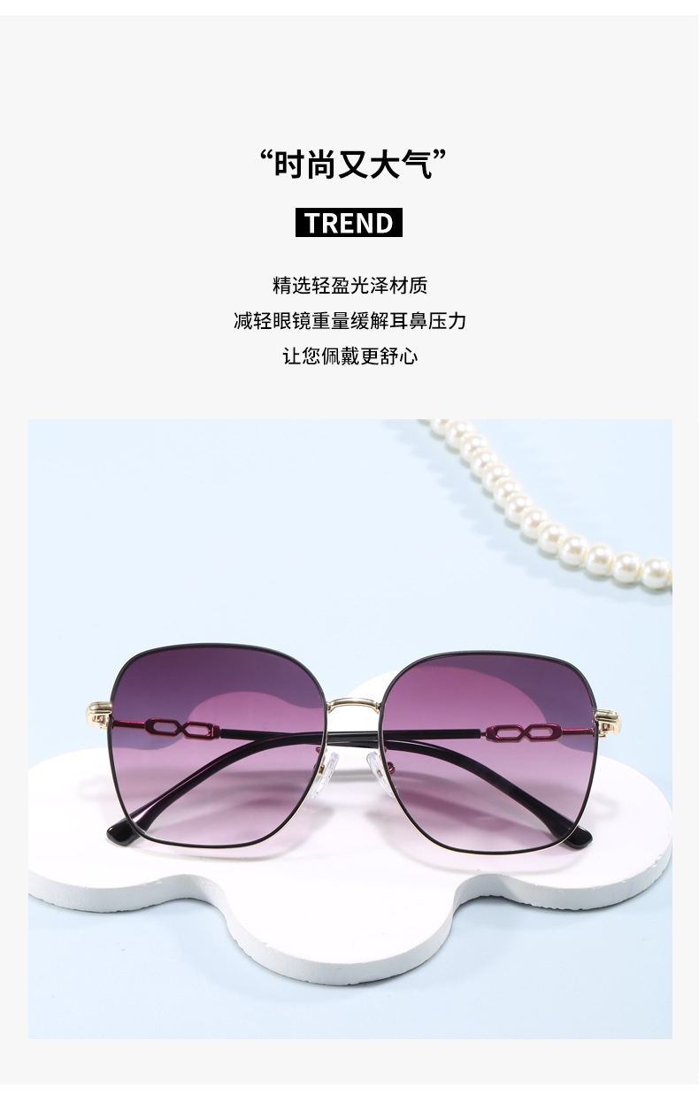 금속제 밝은색 투명 선글라스 여성용 큰 얼굴용 고급 대형 프레임 안경 자외선 차단 선글라스 근시용 안경 우아한 스타일