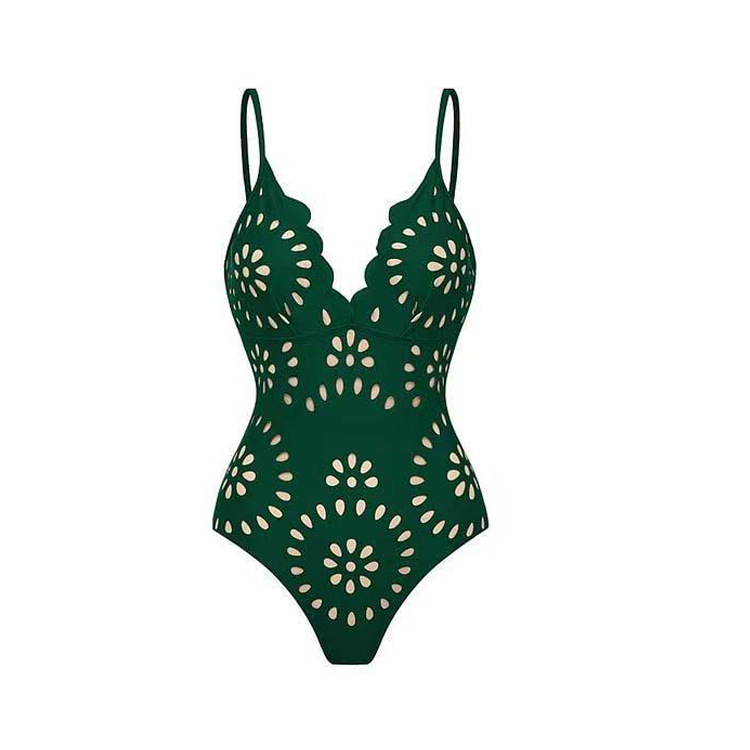 재고 2025 새로운 폭발 솔리드 컬러 섹시 레이저 컷 수영복 여성 유럽과 미국의 투피스 수영복 세트