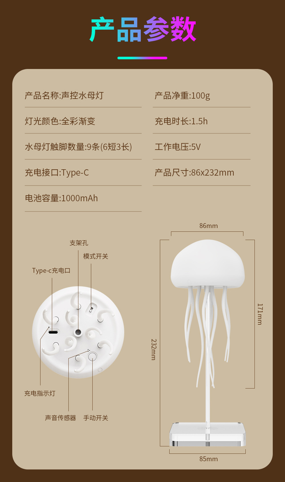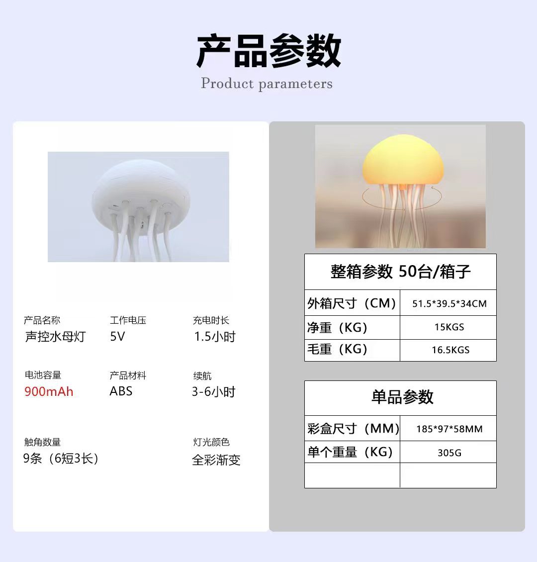 • 풀 컬러 매달린 해파리 램프 - 매달린 + 아크릴 베이스