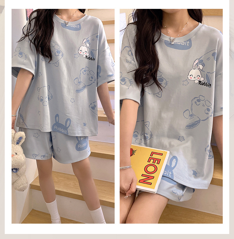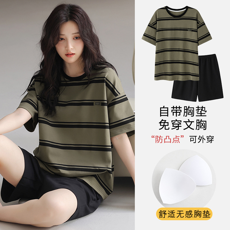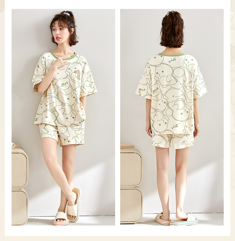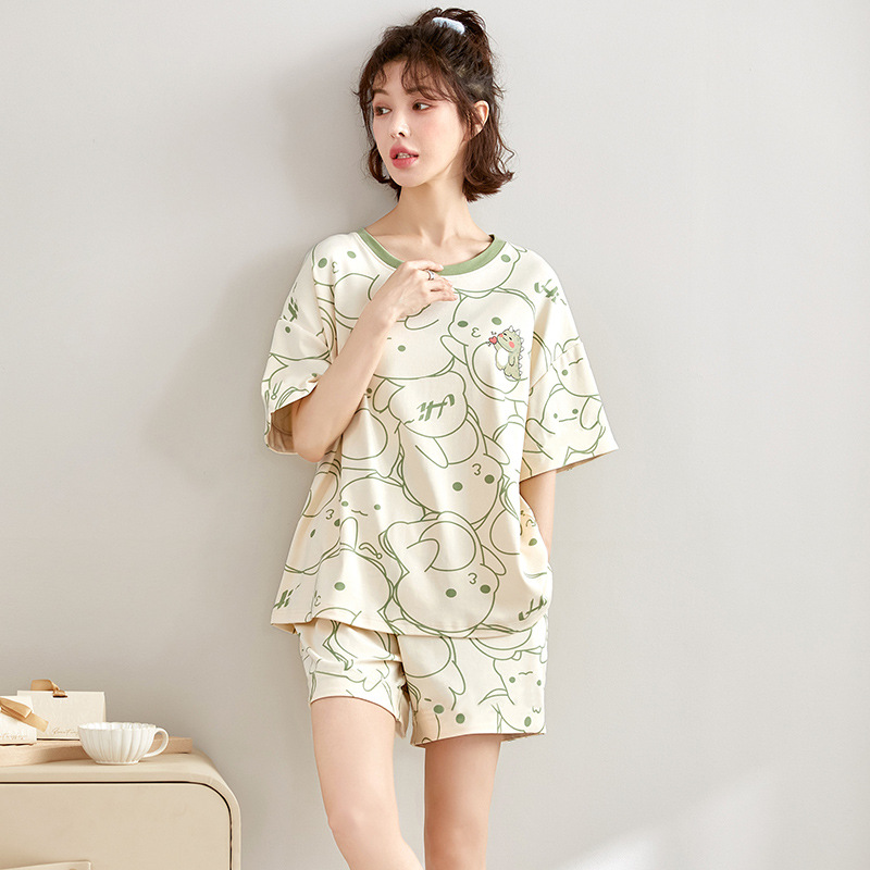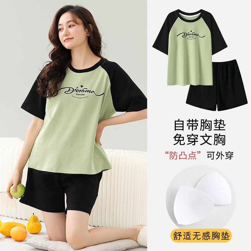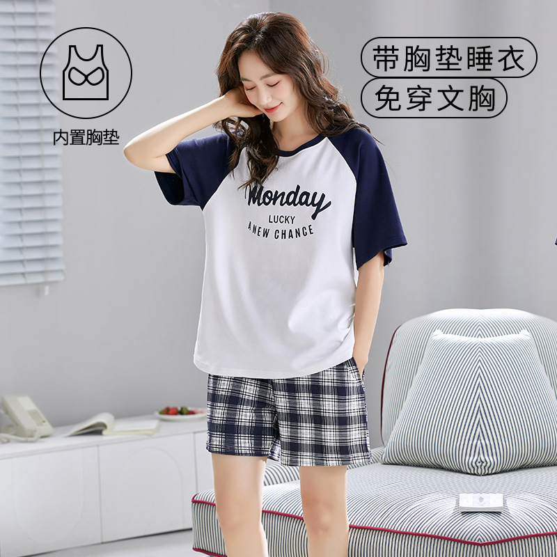 2025 반팔 잠옷 여성의 여름 얇은 가슴 패드 만화 소녀 학생 라운드 넥 여름 홈 의류
