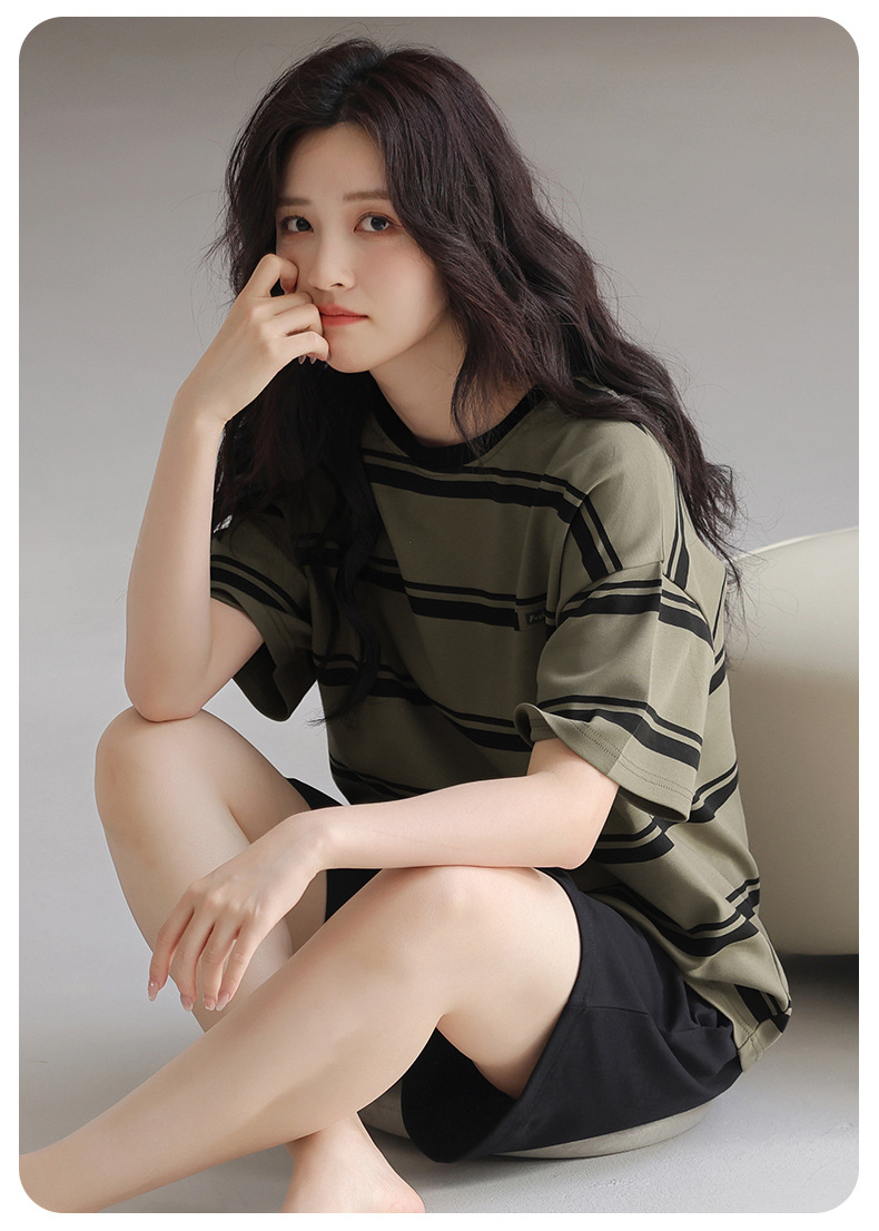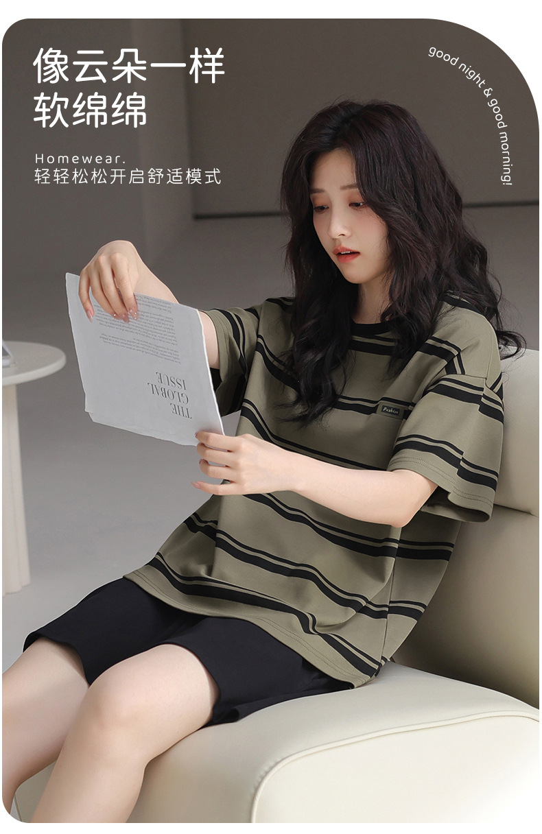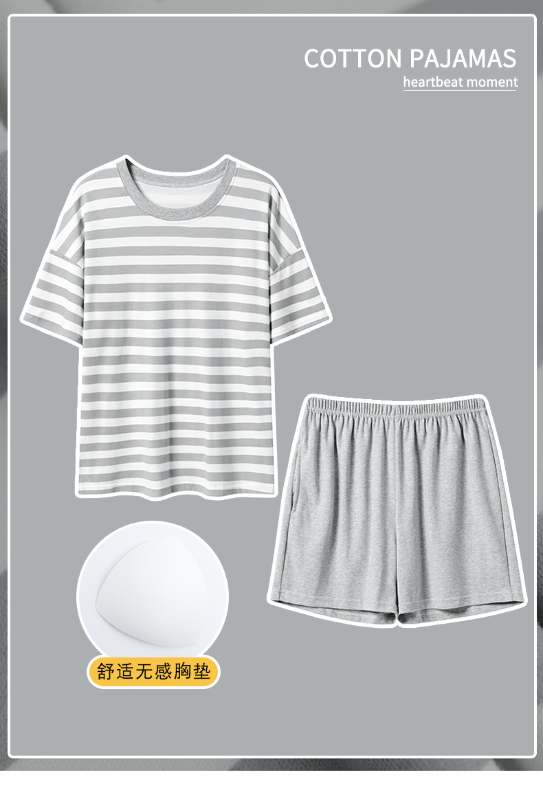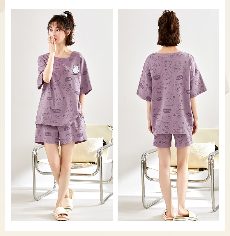 2025 반팔 잠옷 여성의 여름 얇은 가슴 패드 만화 소녀 학생 라운드 넥 여름 홈 의류