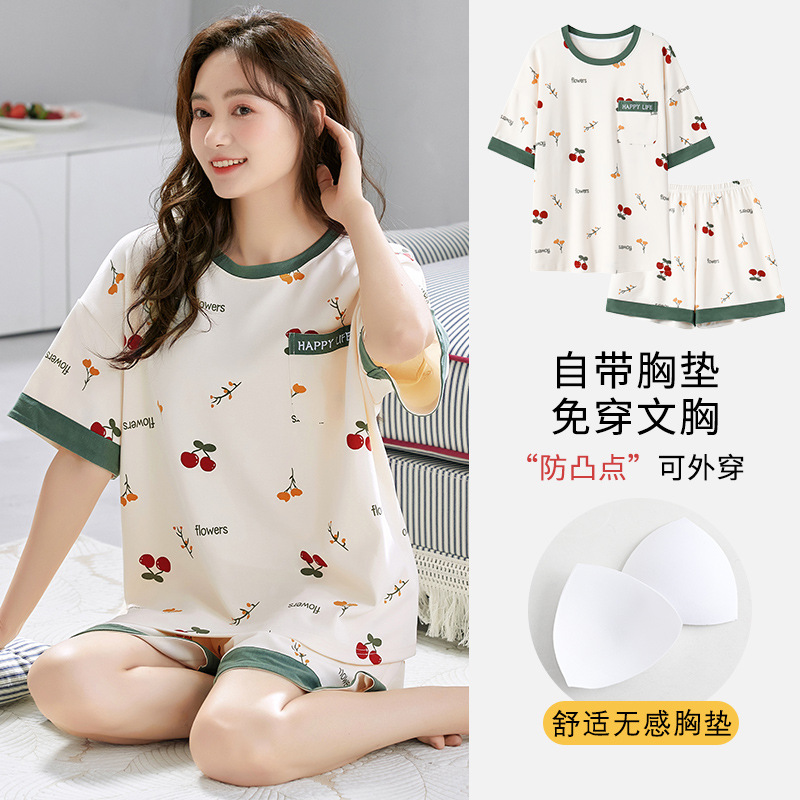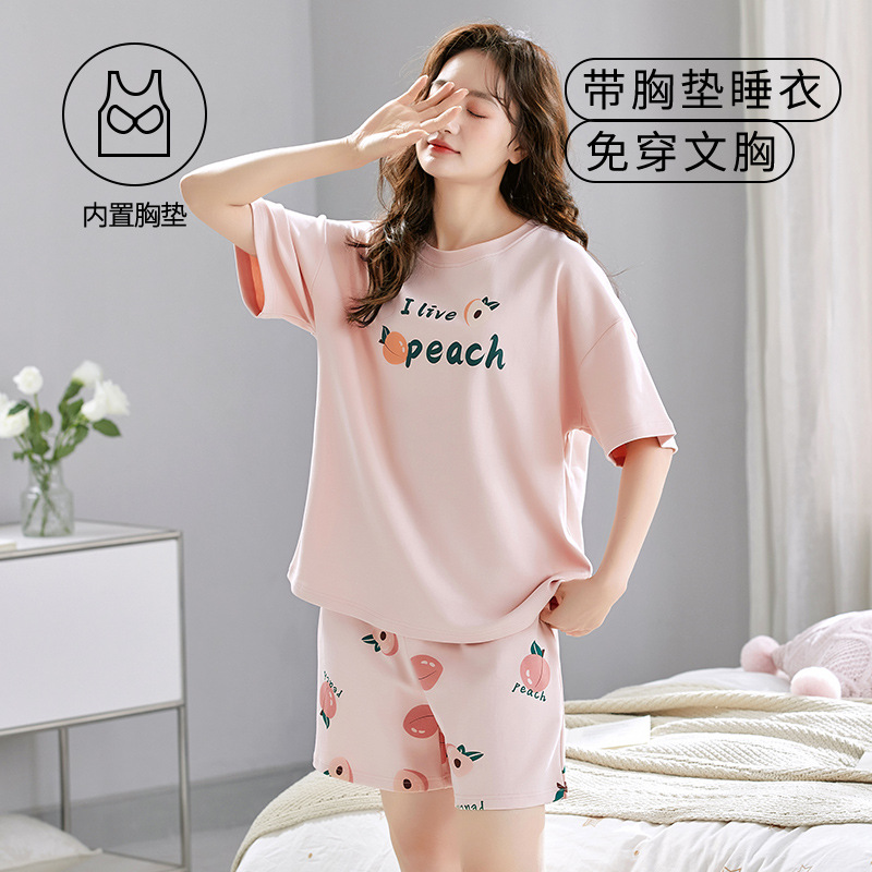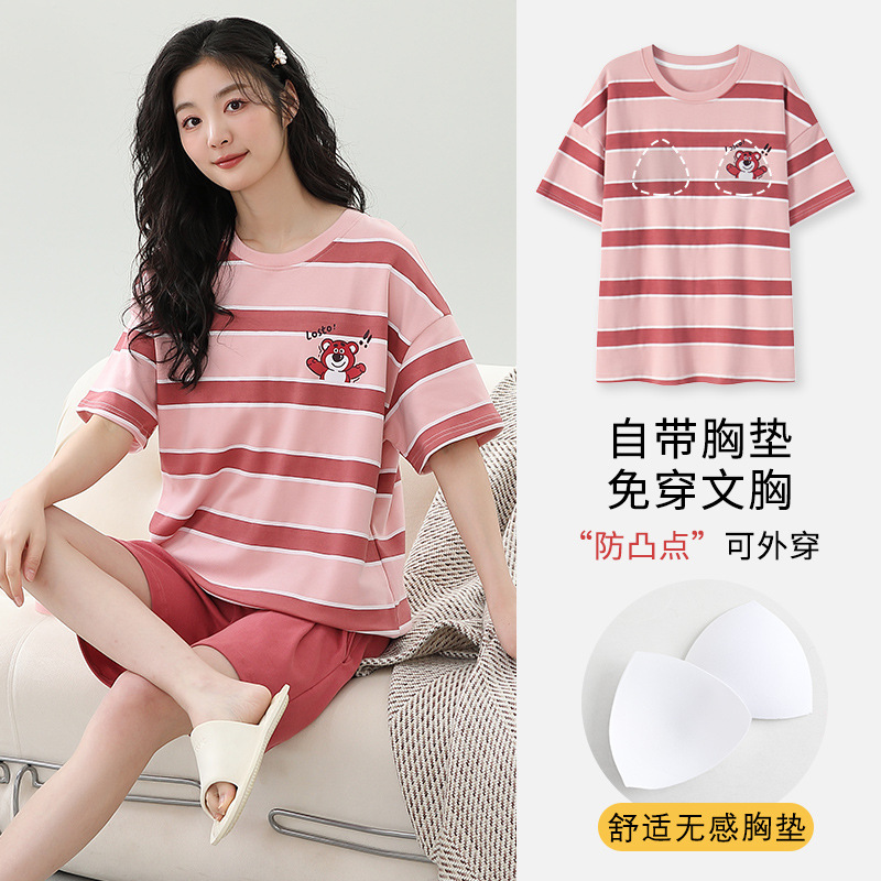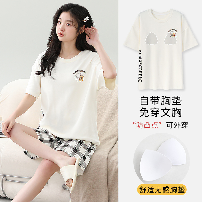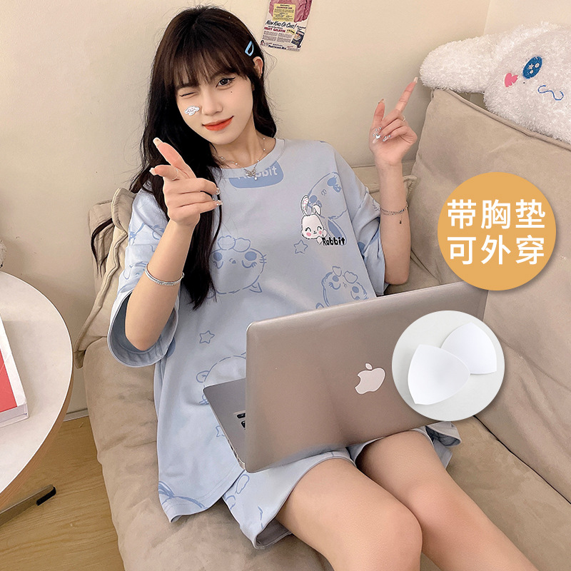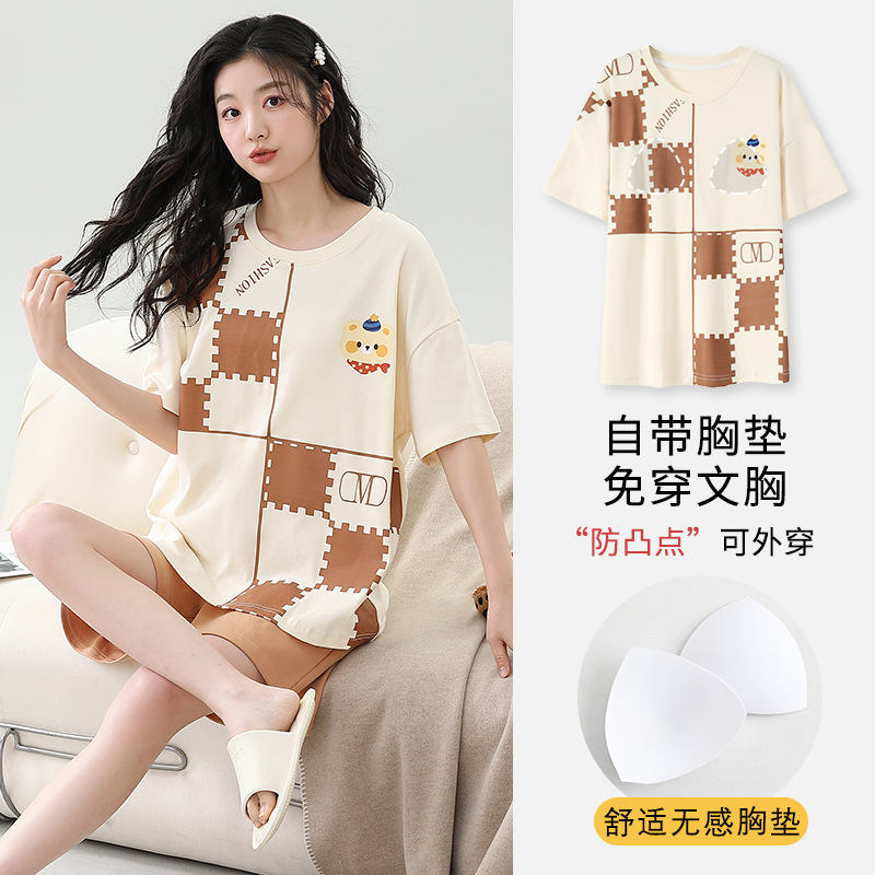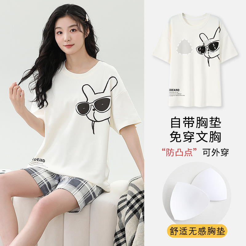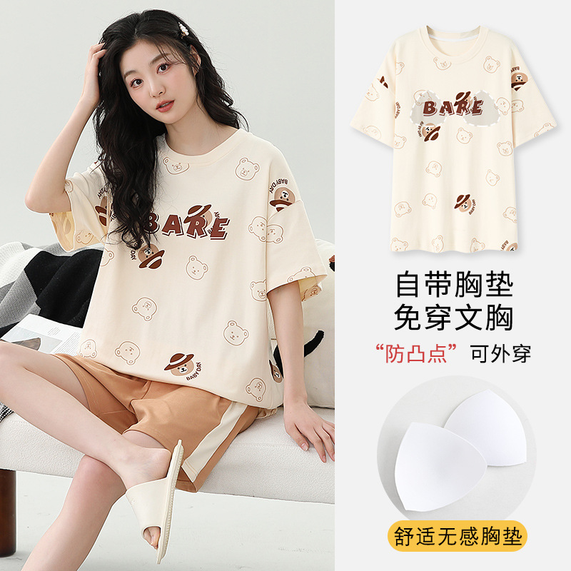 2025 반팔 잠옷 여성의 여름 얇은 가슴 패드 만화 소녀 학생 라운드 넥 여름 홈 의류스토어 가기