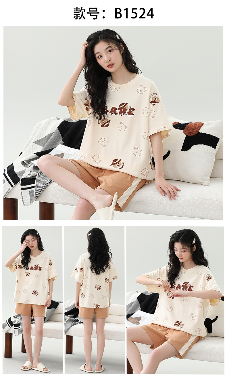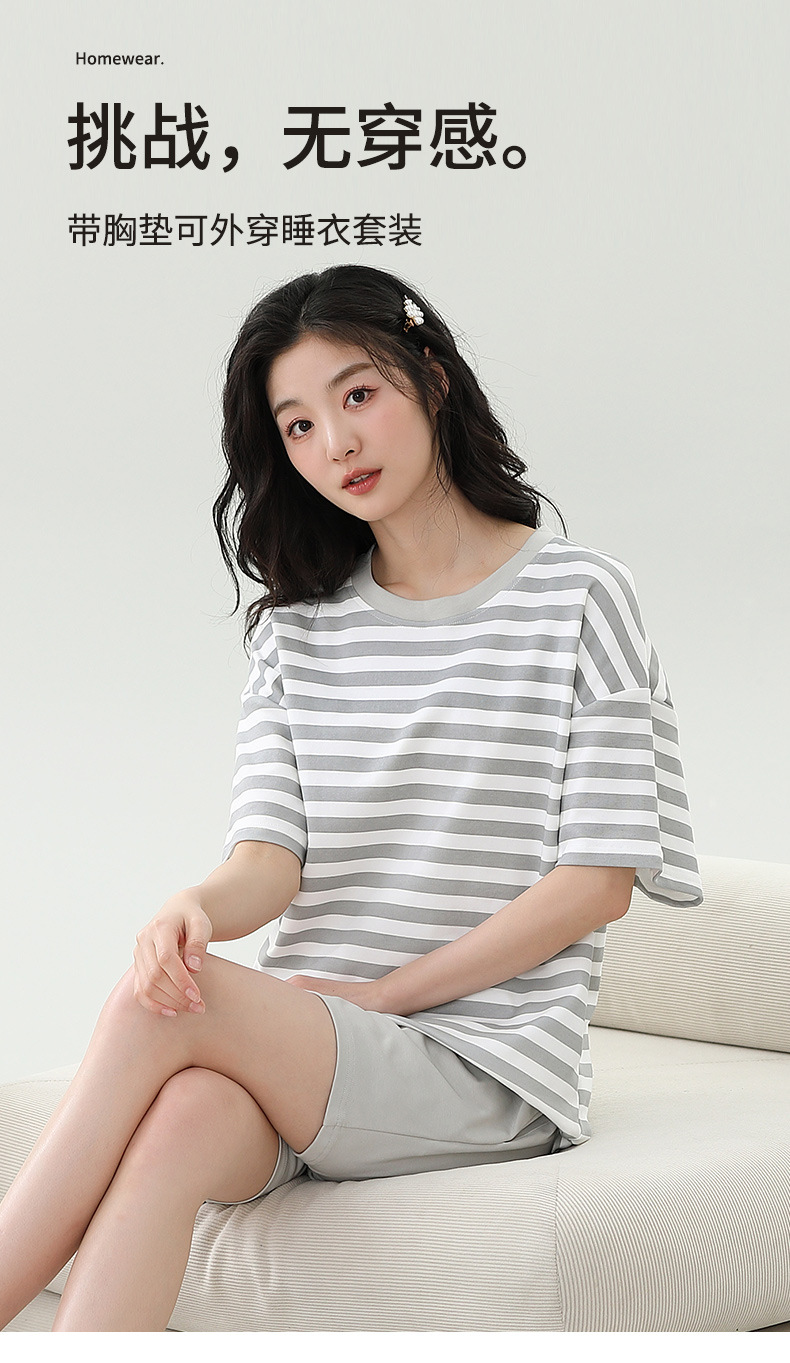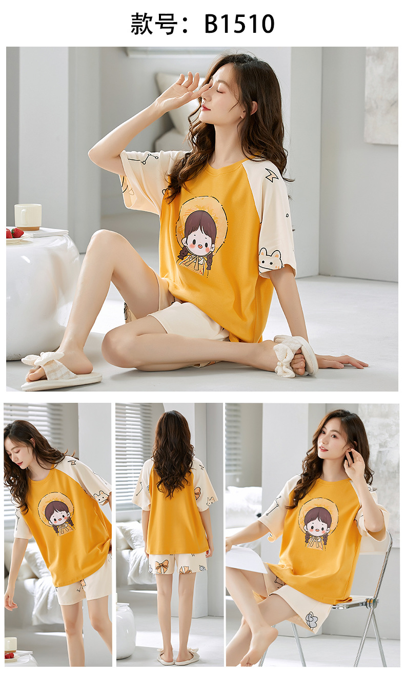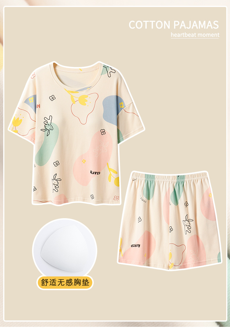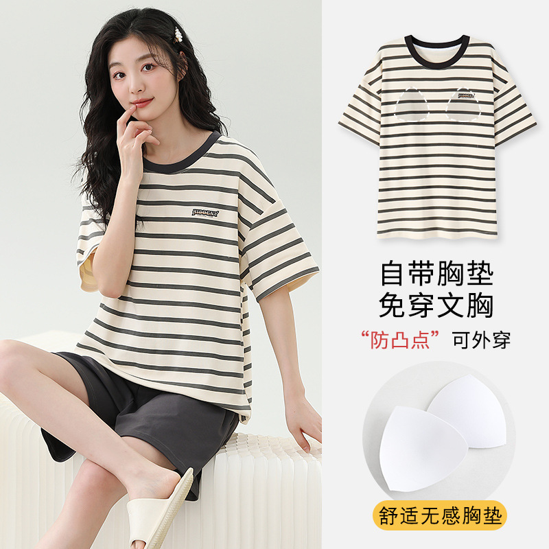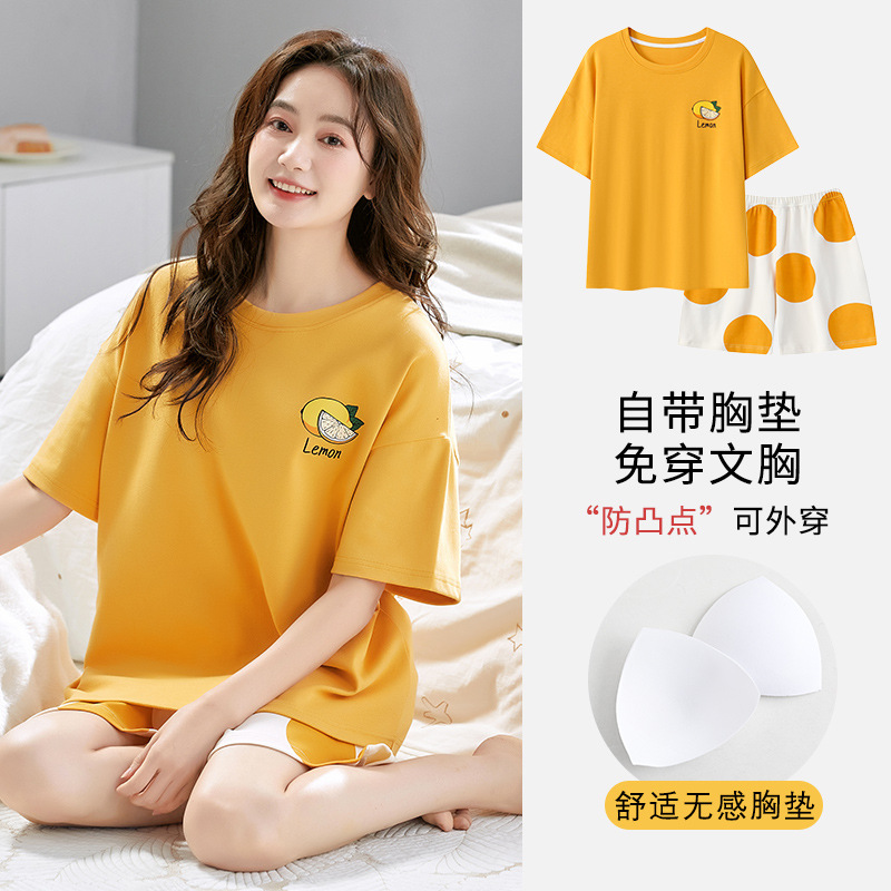 2025 반팔 잠옷 여성의 여름 얇은 가슴 패드 만화 소녀 학생 라운드 넥 여름 홈 의류스토어 가기