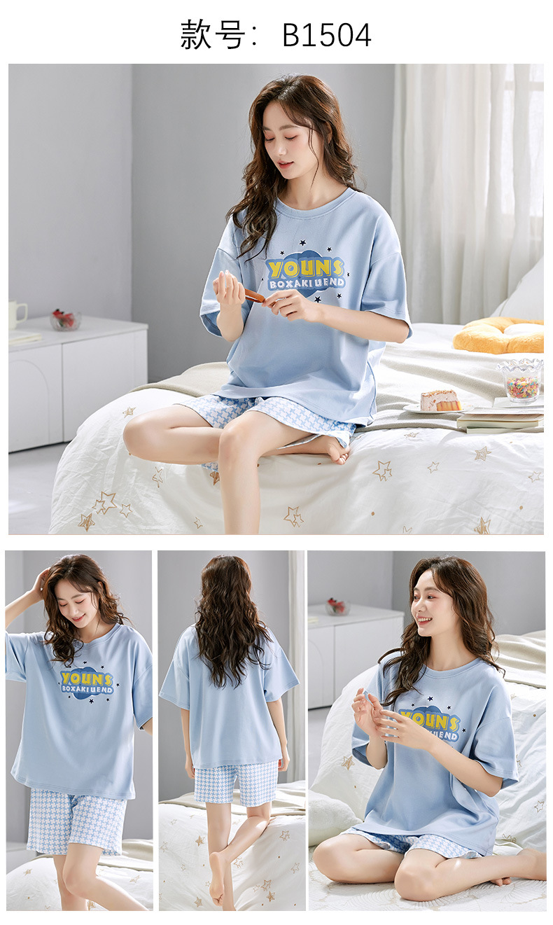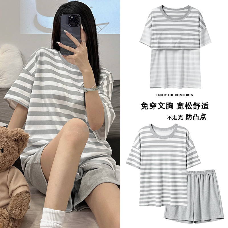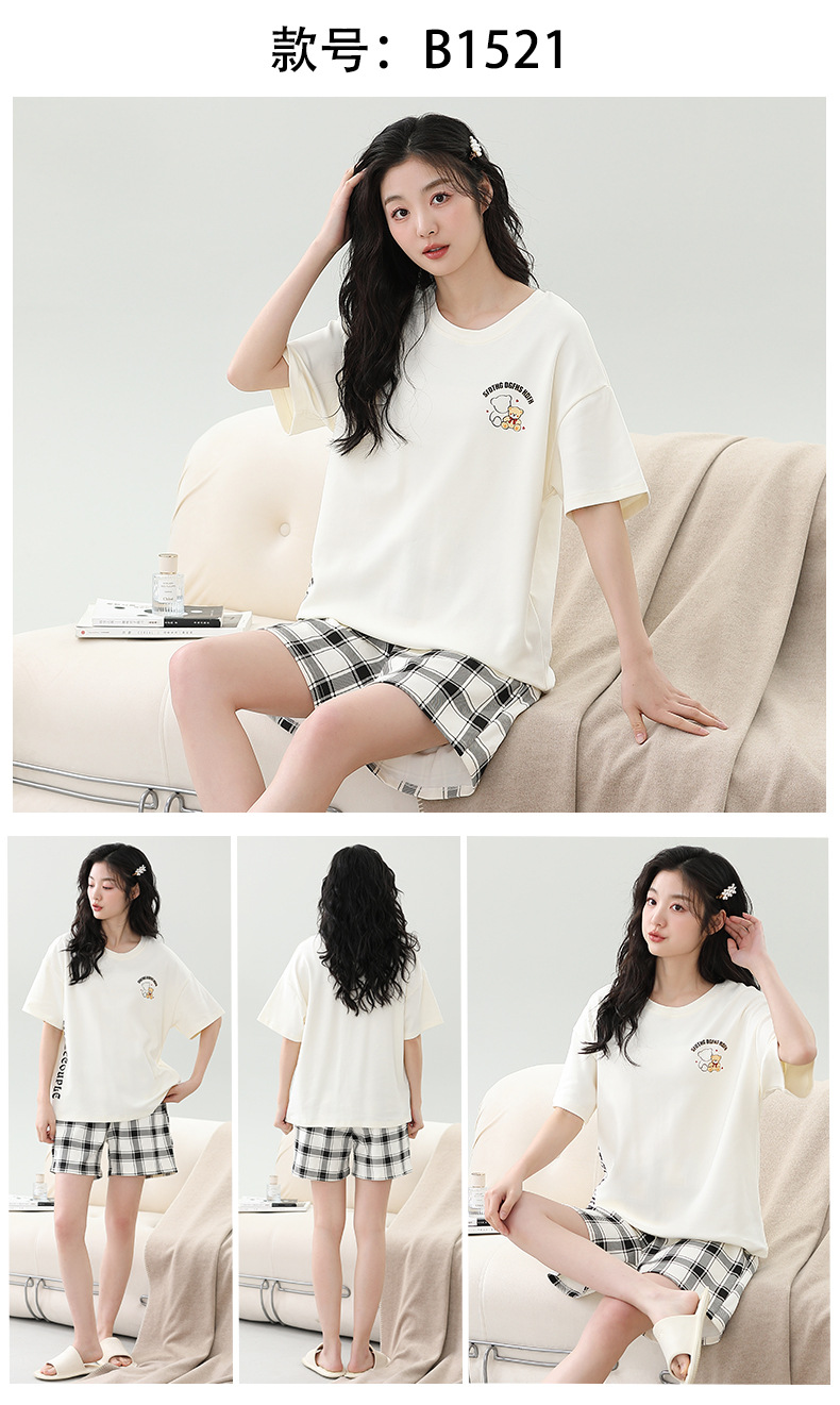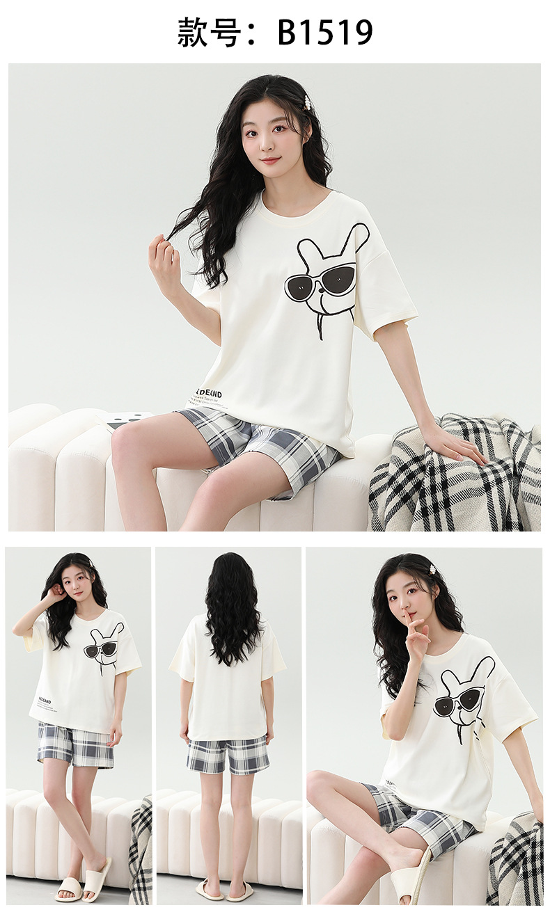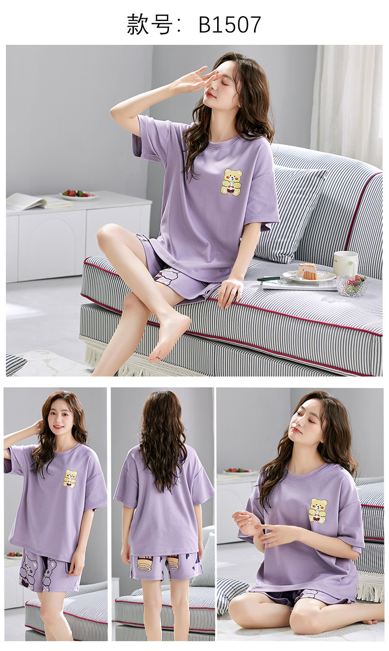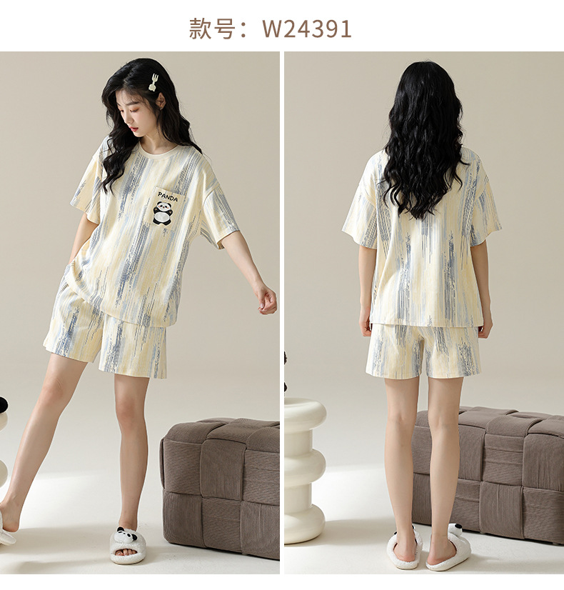 2025 반팔 잠옷 여성의 여름 얇은 가슴 패드 만화 소녀 학생 라운드 넥 여름 홈 의류스토어 가기