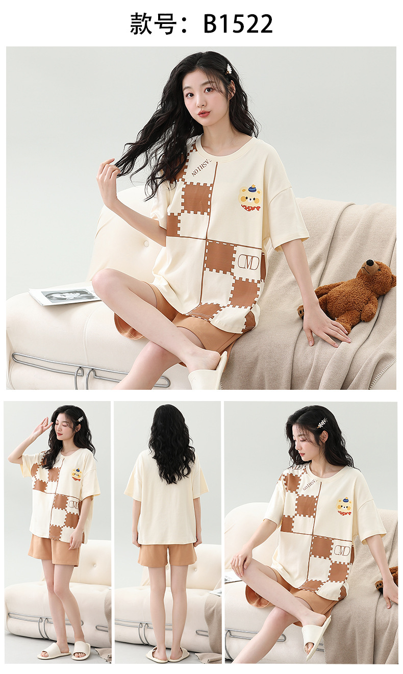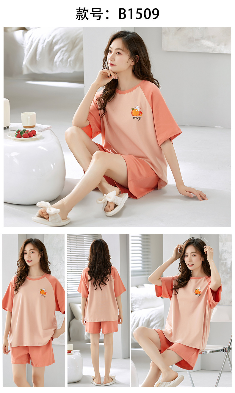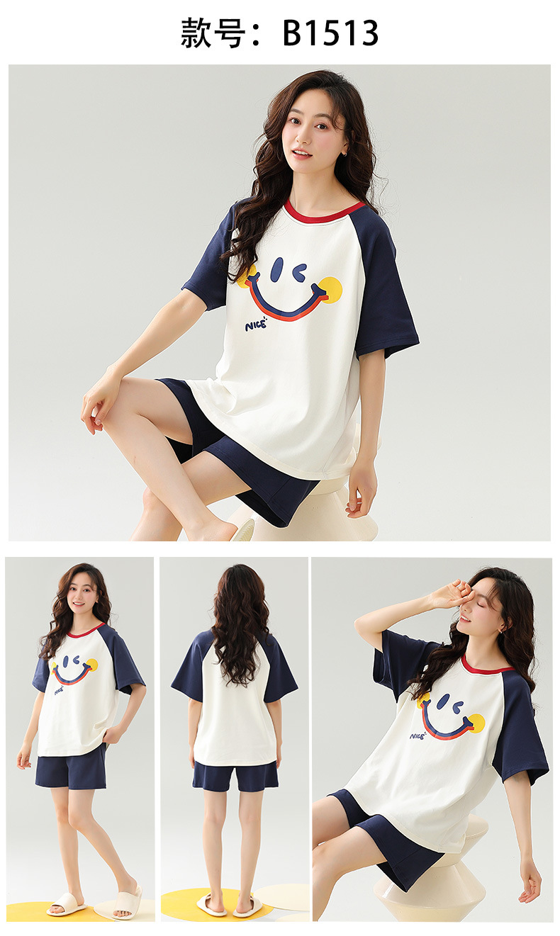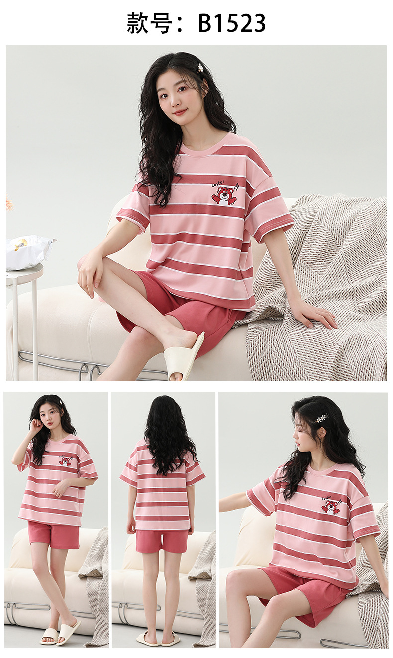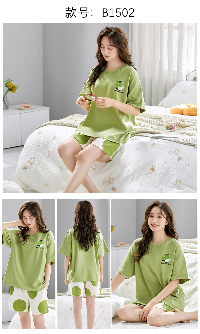 2025 반팔 잠옷 여성의 여름 얇은 가슴 패드 만화 소녀 학생 라운드 넥 여름 홈 의류스토어 가기