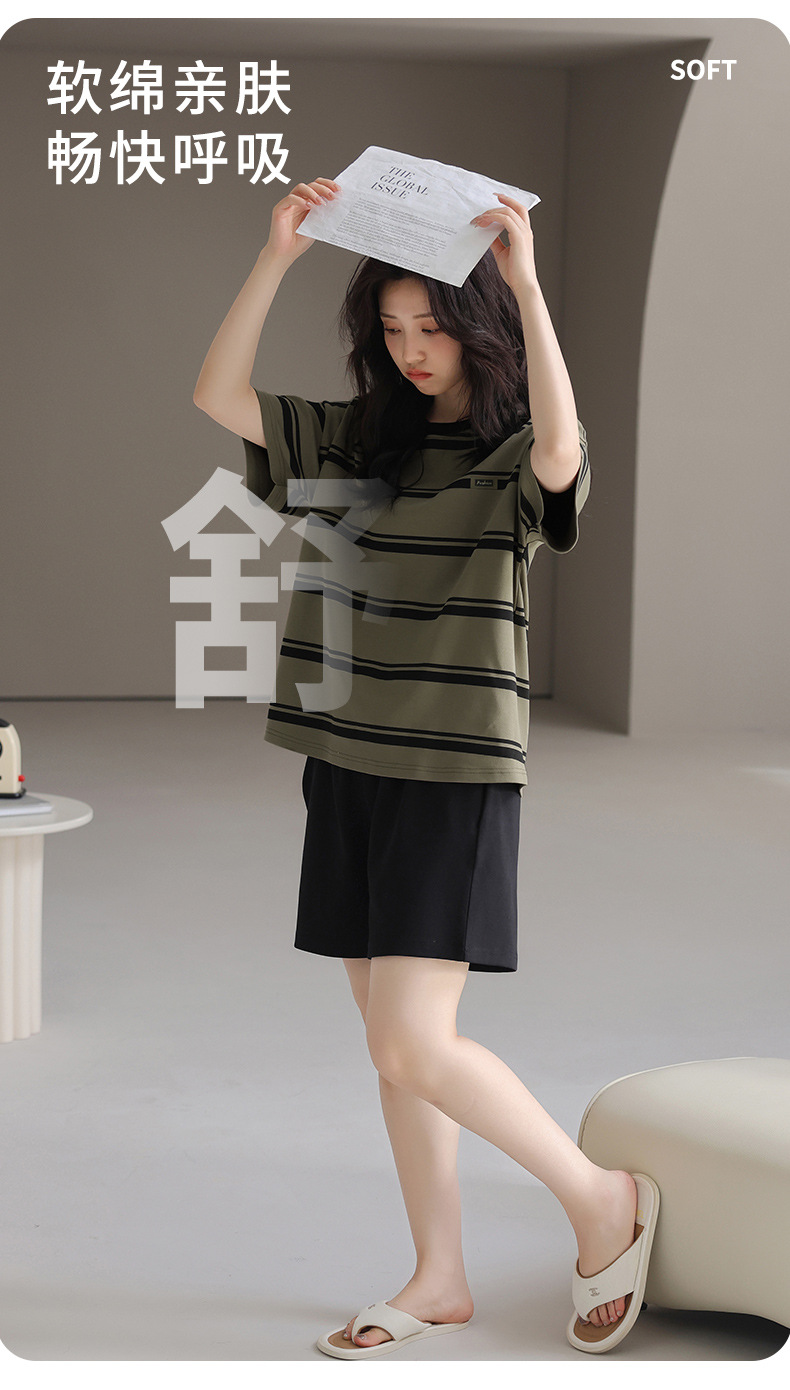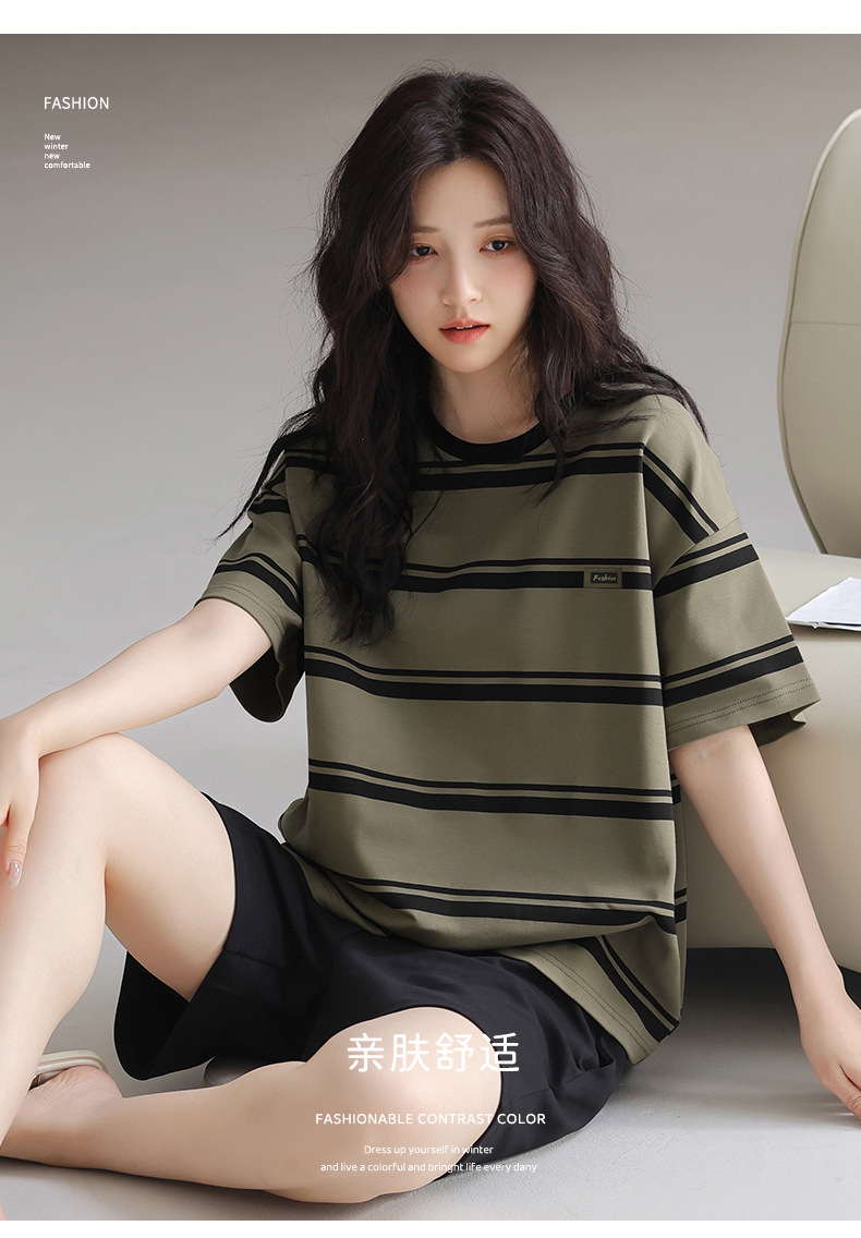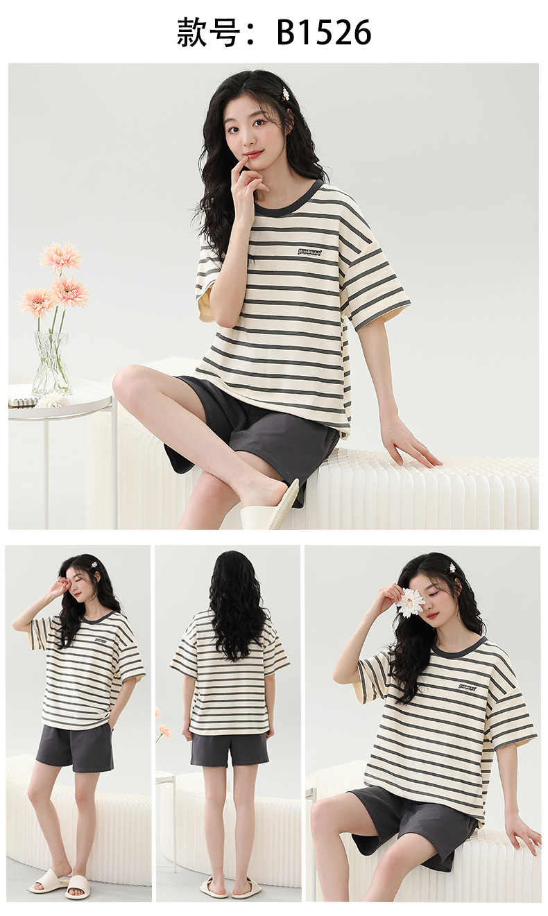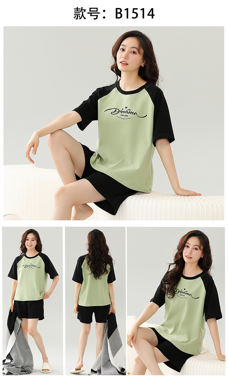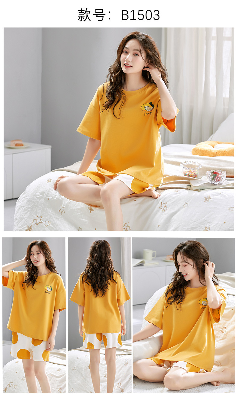 2025 반팔 잠옷 여성의 여름 얇은 가슴 패드 만화 소녀 학생 라운드 넥 여름 홈 의류스토어 가기