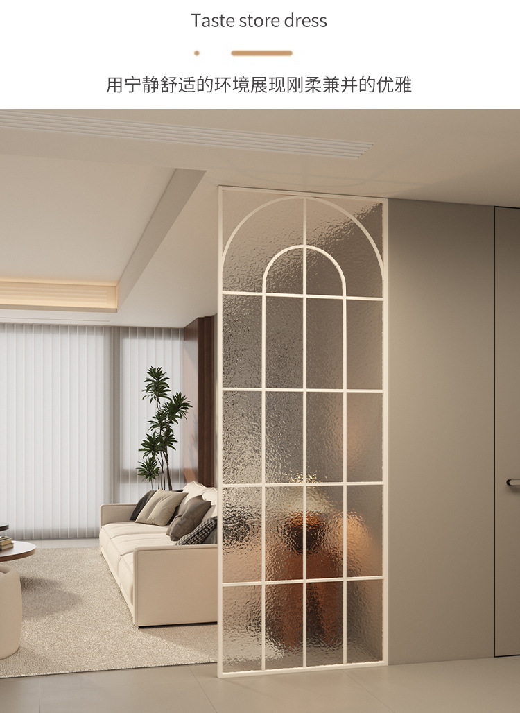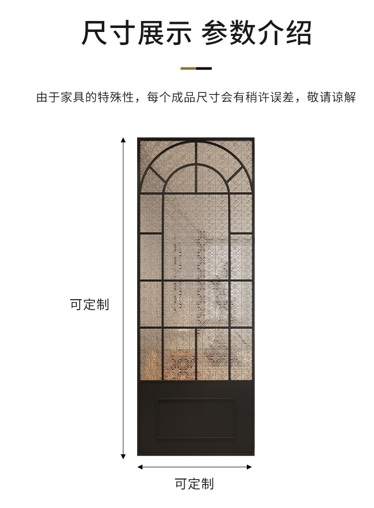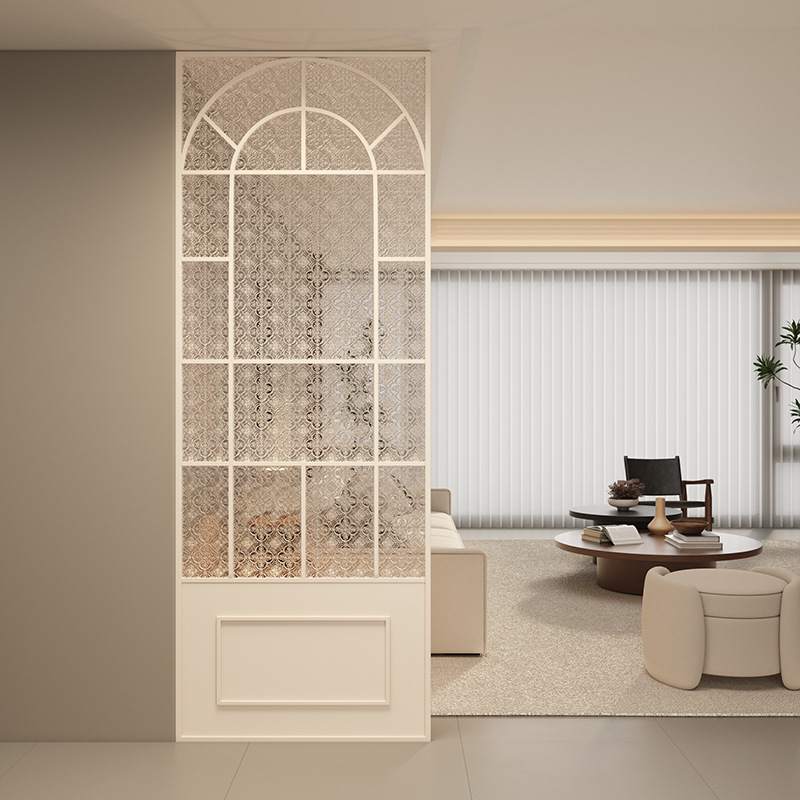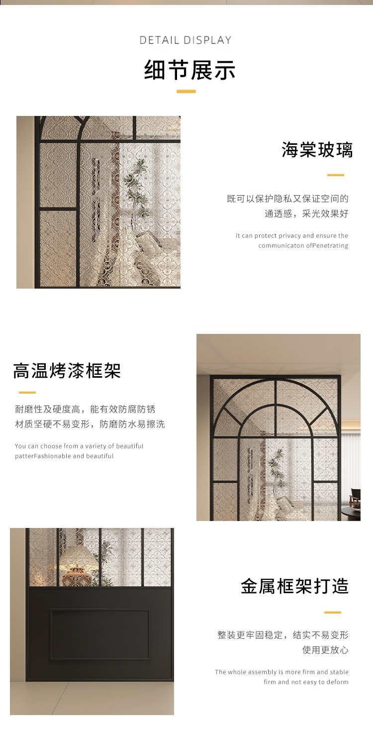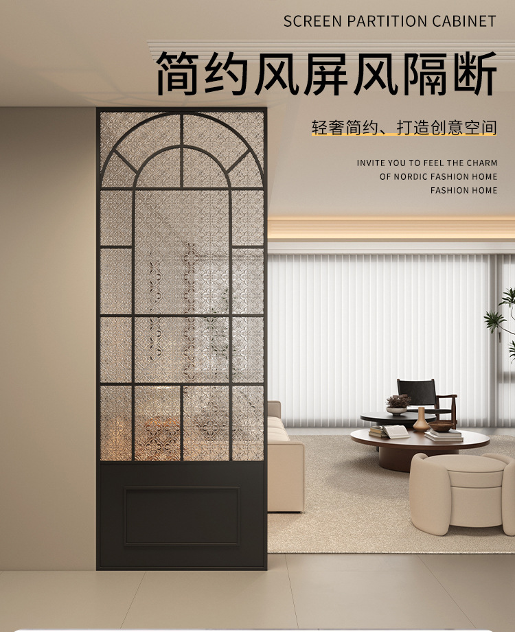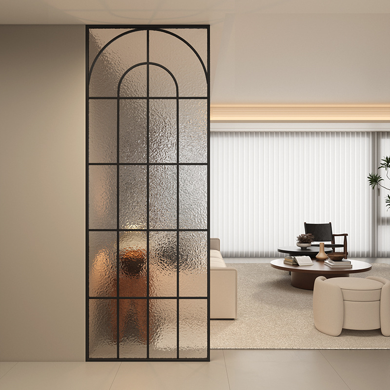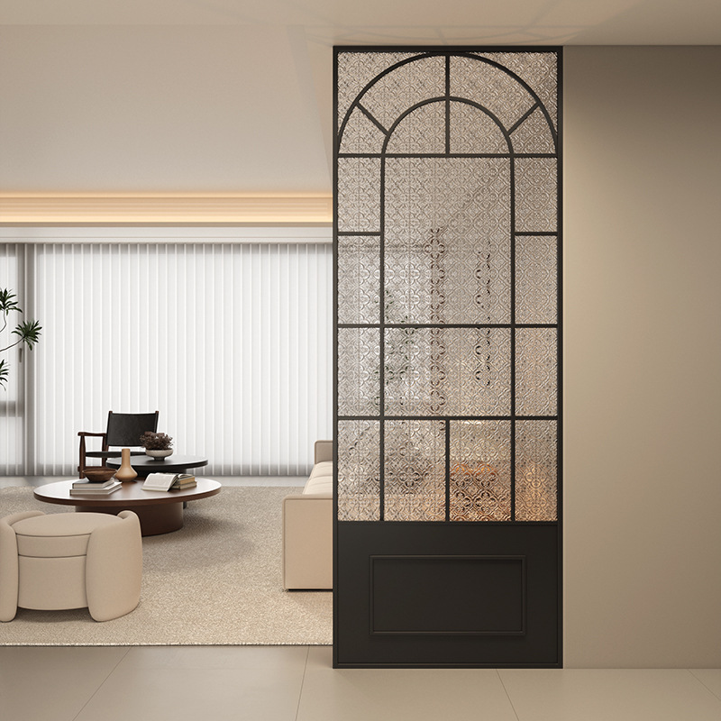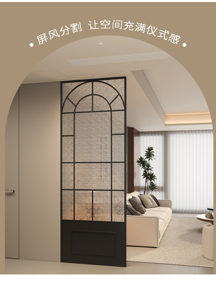 새로운 프랑스 레트로 창홍 유리 파티션 거실 입구 복도 베고니아 물 패턴 스크린 철 아치 장식