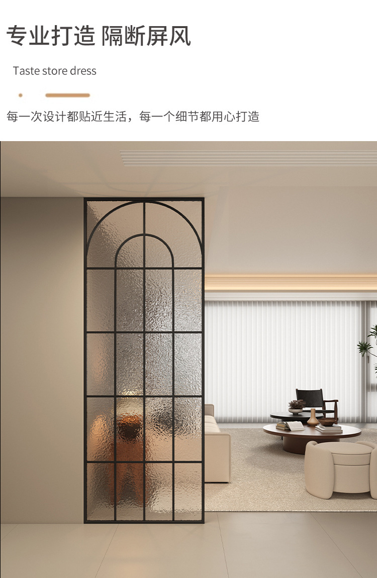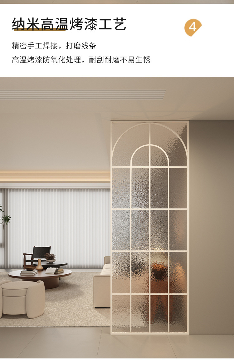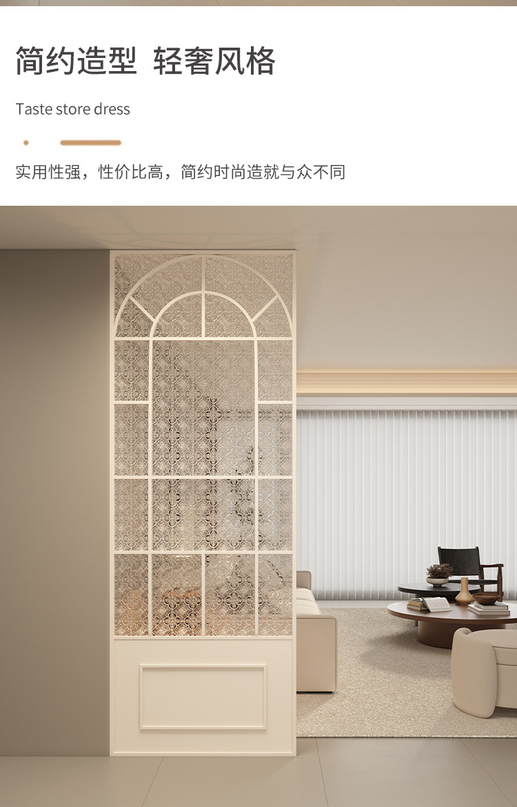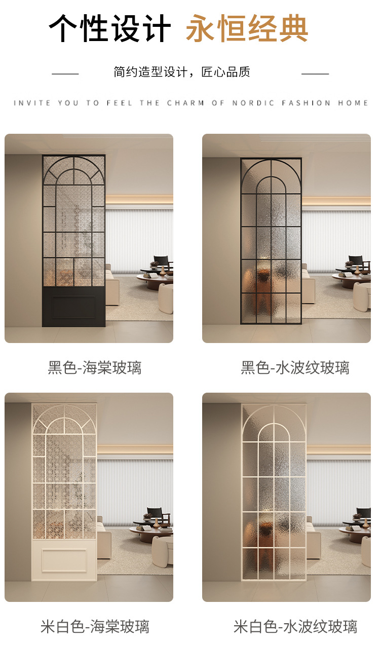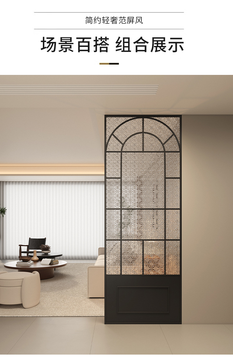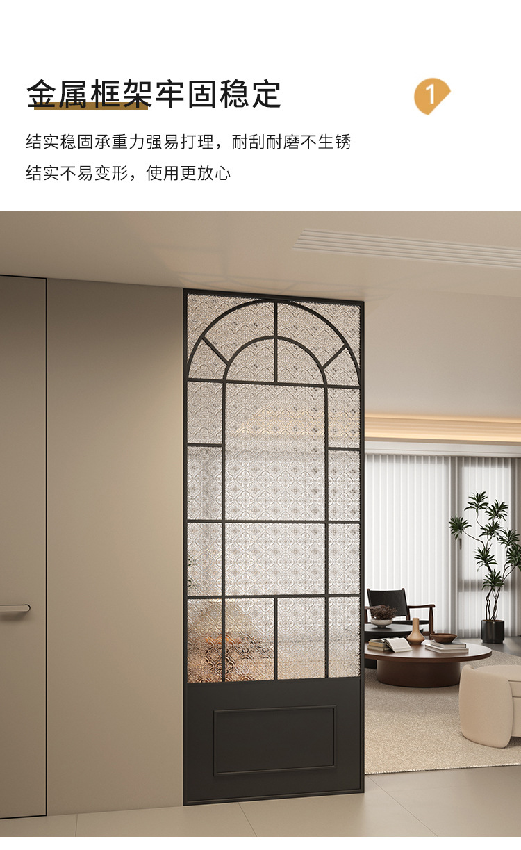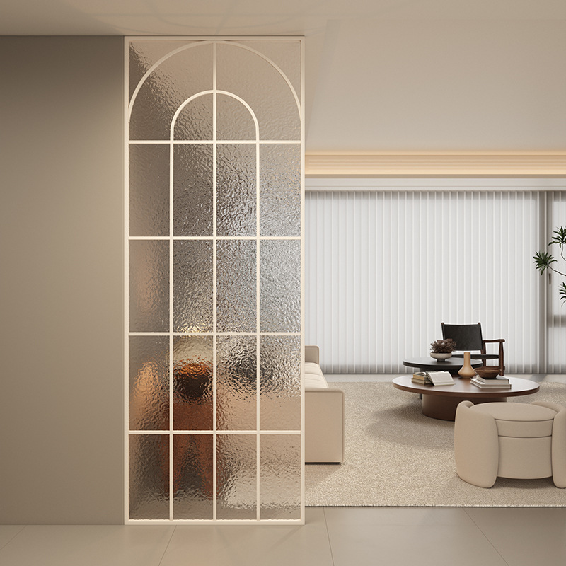 새로운 프랑스 레트로 창홍 유리 파티션 거실 입구 복도 베고니아 물 패턴 스크린 철 아치 장식