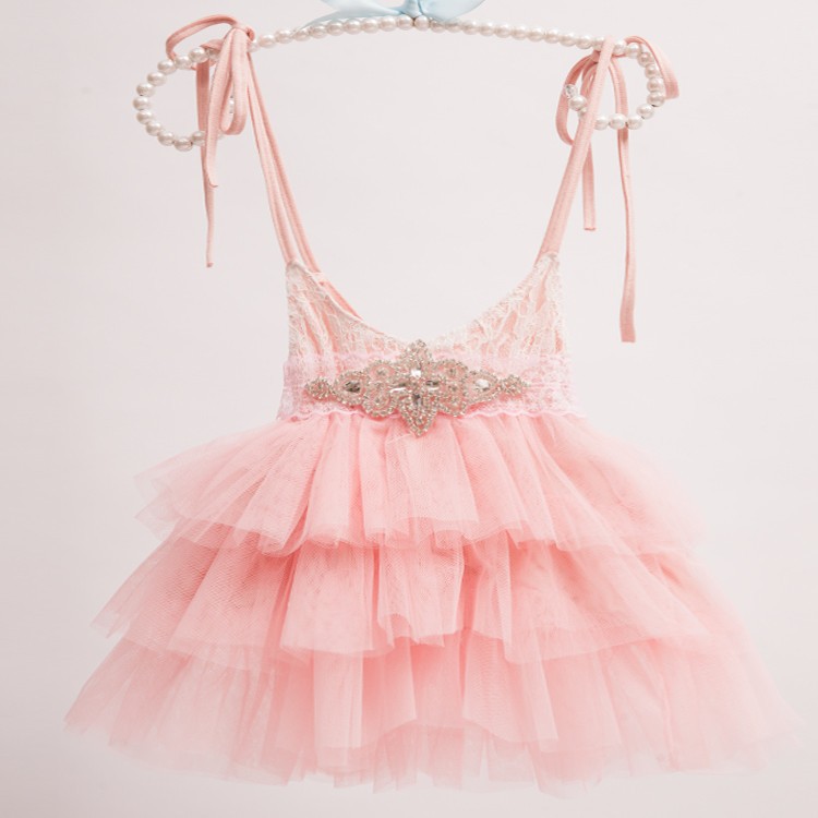 2025 새로운 여자 케이크 공주 원피스 밝은 다이아몬드 벨트 어린이 원피스 어린이 원피스 메쉬 원피스스토어 가기