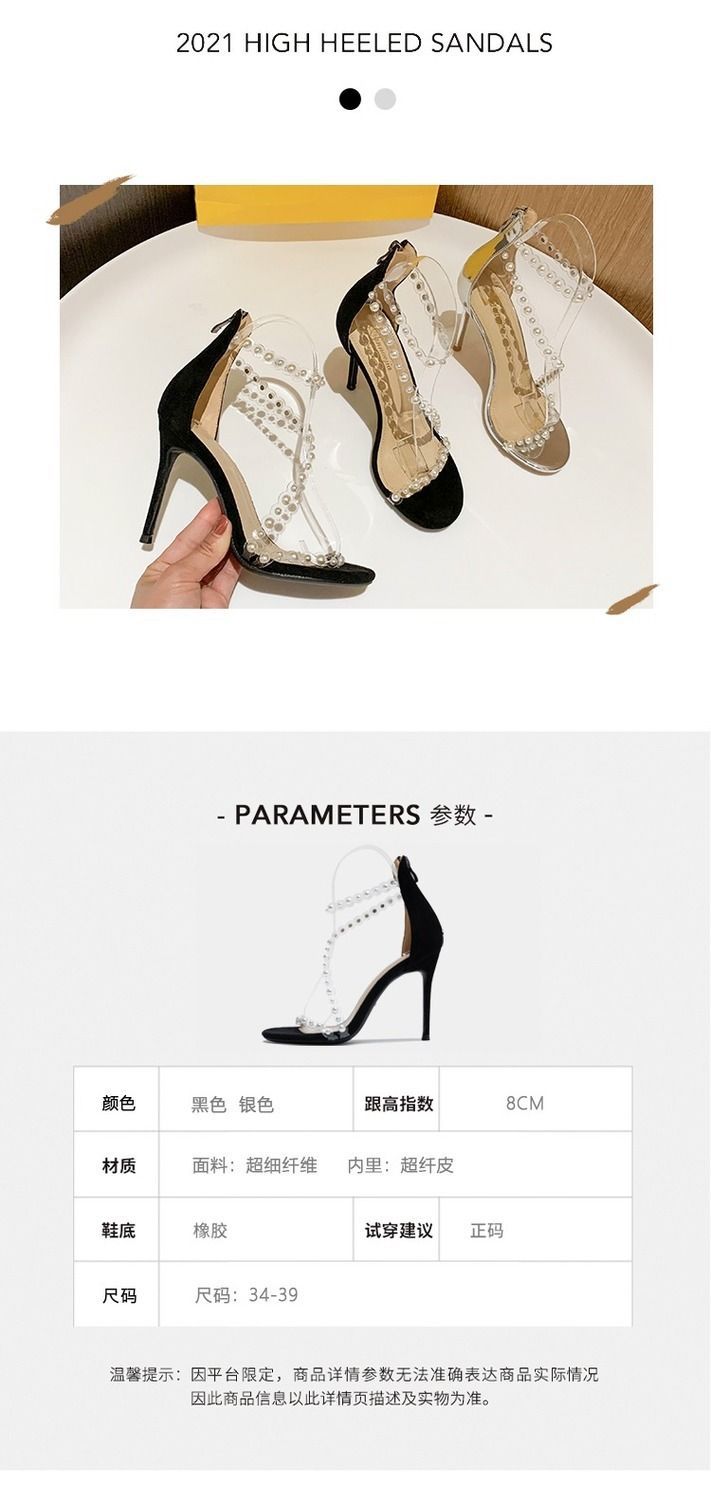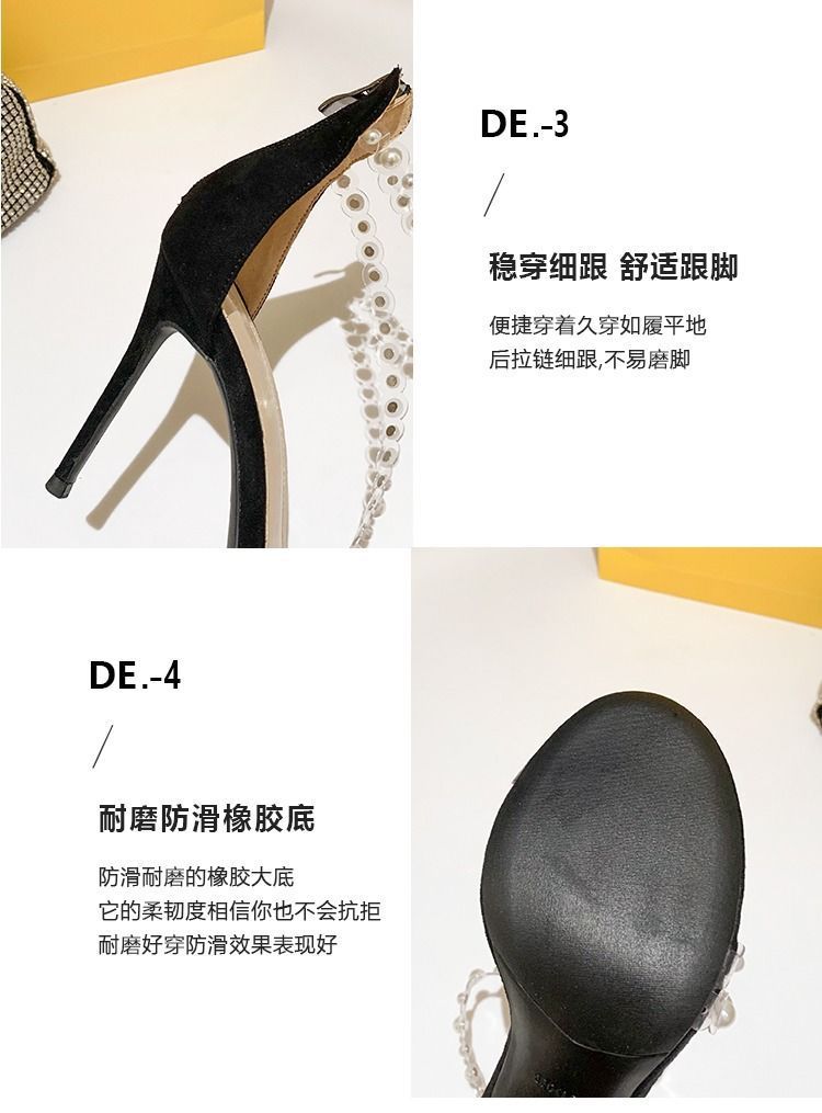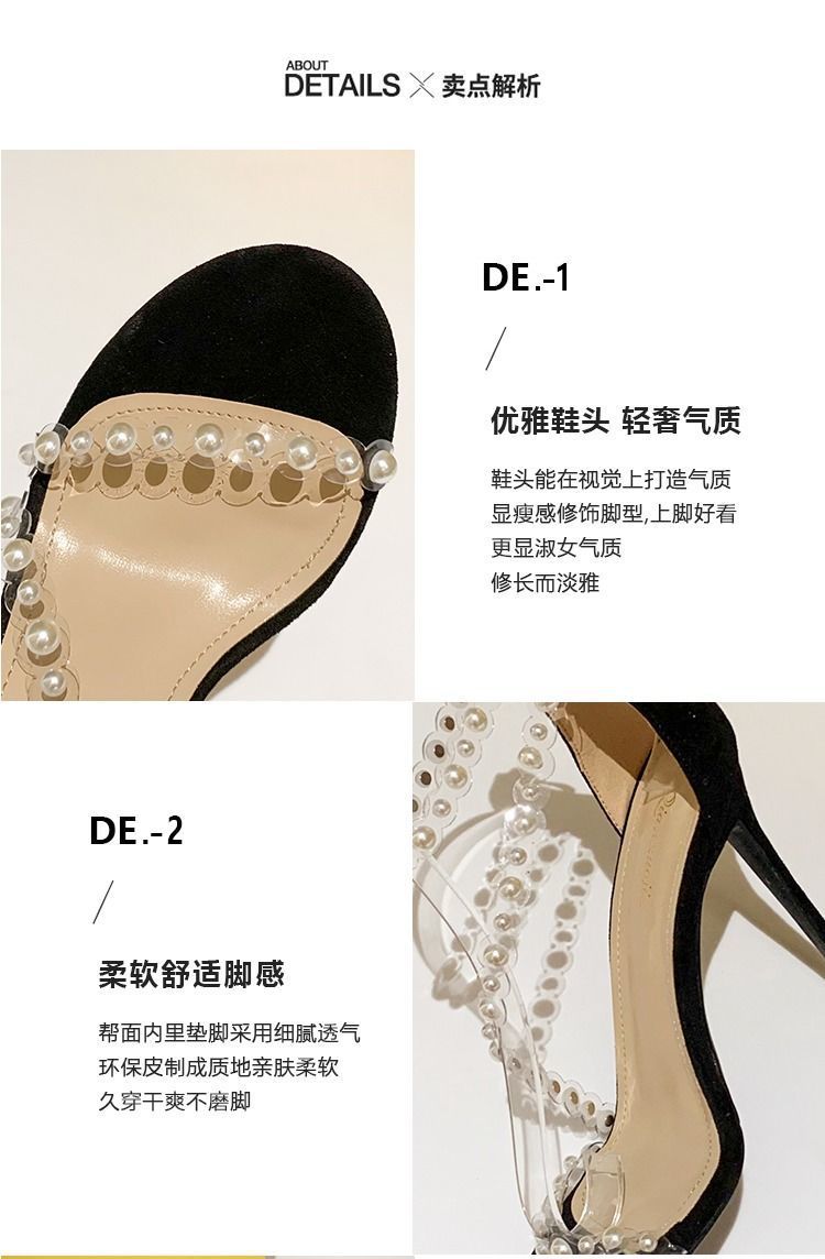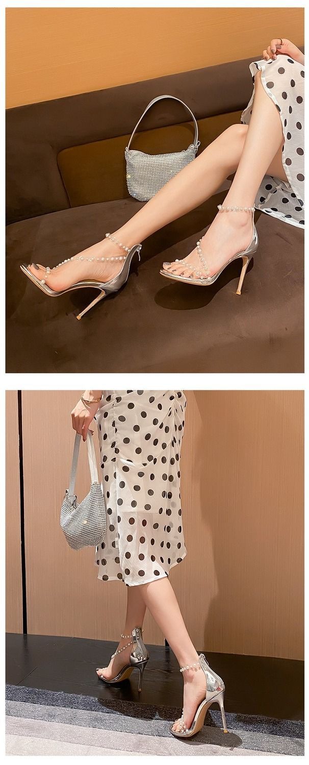 한 캐릭터 얇은 굽 섹시한 샌들 여성의 2022 년 여름 새로운 진주 투명한 오픈 발가락 패션 인터넷 축하 하이힐 신발스토어 가기