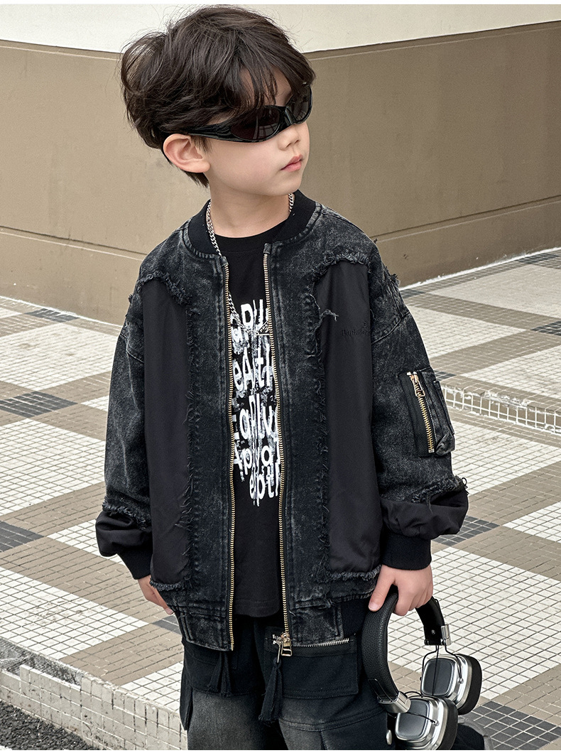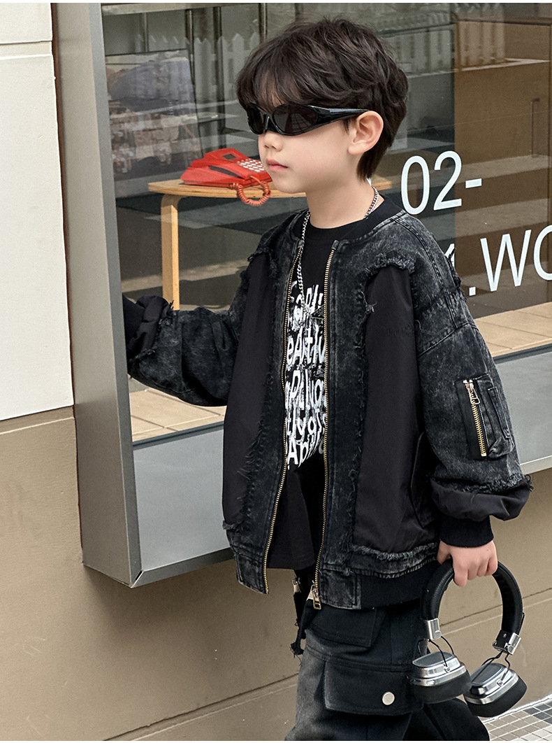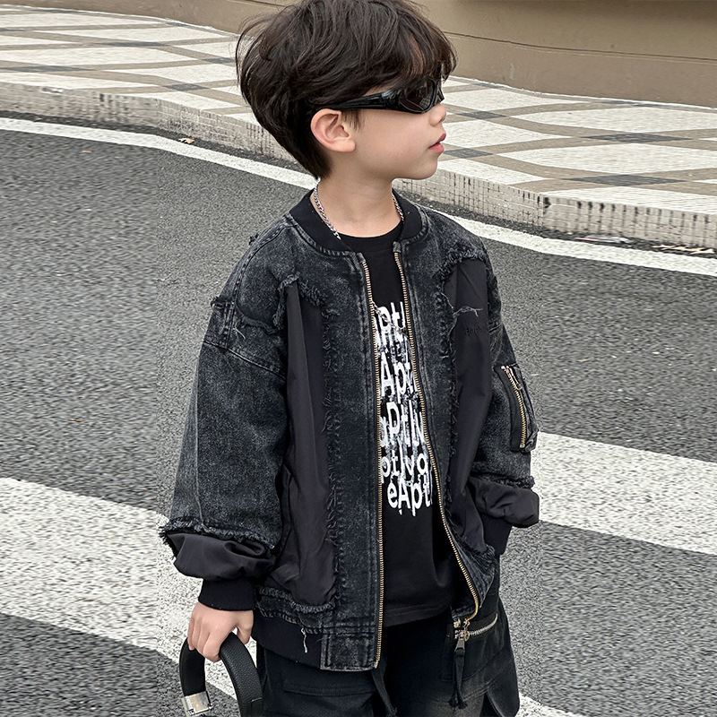 소년 모피 데님 코트 2025 봄 새로운 어린이 한국식 재킷 어린이 지퍼 셔츠스토어 가기