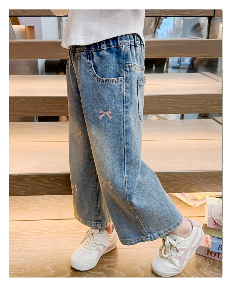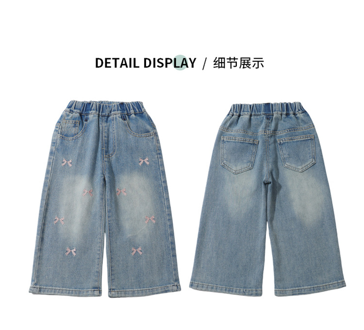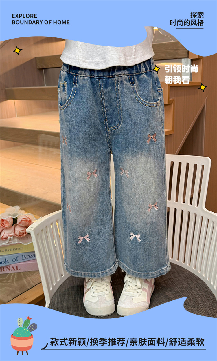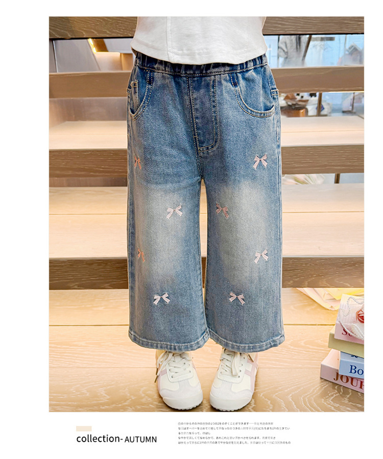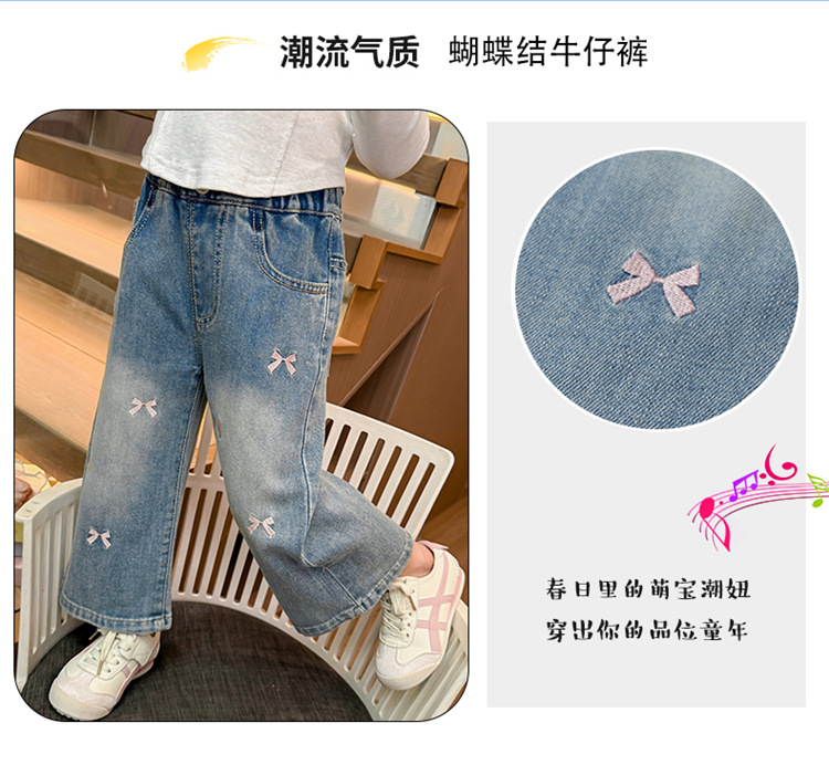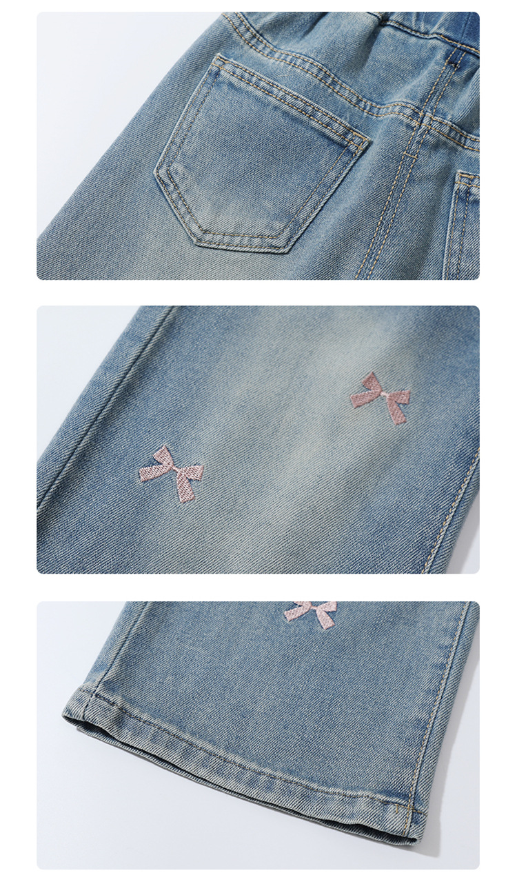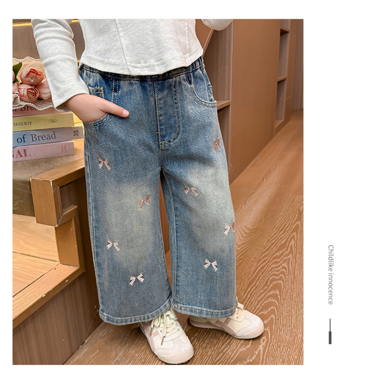 여아 자수 리본 데님 팬츠 봄 가을 아동 한국 스타일 여자아이 캐주얼 스트레이트 팬츠 유아동 긴바지스토어 가기