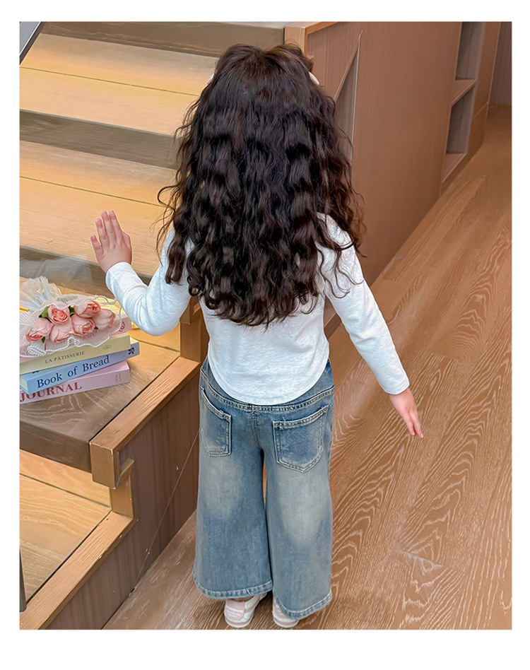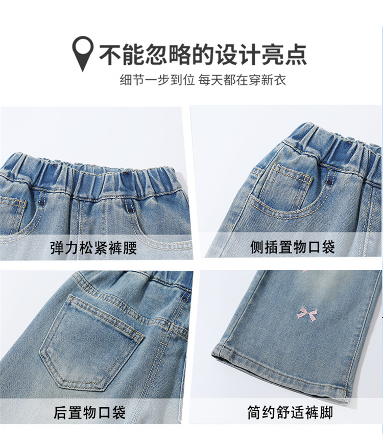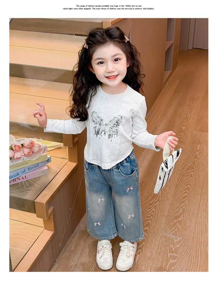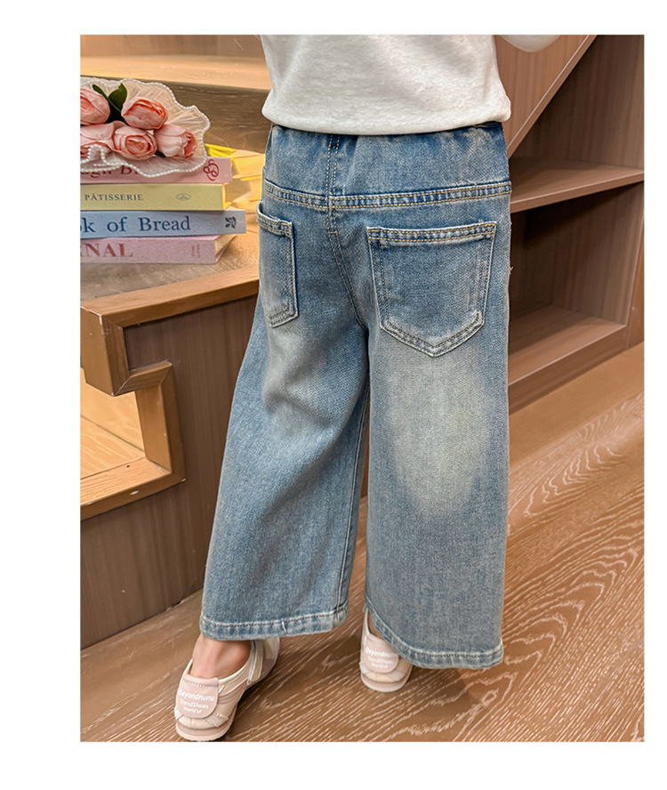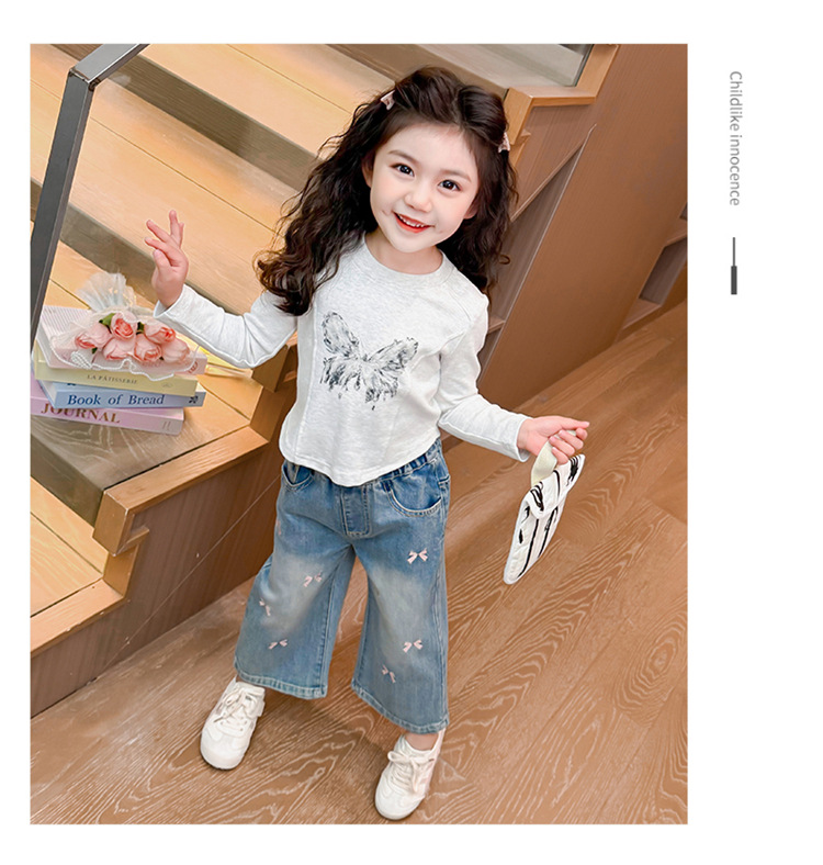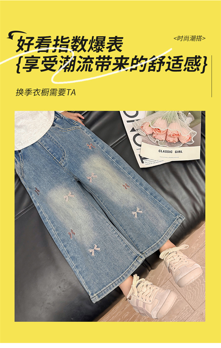 여아 자수 리본 데님 팬츠 봄 가을 아동 한국 스타일 여자아이 캐주얼 스트레이트 팬츠 유아동 긴바지스토어 가기