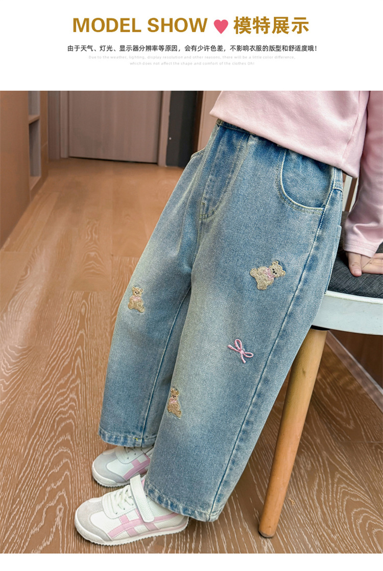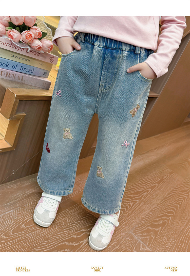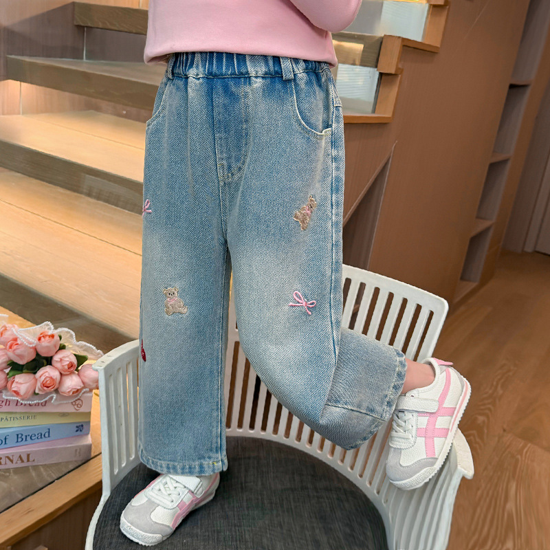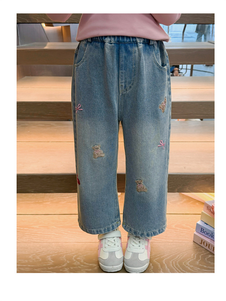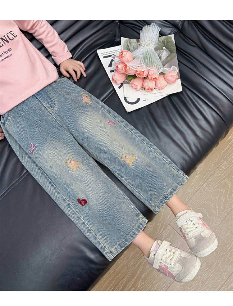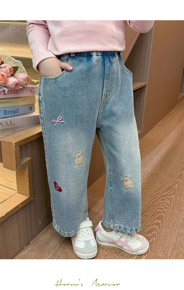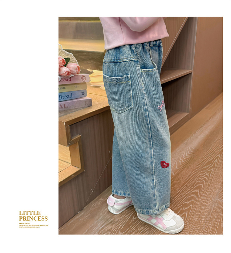 여아 레터링 하트 데님 팬츠 봄 가을 스타일 아동 한국 패션 여아 와이드 팬츠 중소형 아동용 긴바지 트렌디스토어 가기