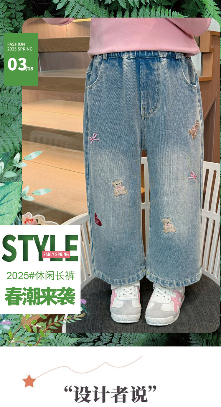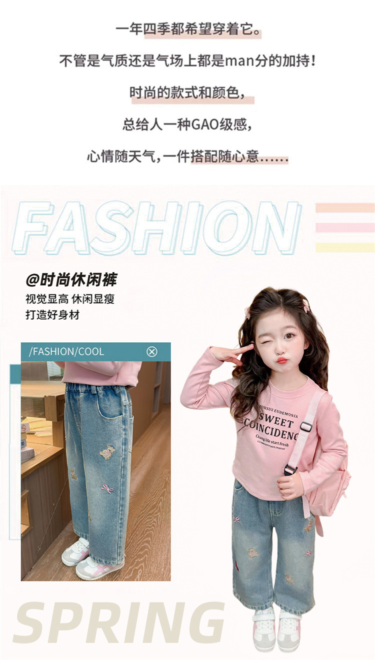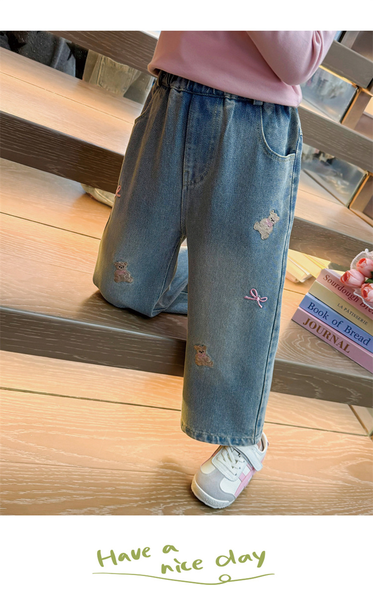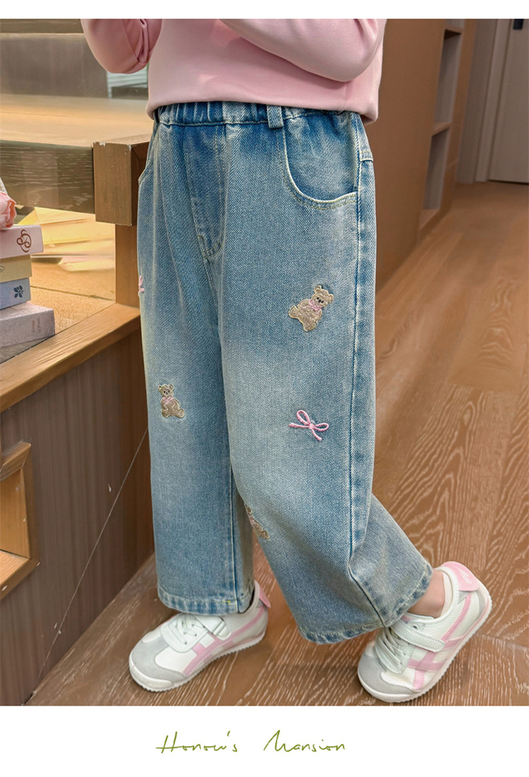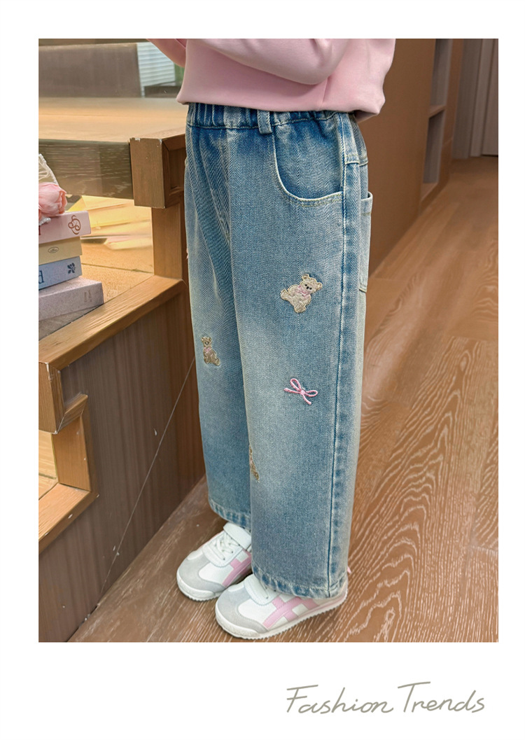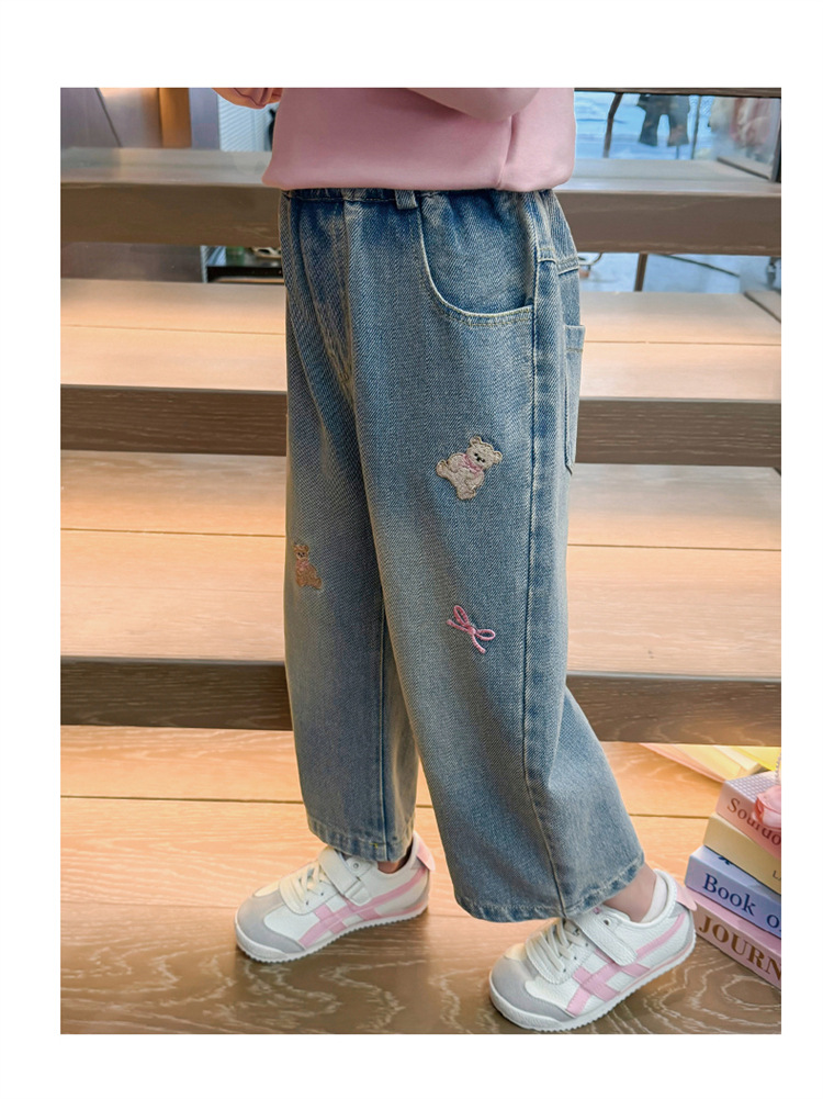 여아 레터링 하트 데님 팬츠 봄 가을 스타일 아동 한국 패션 여아 와이드 팬츠 중소형 아동용 긴바지 트렌디스토어 가기