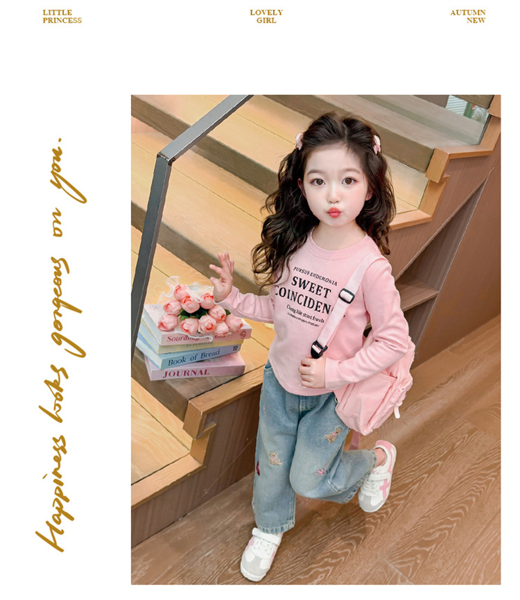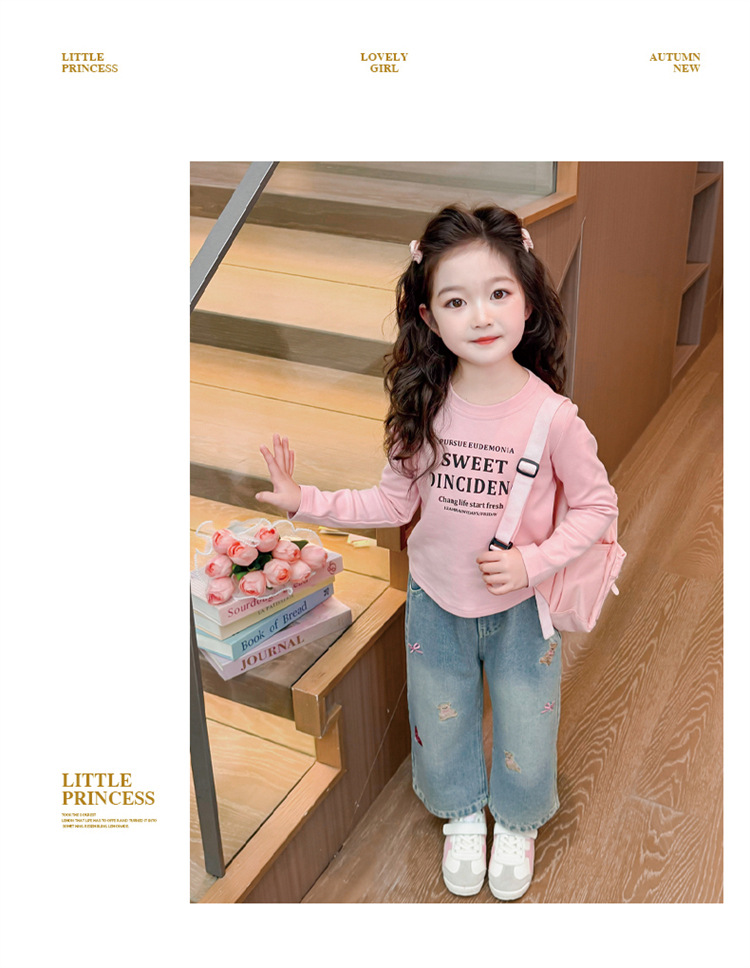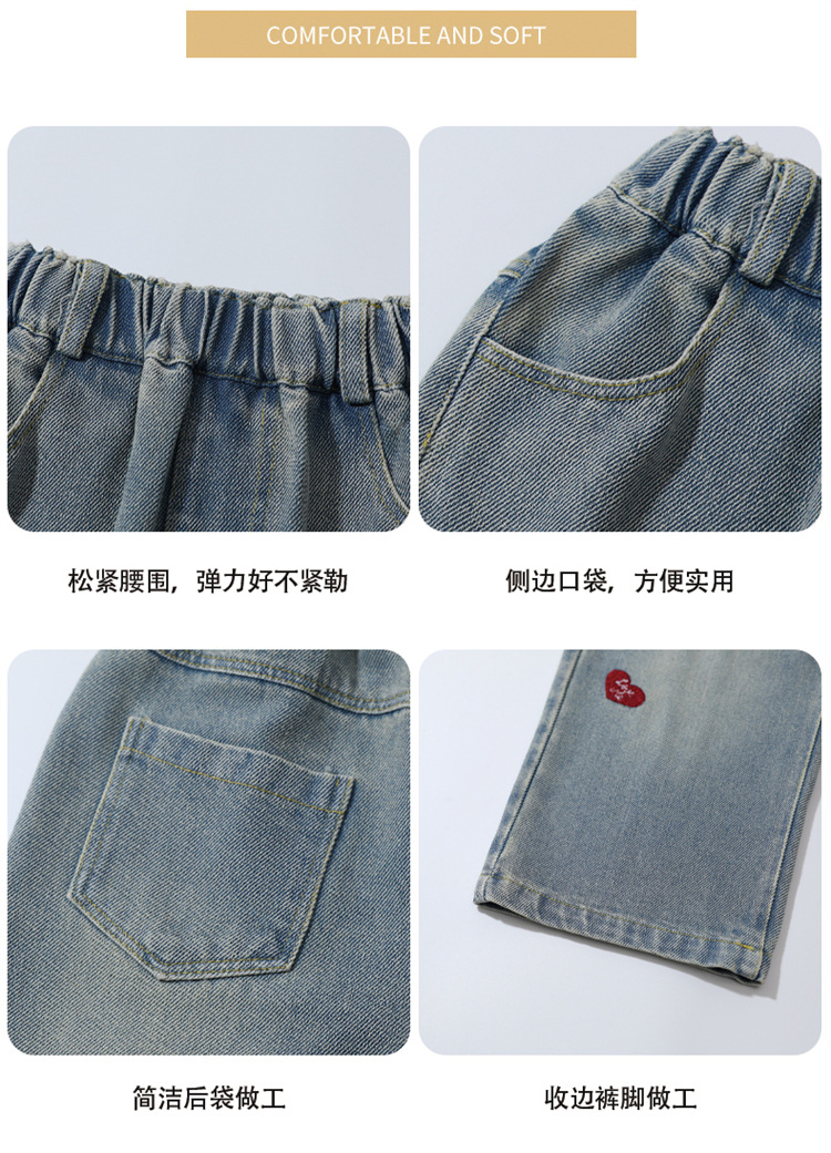 여아 레터링 하트 데님 팬츠 봄 가을 스타일 아동 한국 패션 여아 와이드 팬츠 중소형 아동용 긴바지 트렌디