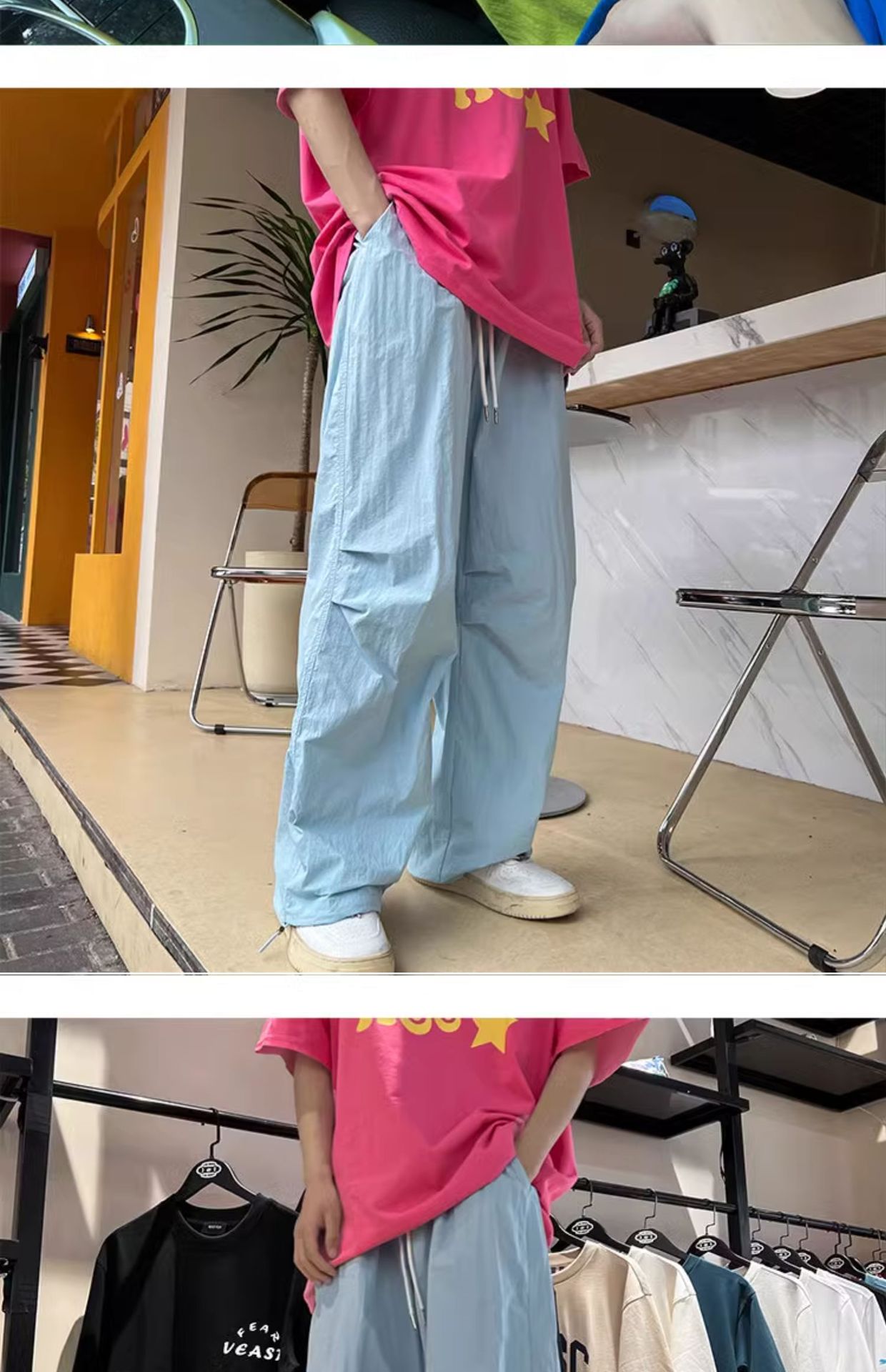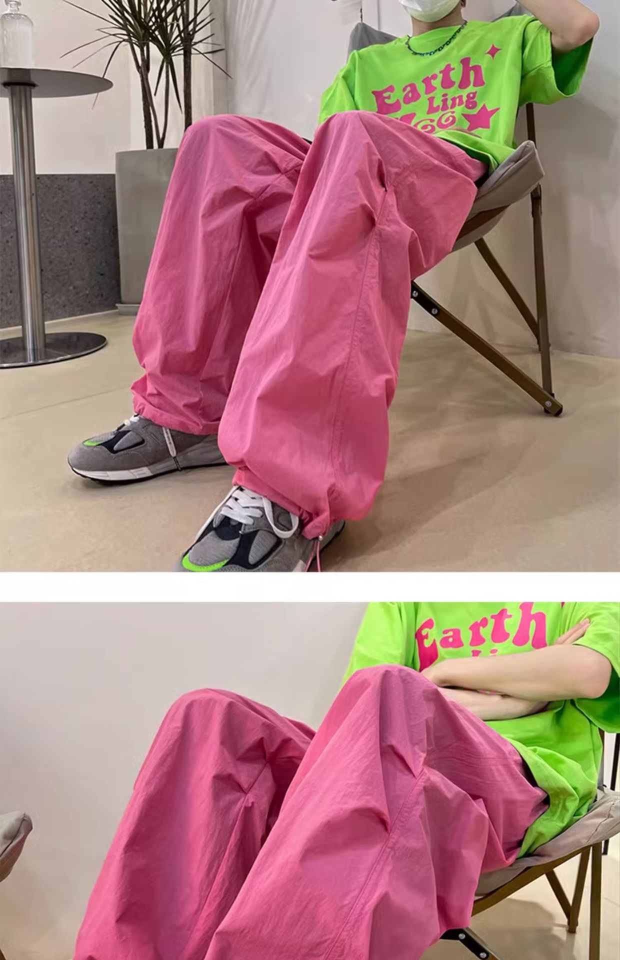 국경 간 빠른 건조 스포츠 바지 여성 여름 도파민 선 스크린 등산 와이드 레그 작업복 높은 허리 캐주얼 기능성 낙하산 바지스토어 가기