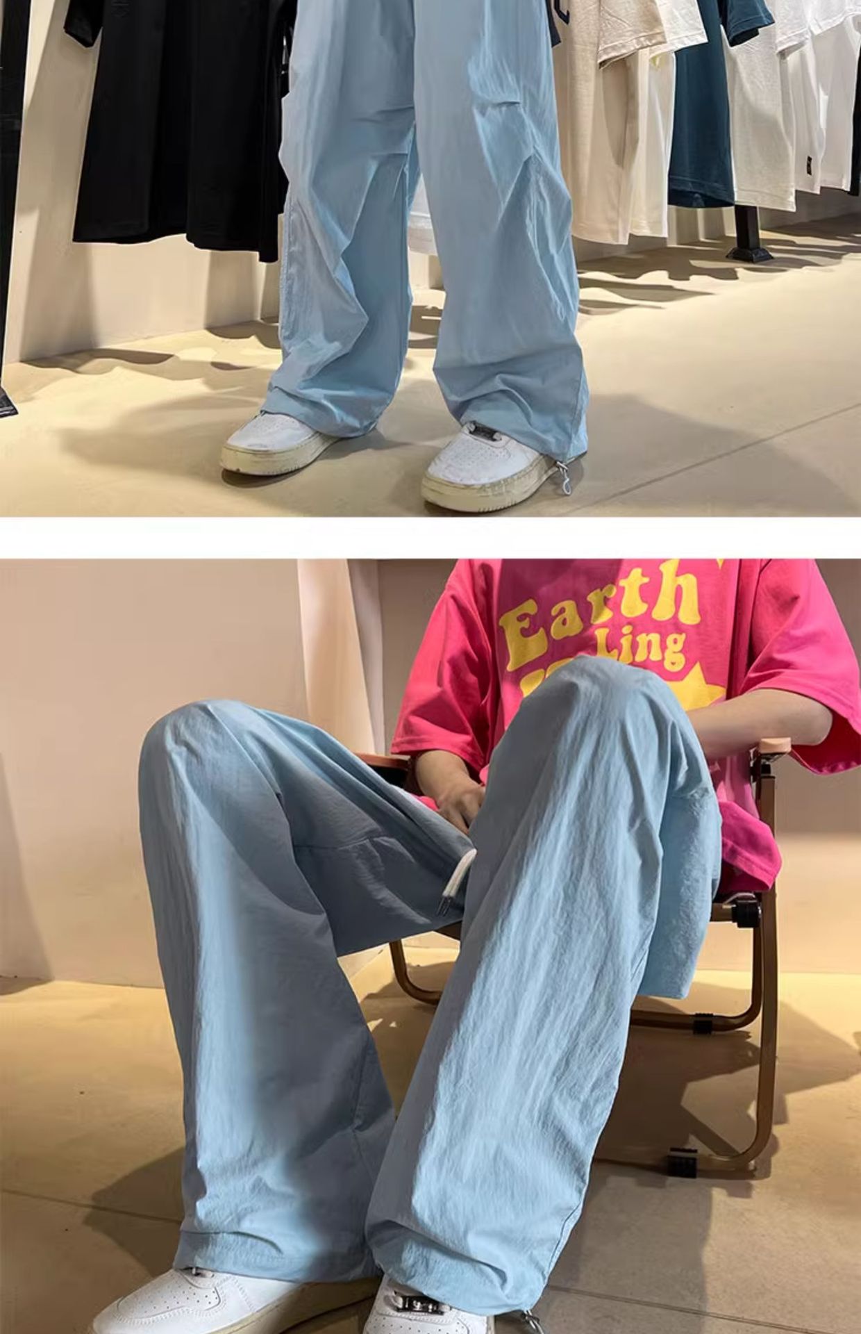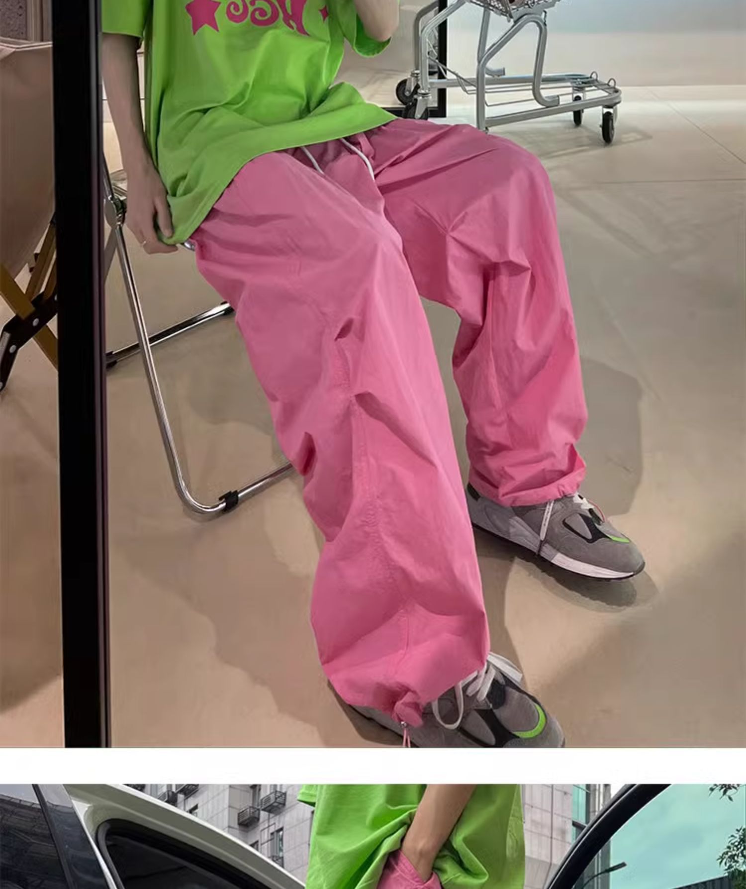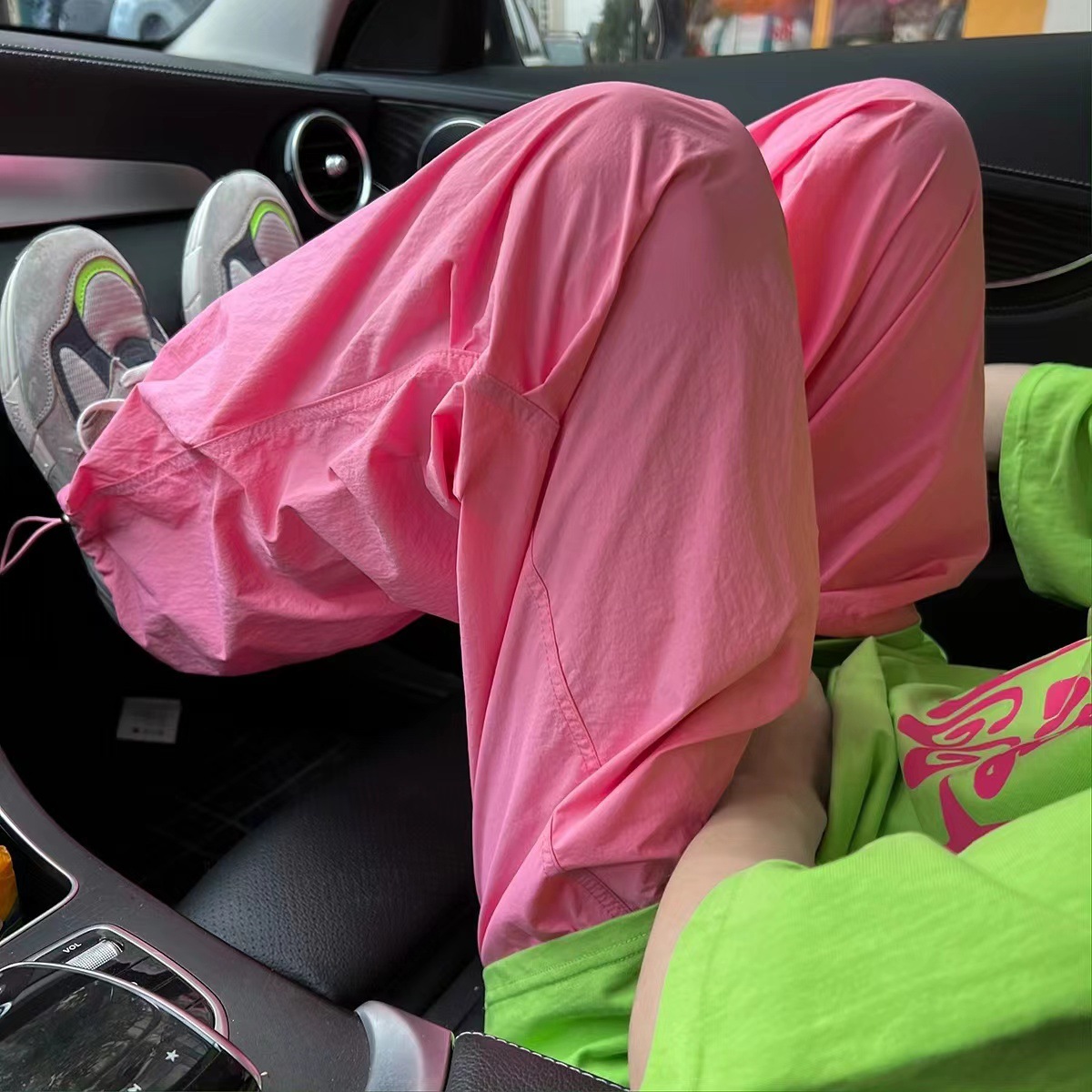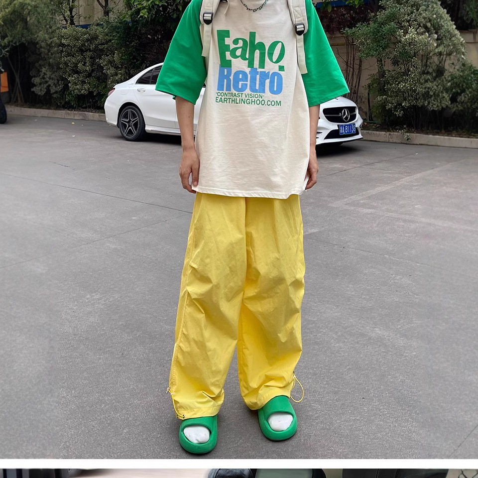 국경 간 빠른 건조 스포츠 바지 여성 여름 도파민 선 스크린 등산 와이드 레그 작업복 높은 허리 캐주얼 기능성 낙하산 바지