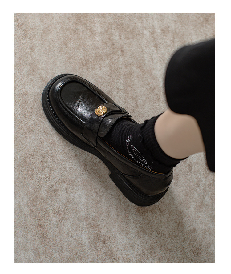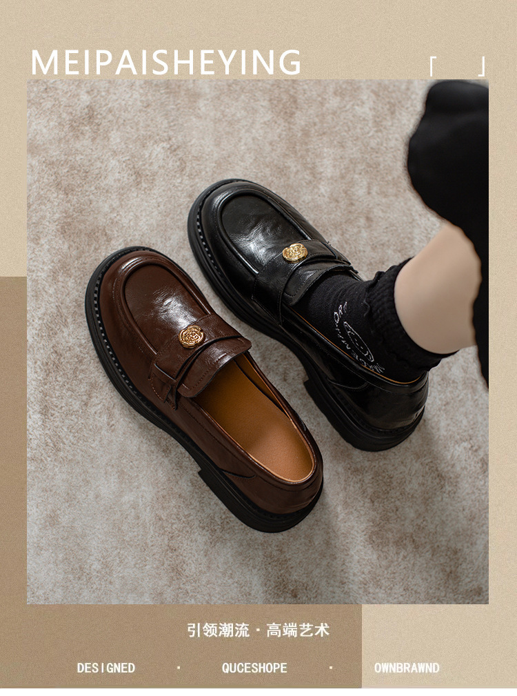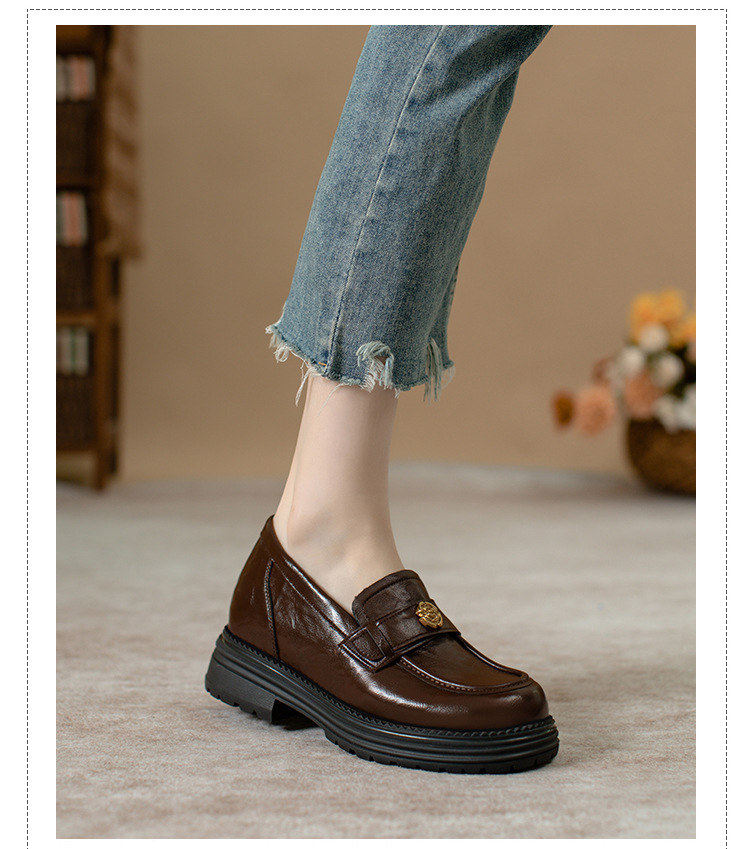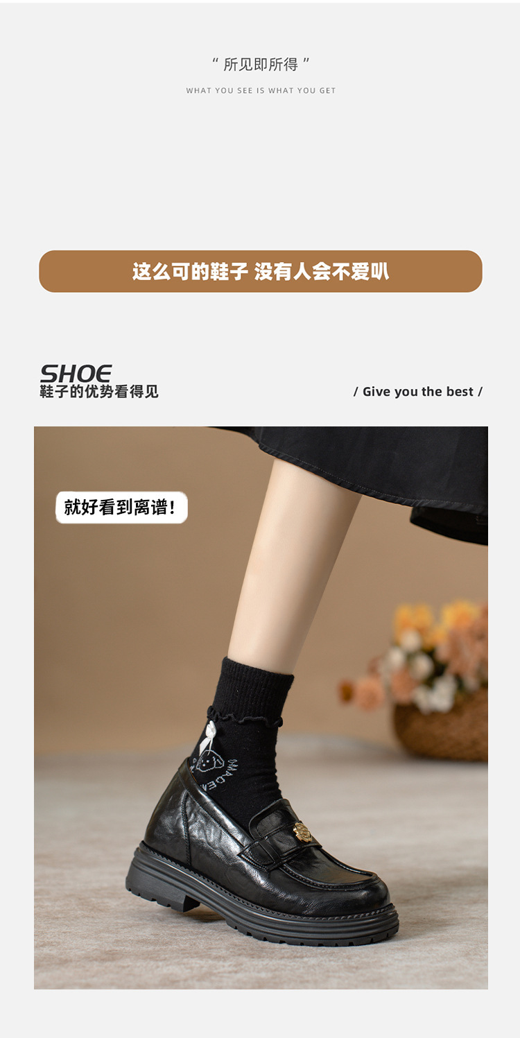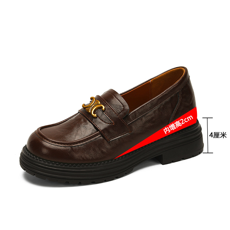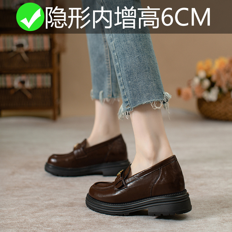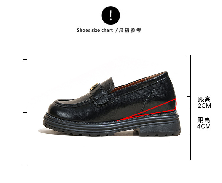 정품 가죽 혜주 황금 동백 높이 6CM 로퍼 여성 두꺼운 바닥 스몰 사이즈 가죽 신발 사무실 신발 크기 32