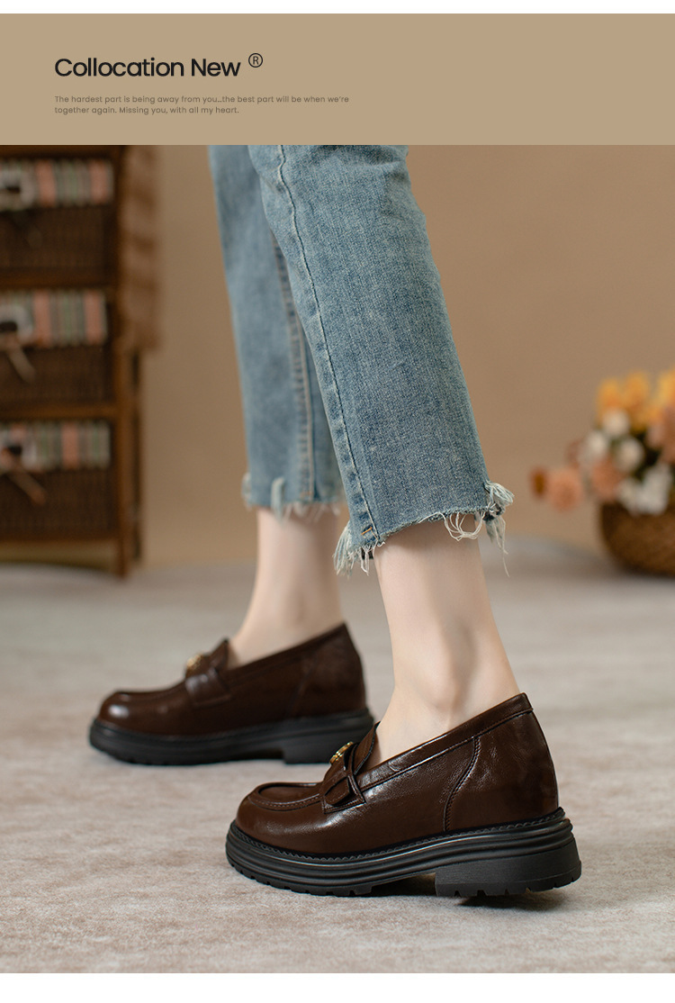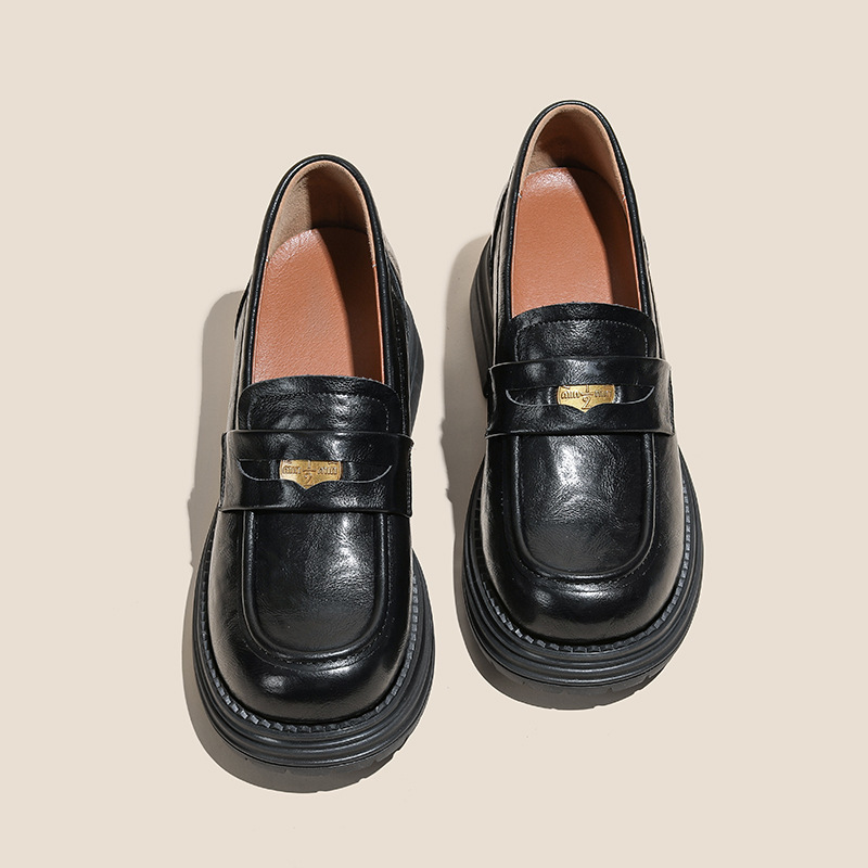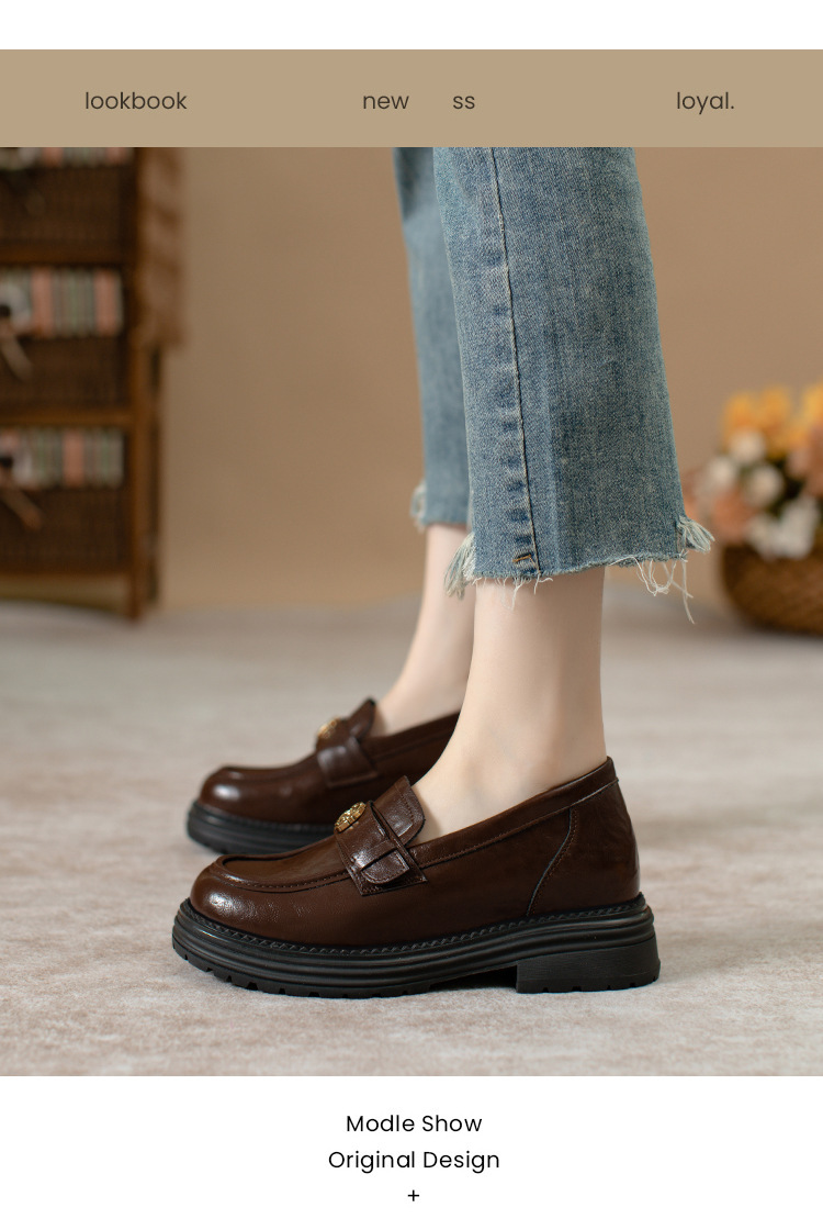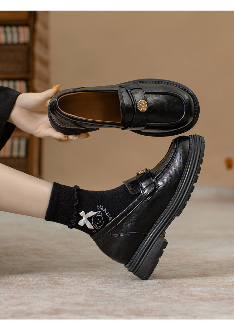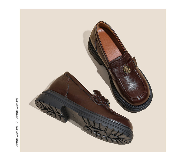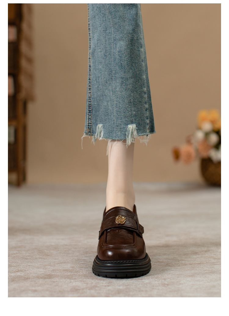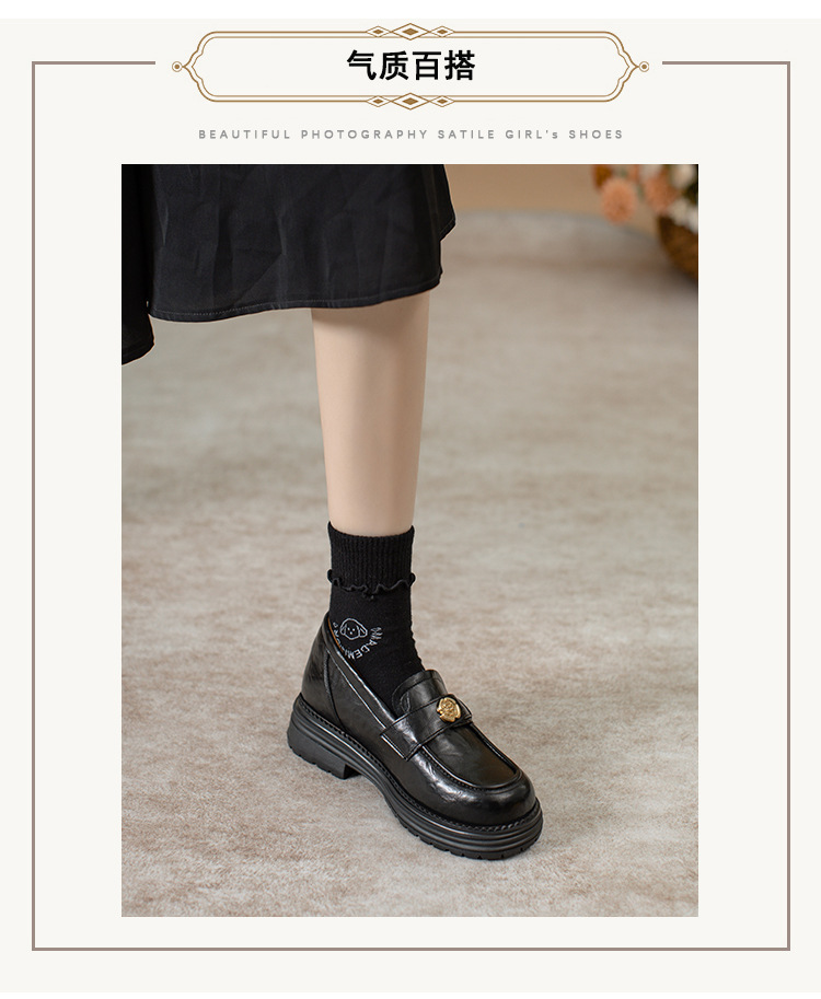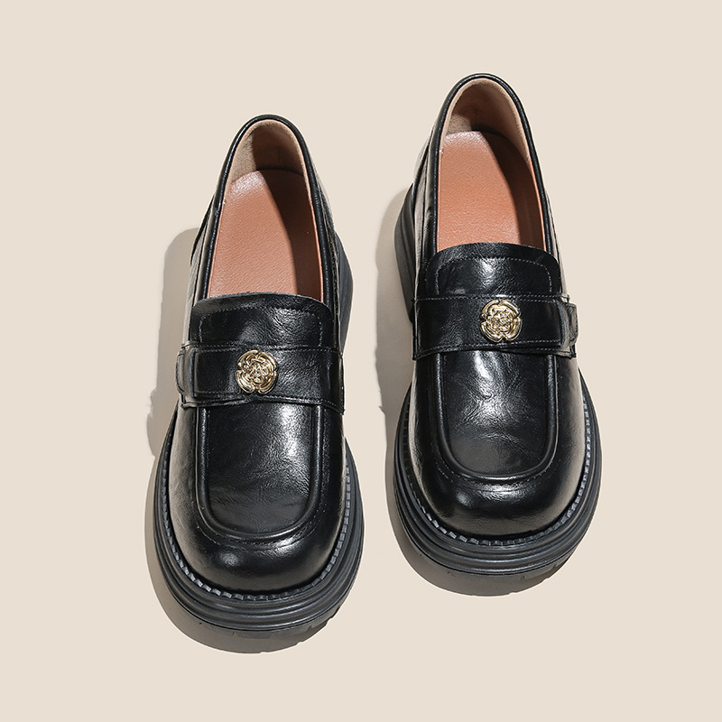 정품 가죽 혜주 황금 동백 높이 6CM 로퍼 여성 두꺼운 바닥 스몰 사이즈 가죽 신발 사무실 신발 크기 32