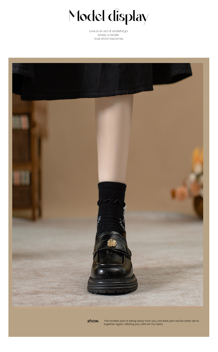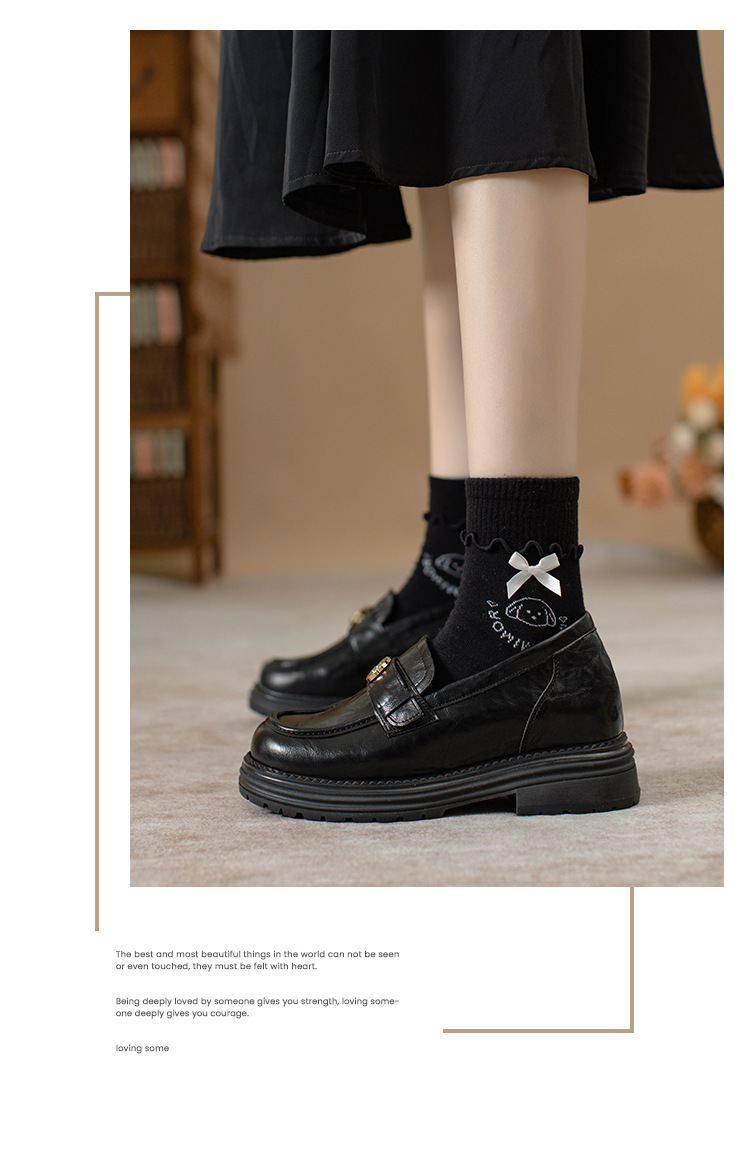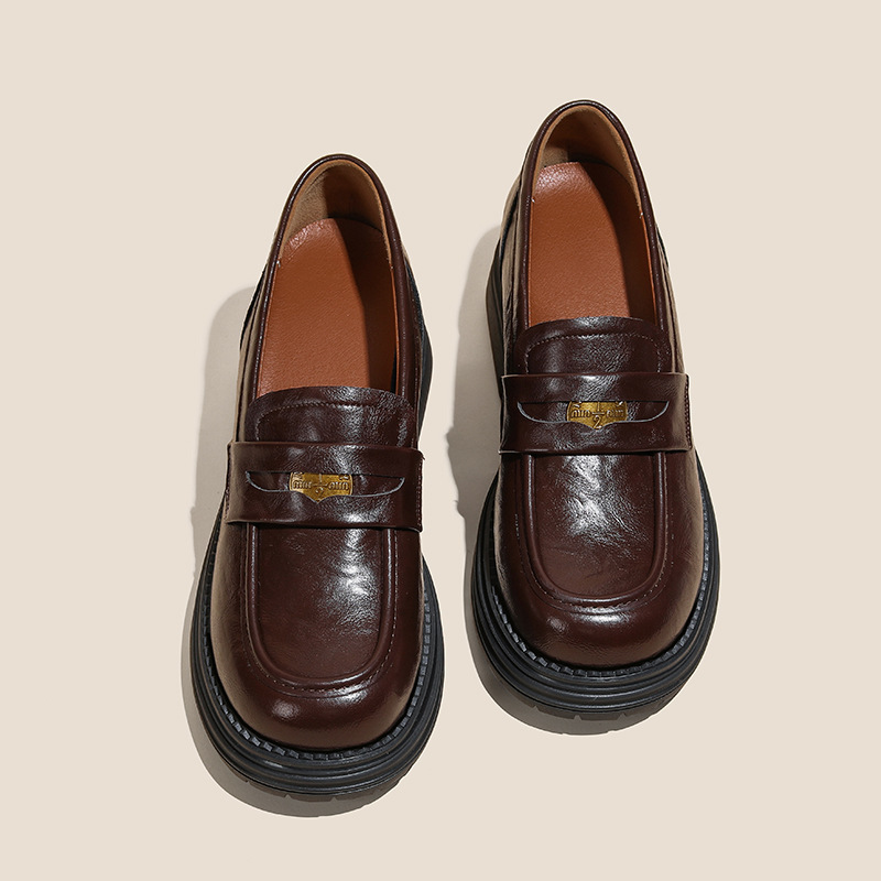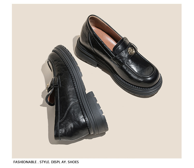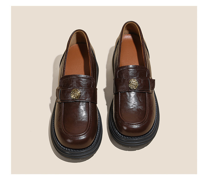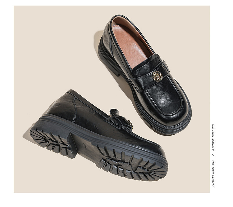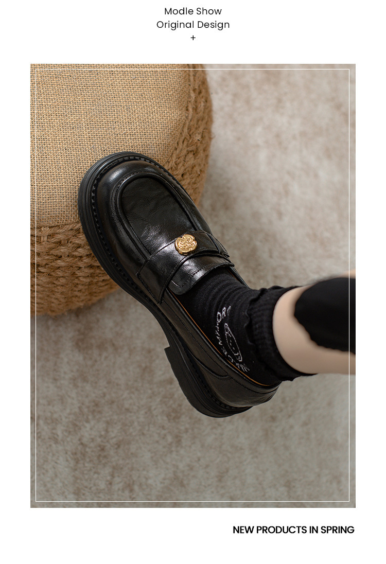 정품 가죽 혜주 황금 동백 높이 6CM 로퍼 여성 두꺼운 바닥 스몰 사이즈 가죽 신발 사무실 신발 크기 32