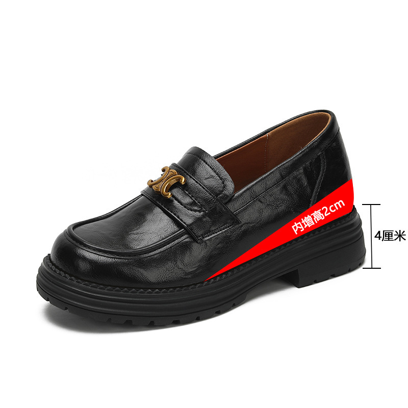 정품 가죽 혜주 황금 동백 높이 6CM 로퍼 여성 두꺼운 바닥 스몰 사이즈 가죽 신발 사무실 신발 크기 32스토어 가기