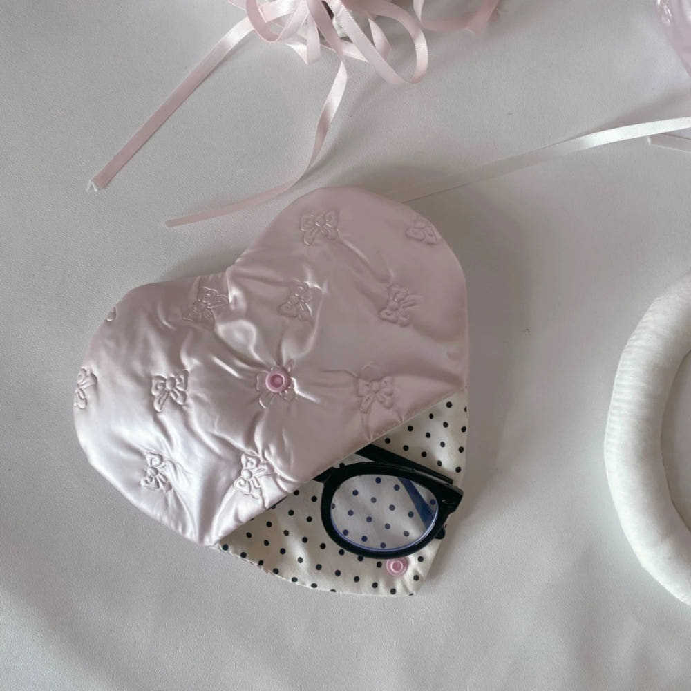 한국 러브걸 PU 리본 엠보싱 동전지갑 외출용 휴대용 잡화 수납 여성용 핸드백