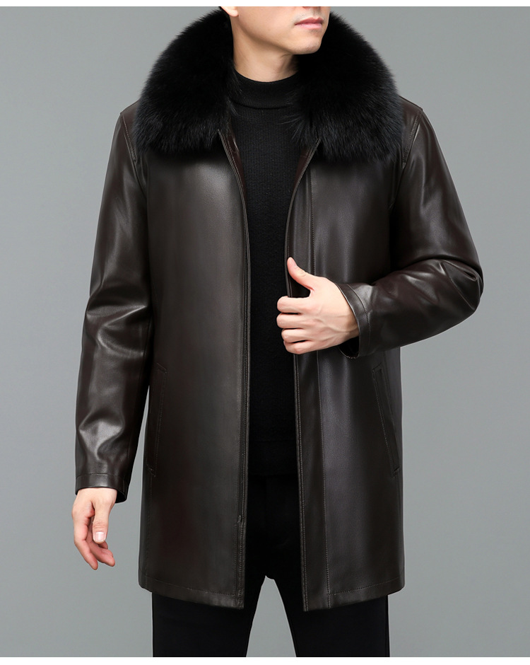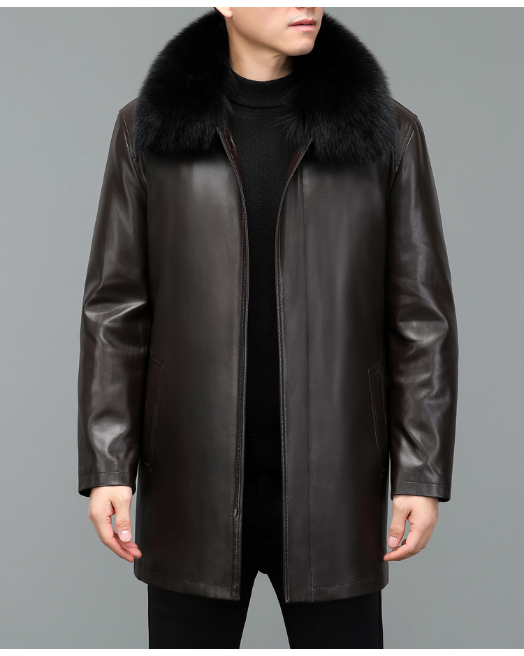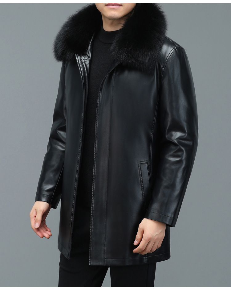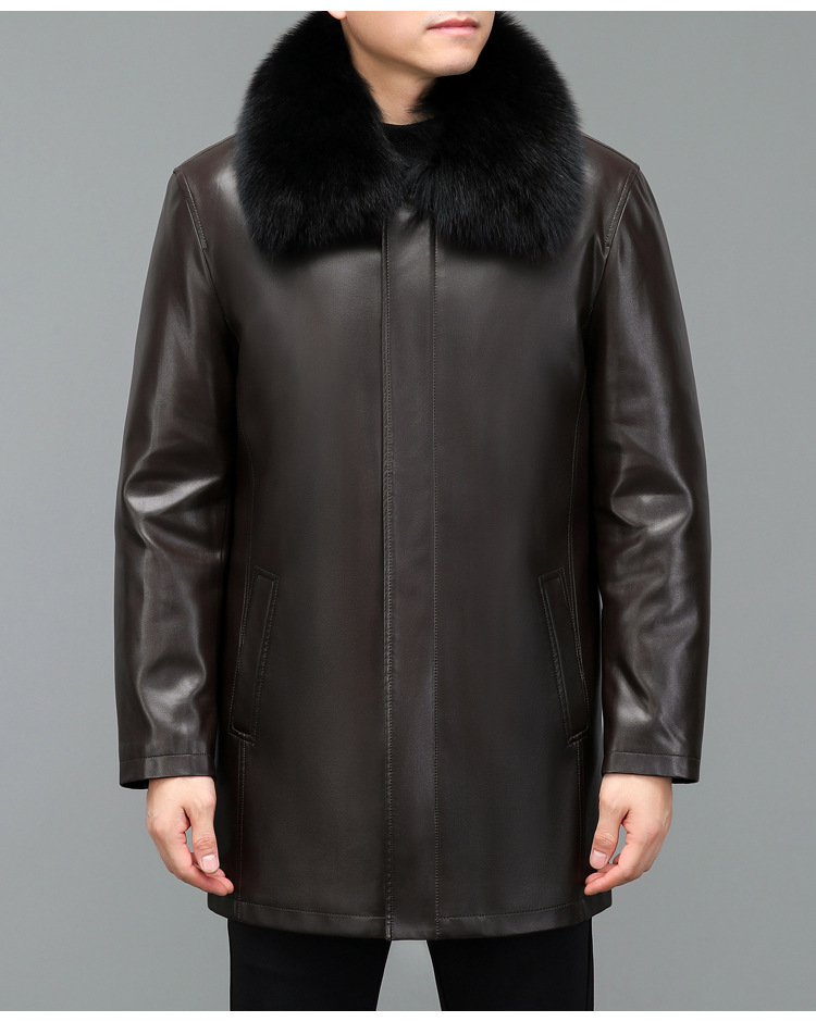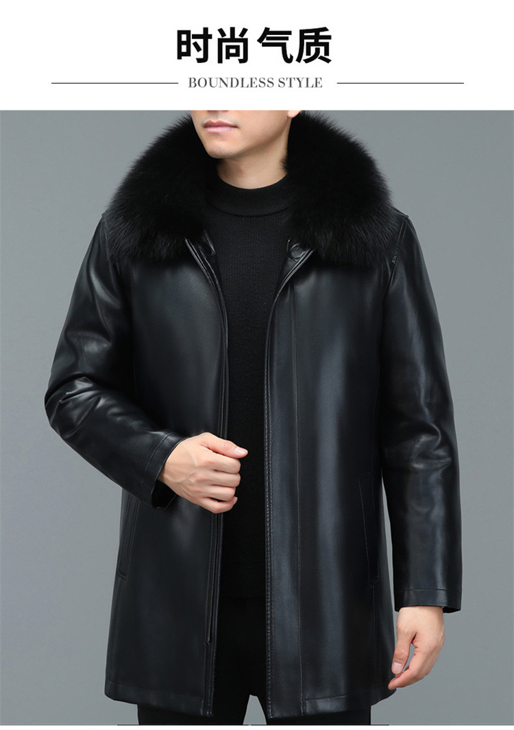 겨울 증오 가죽 남성 다운 재킷 중간 길이 폭스 모피 칼라 아빠의 가죽 재킷 캐주얼 따뜻한 재킷스토어 가기