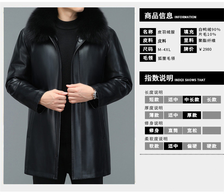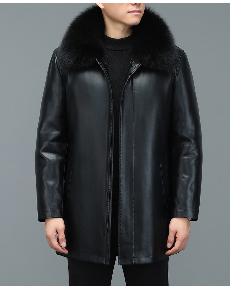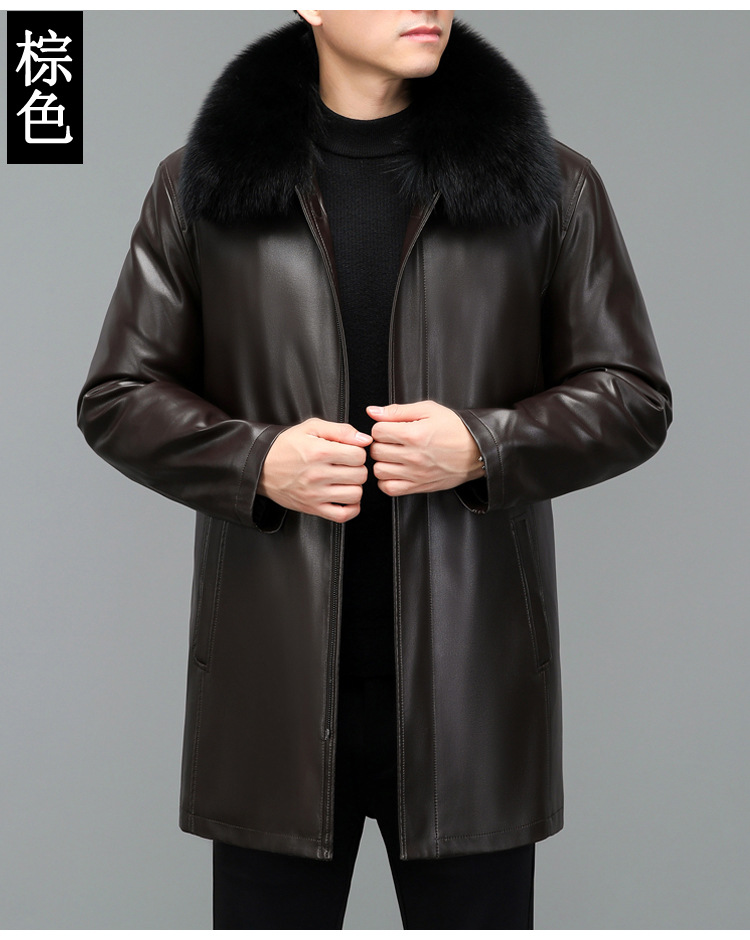 겨울 증오 가죽 남성 다운 재킷 중간 길이 폭스 모피 칼라 아빠의 가죽 재킷 캐주얼 따뜻한 재킷