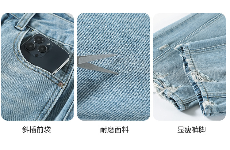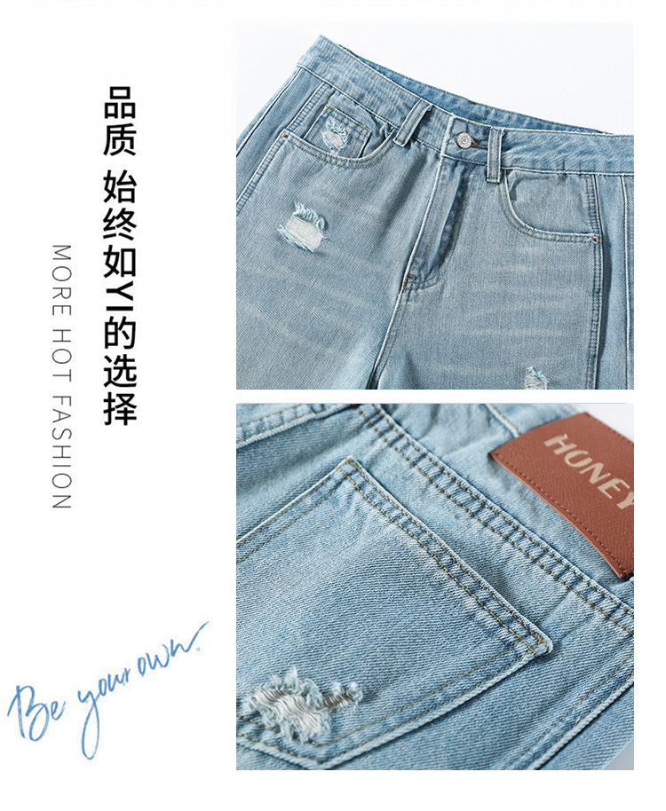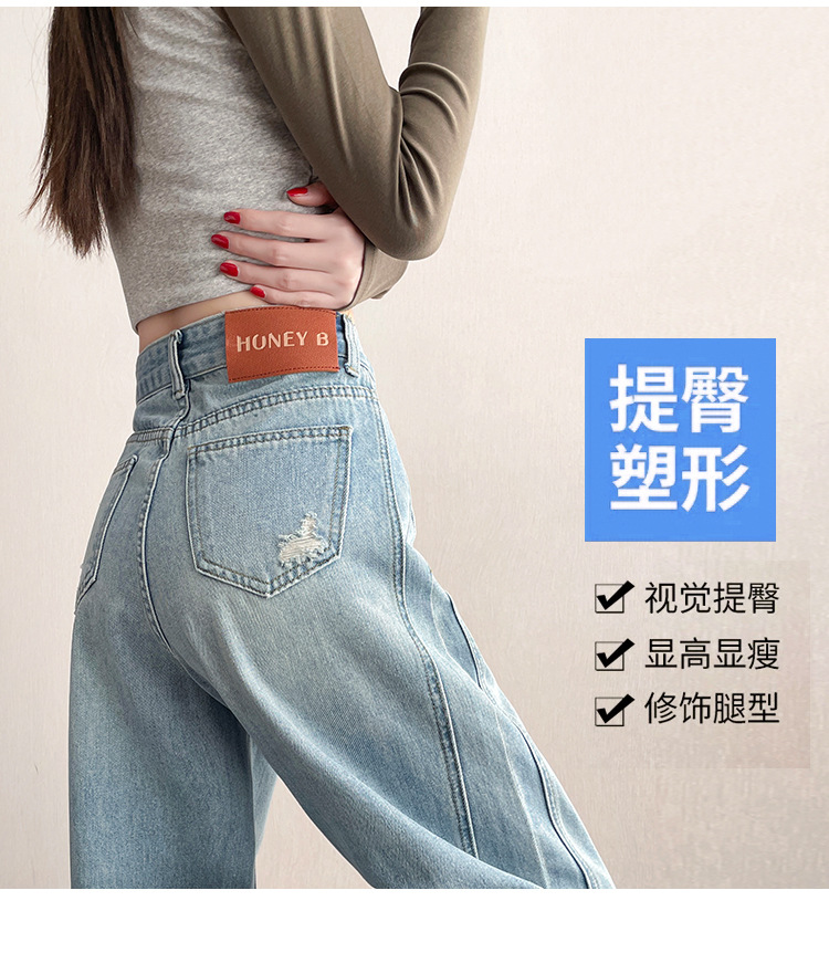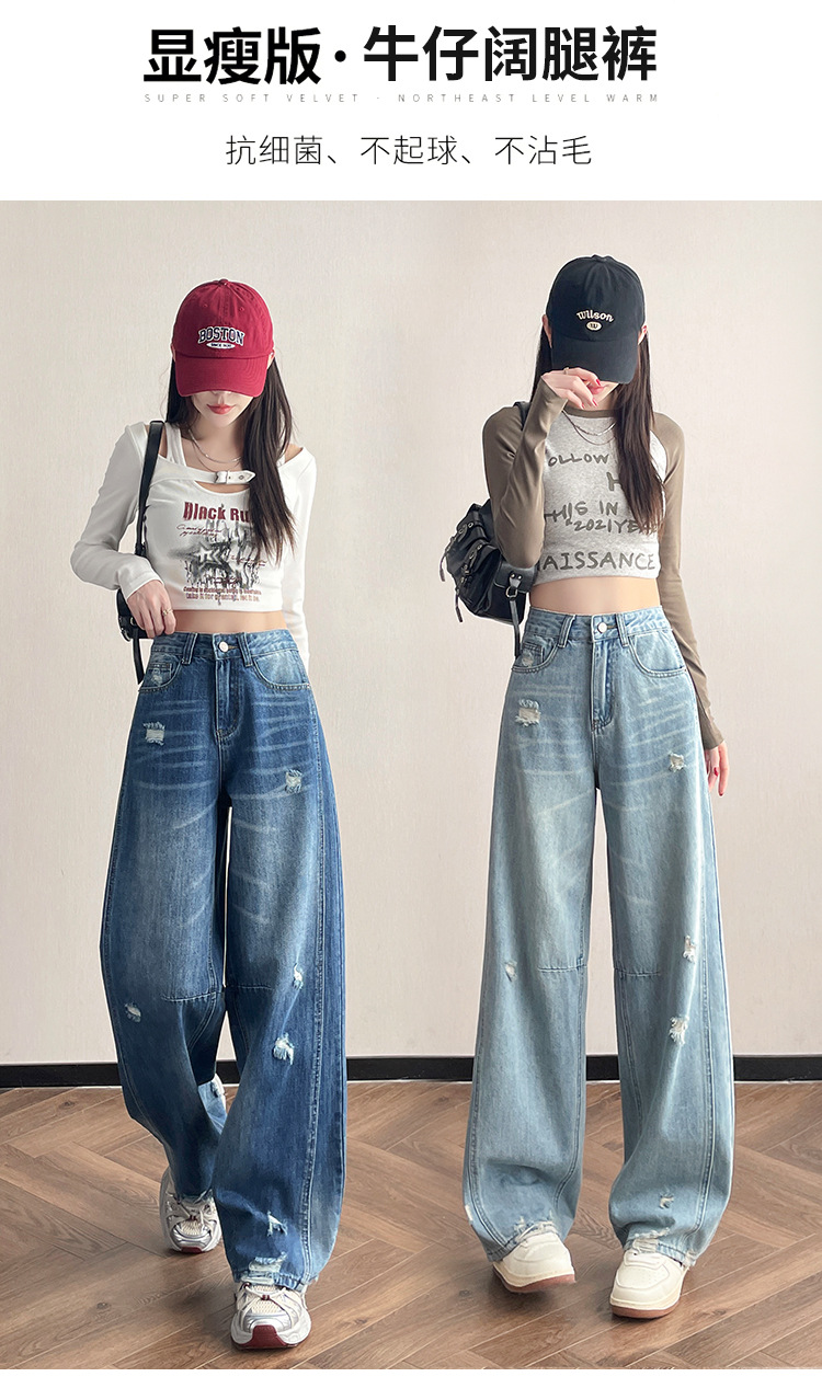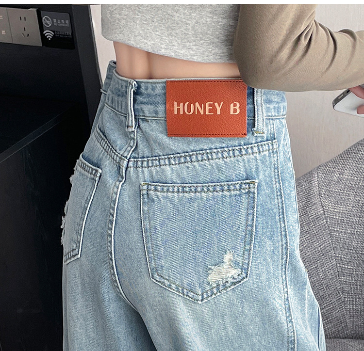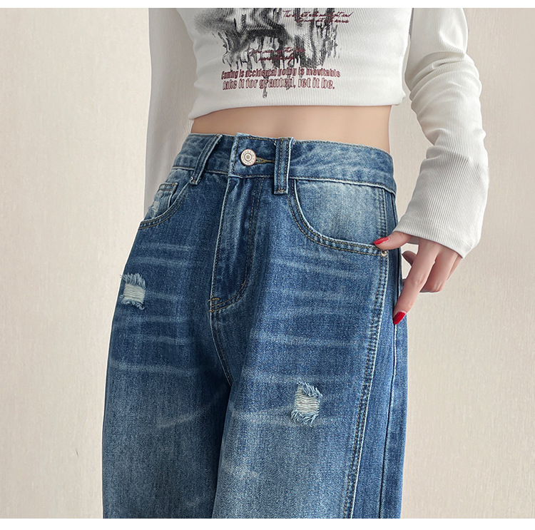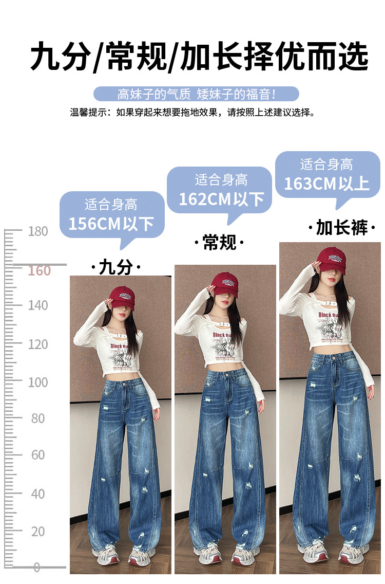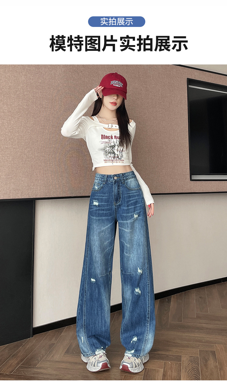 라이트 블루 찢어진 넓은 다리 청바지 여성의 봄 2025 새로운 높은 허리 슬리밍 느슨한 스트레이트 시미 터 바지스토어 가기
