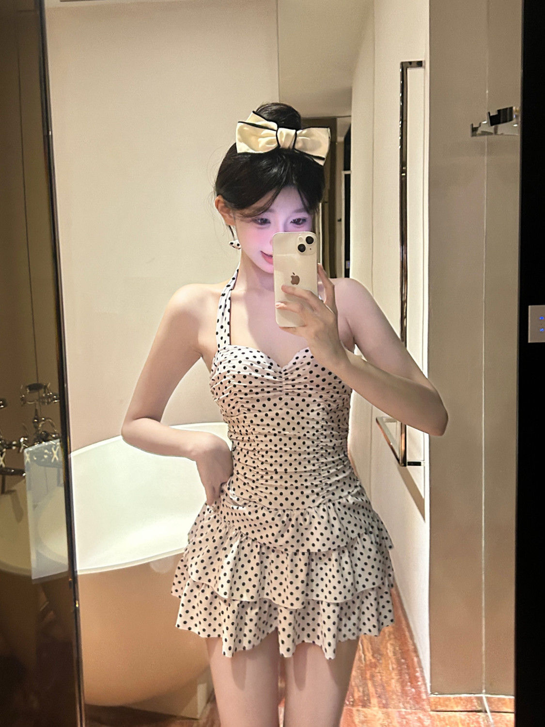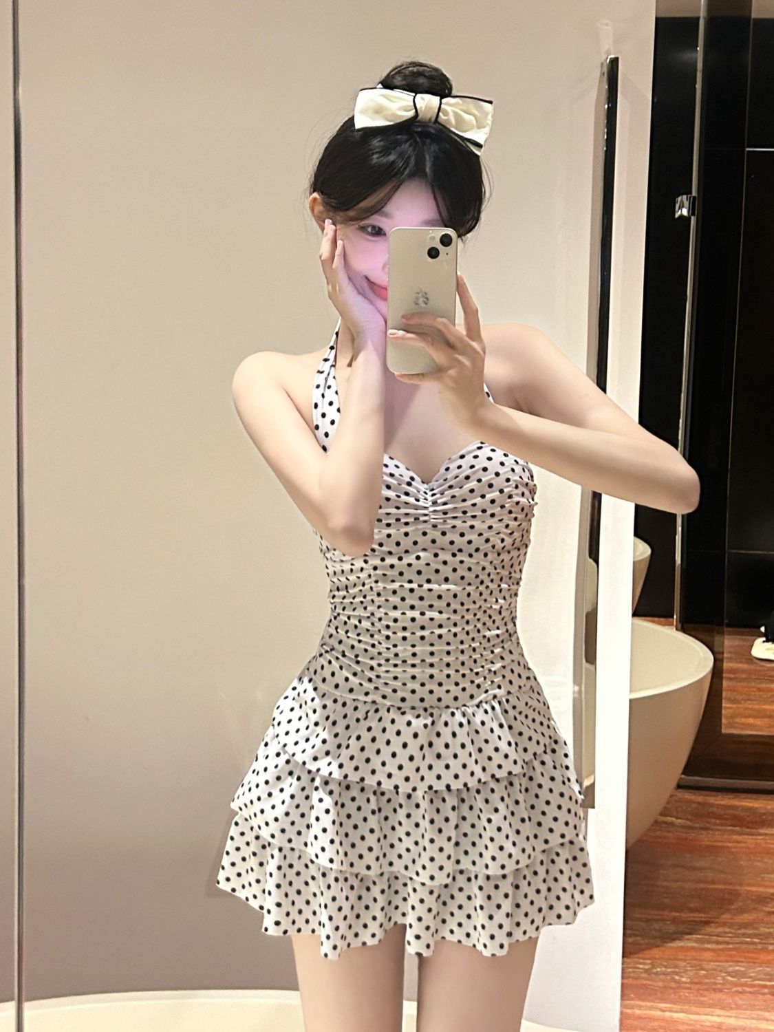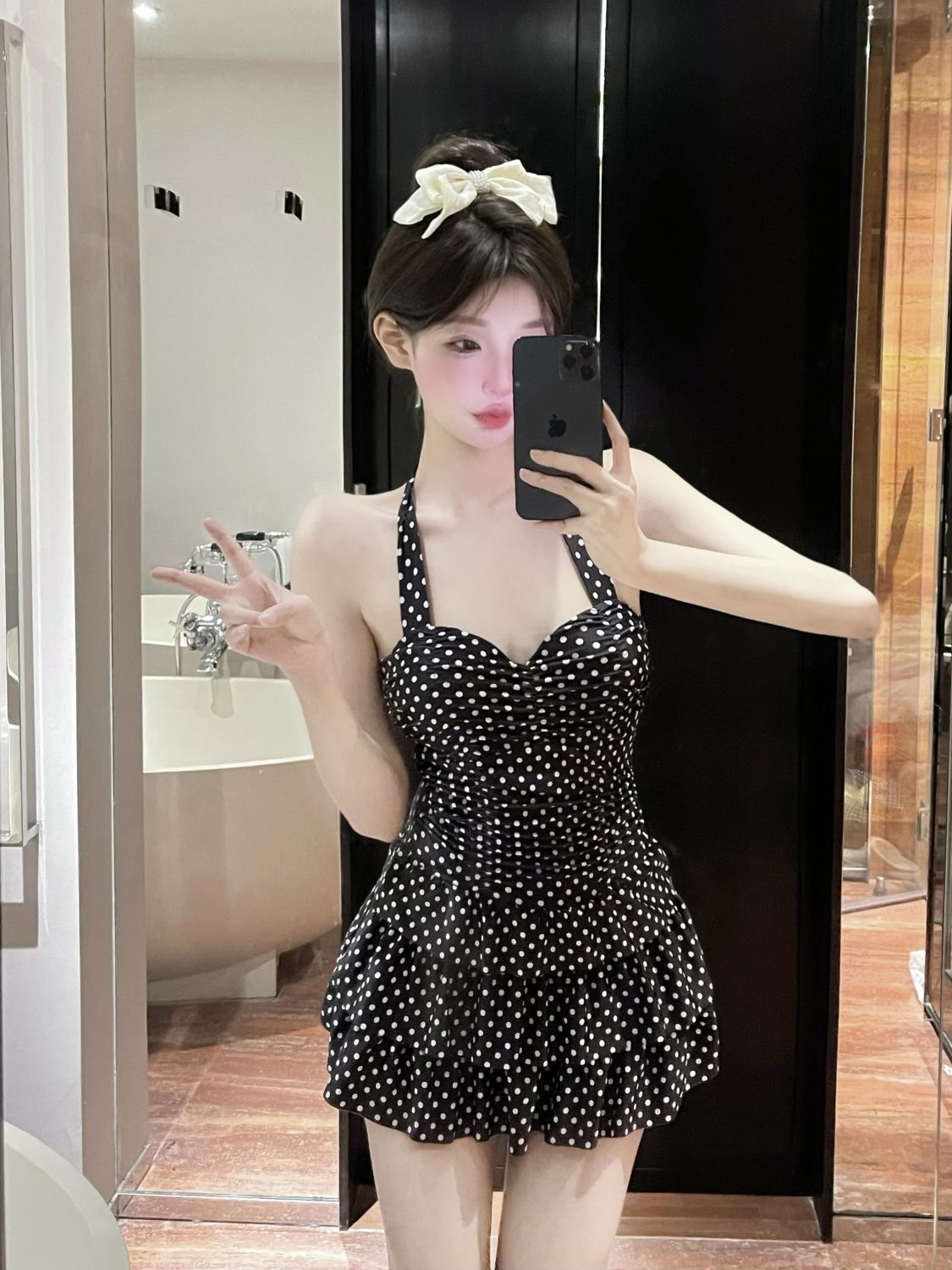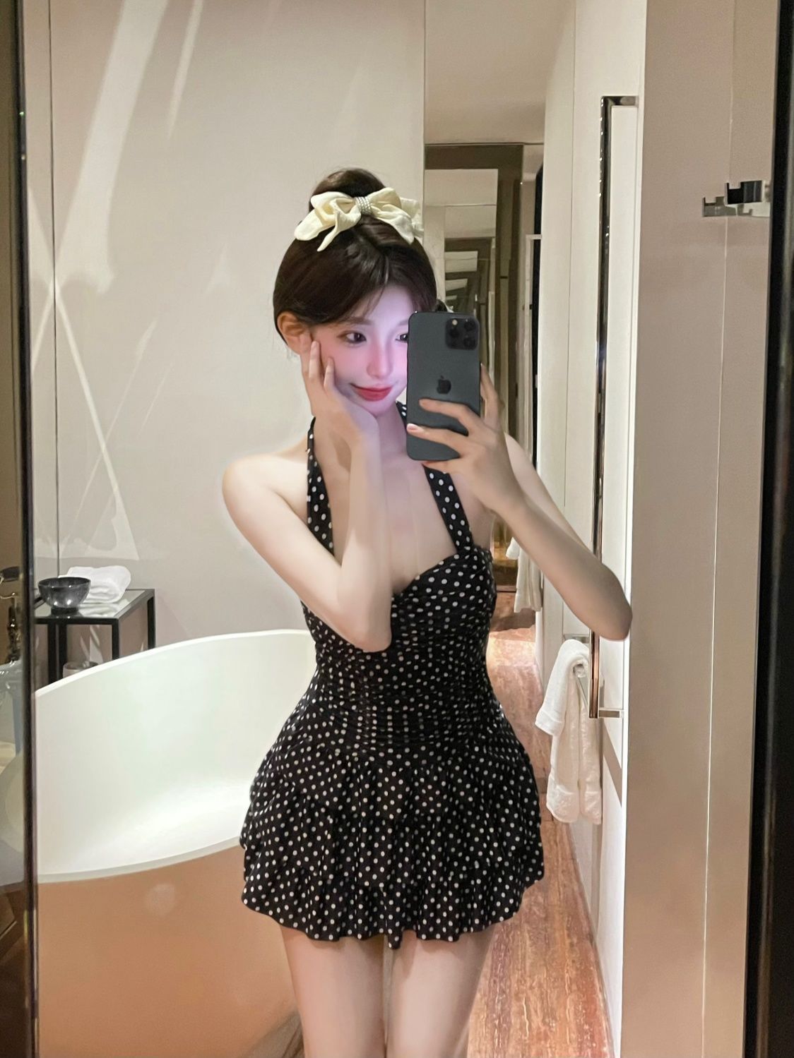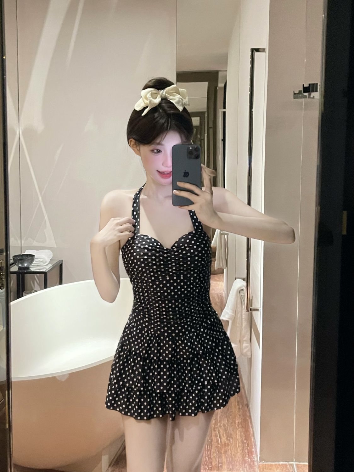 2025 새로운 스타일의 원피스 스커트 폴로 도트 소녀 수영복 여성의 보수적 인 슬리밍 살로 덮인 섹시한 순수한 큰 가슴이 모였습니다.스토어 가기
