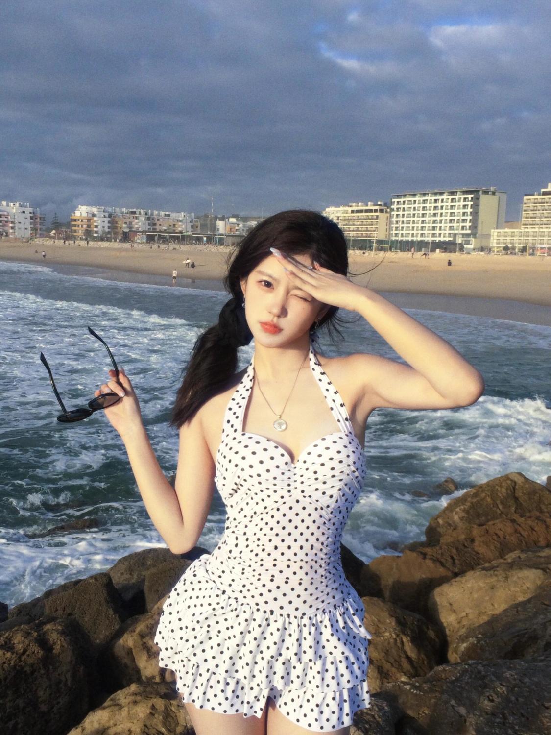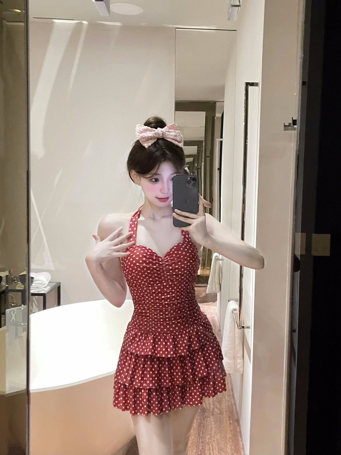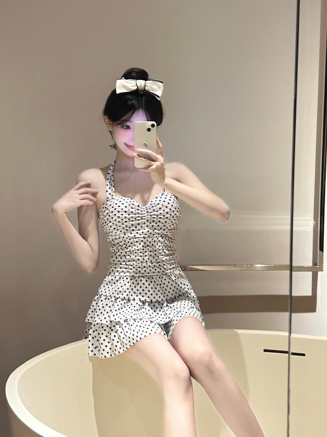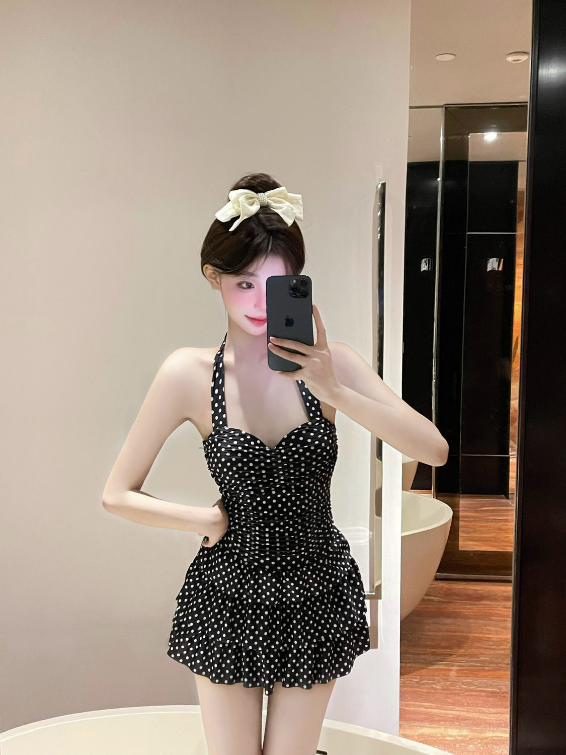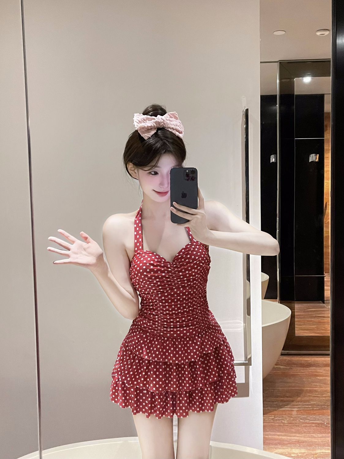 2025 새로운 스타일의 원피스 스커트 폴로 도트 소녀 수영복 여성의 보수적 인 슬리밍 살로 덮인 섹시한 순수한 큰 가슴이 모였습니다.스토어 가기