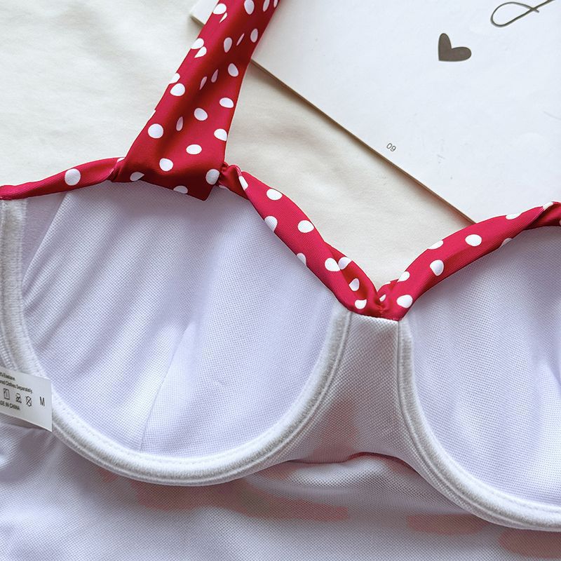 2025 새로운 스타일의 원피스 스커트 폴로 도트 소녀 수영복 여성의 보수적 인 슬리밍 살로 덮인 섹시한 순수한 큰 가슴이 모였습니다.