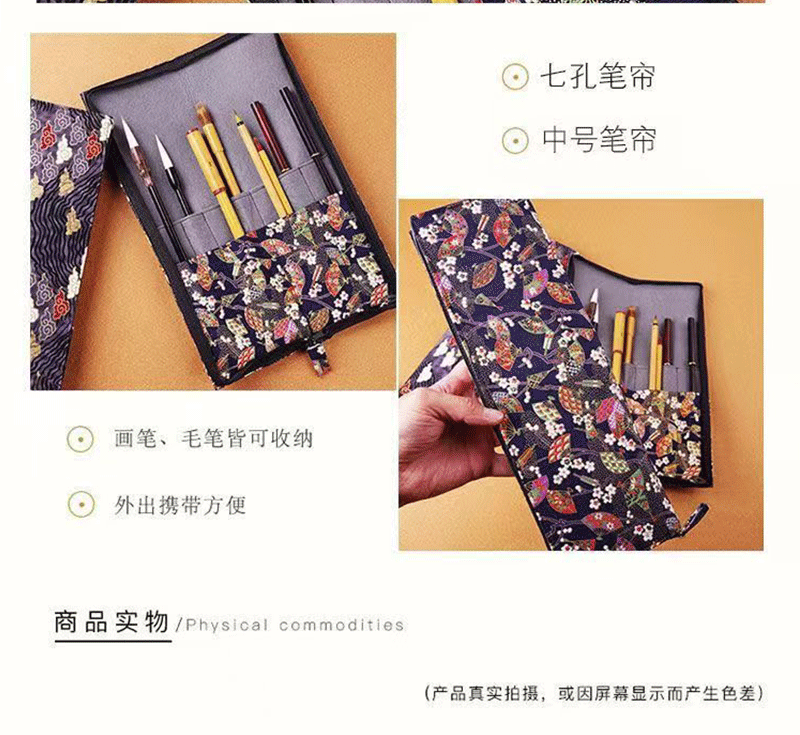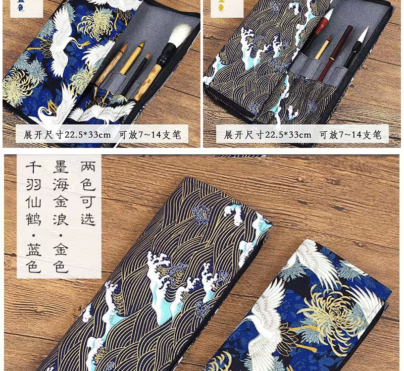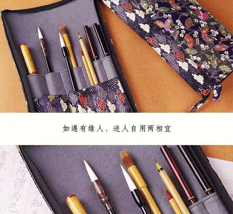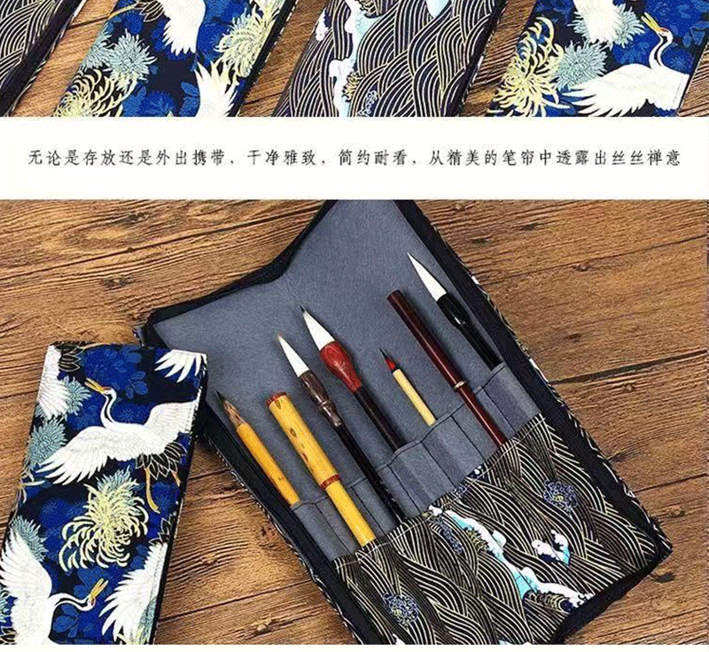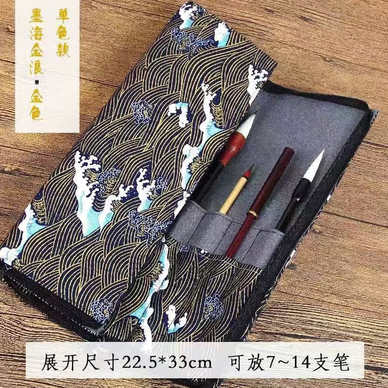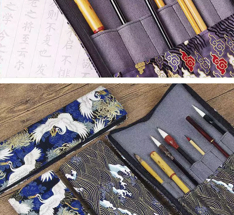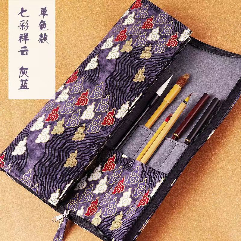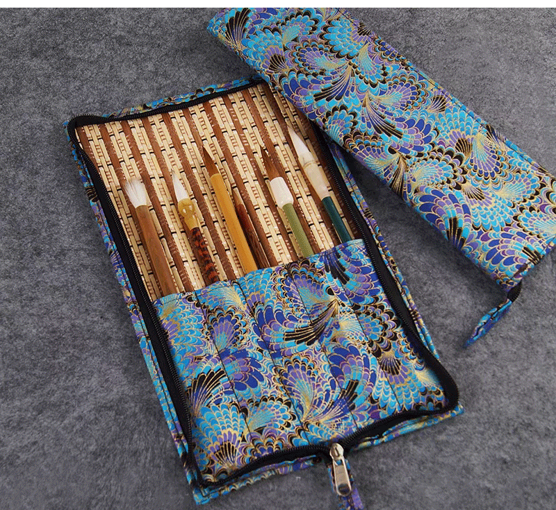 브러시 보관 가방 브론징 브러시 커튼 브러쉬 백 지퍼 인쇄 Guofeng 나가는 휴대용 골동품 빈티지 브러시 커튼 백스토어 가기