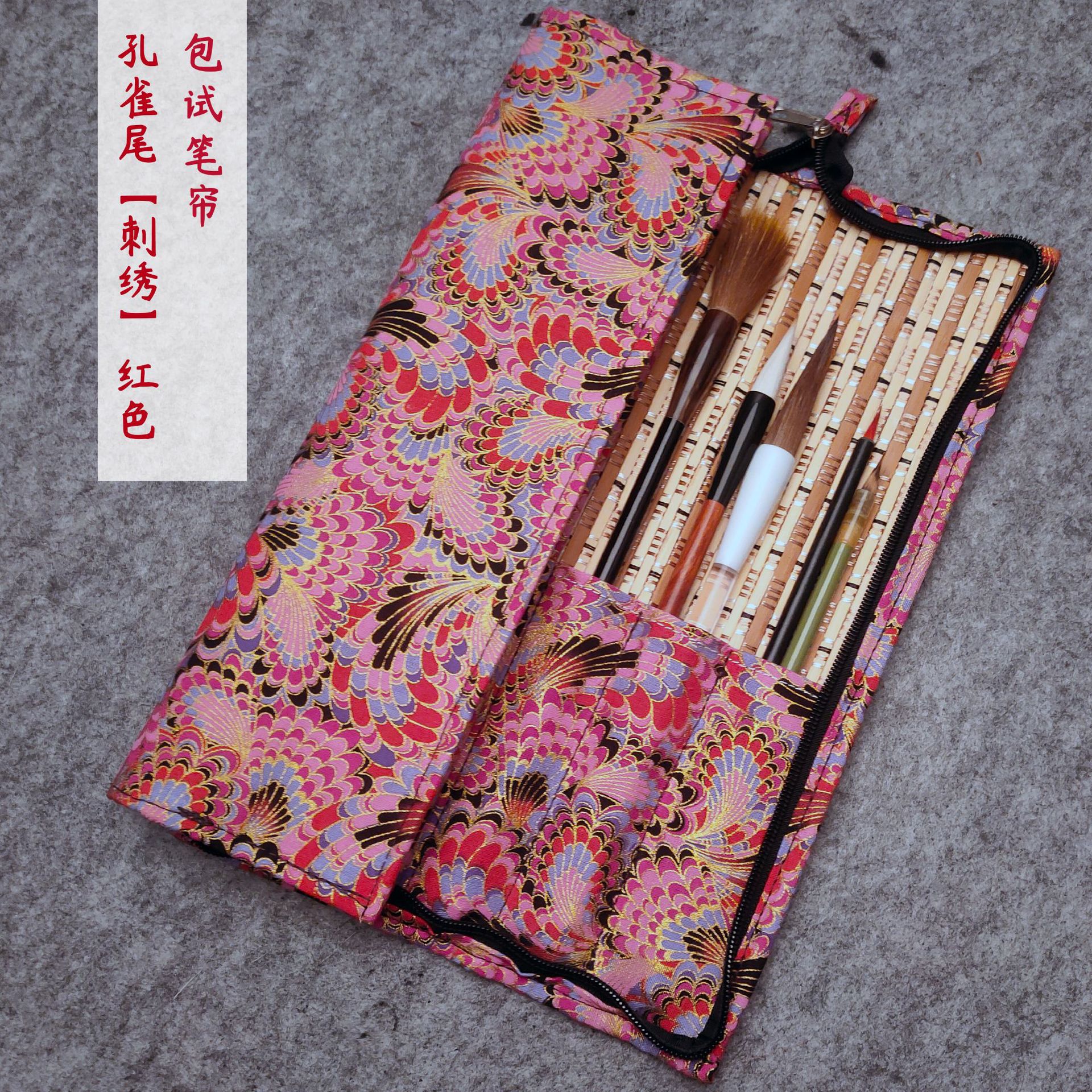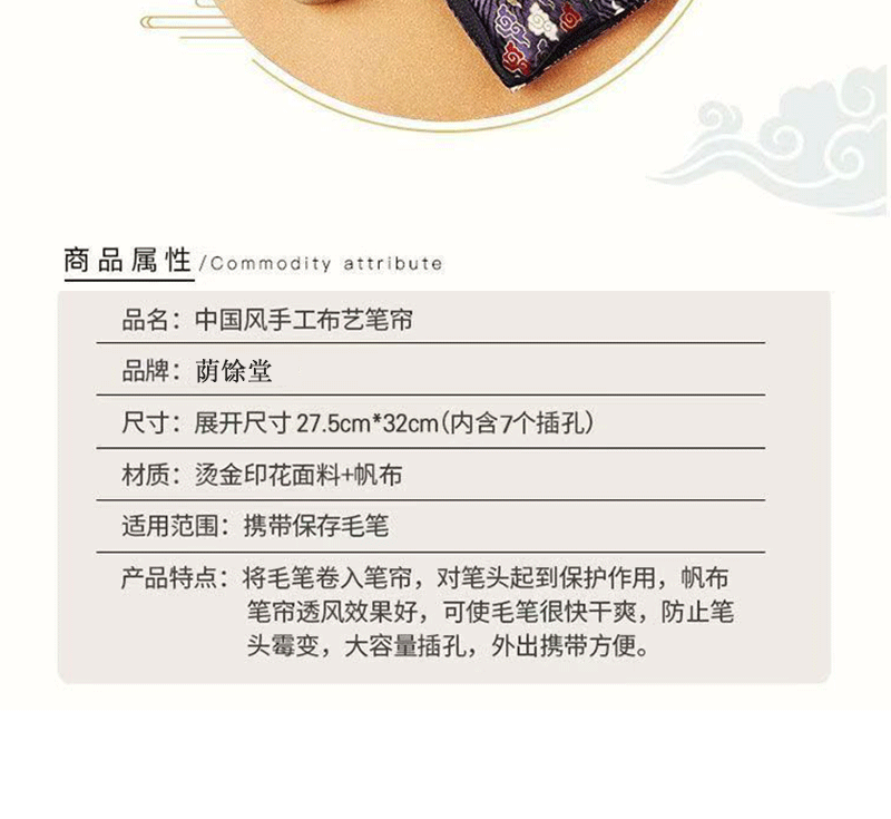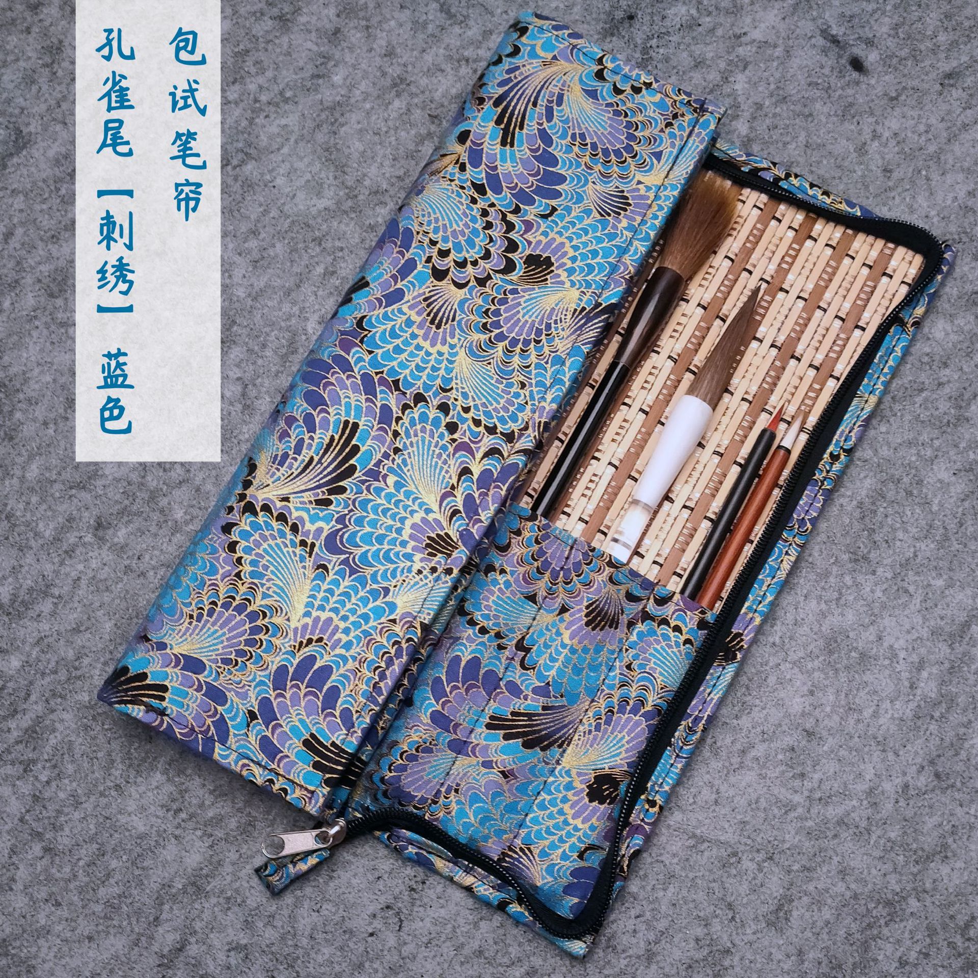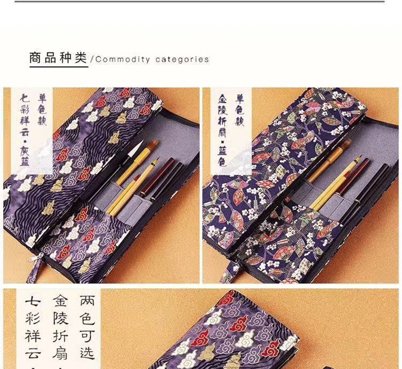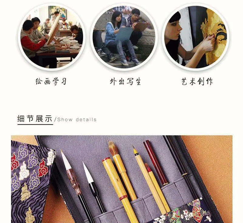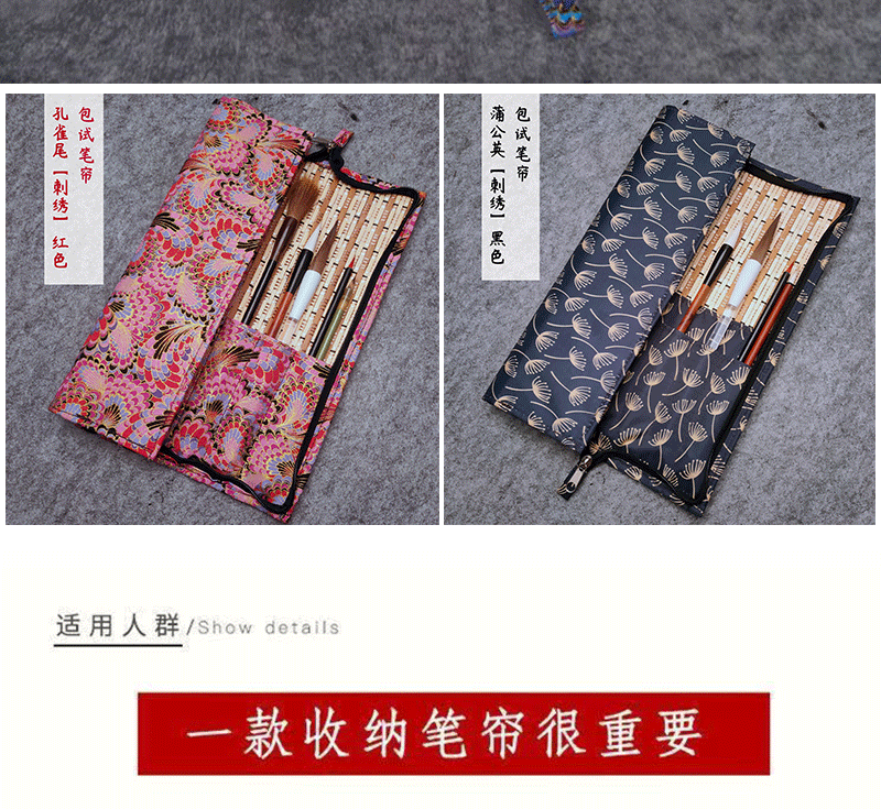 브러시 보관 가방 브론징 브러시 커튼 브러쉬 백 지퍼 인쇄 Guofeng 나가는 휴대용 골동품 빈티지 브러시 커튼 백스토어 가기
