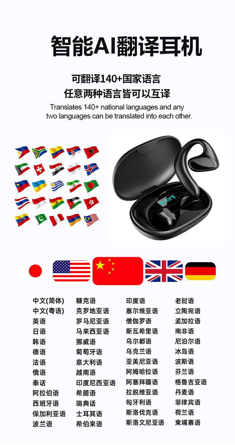 새로운 M8 스마트 블루투스 번역기 헤드셋 지원 144 언어 번역기 소음 감소 기능이 있는 무선 블루투스 헤드셋